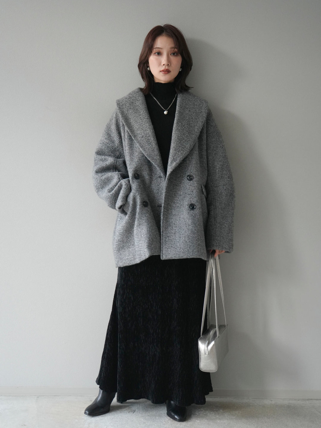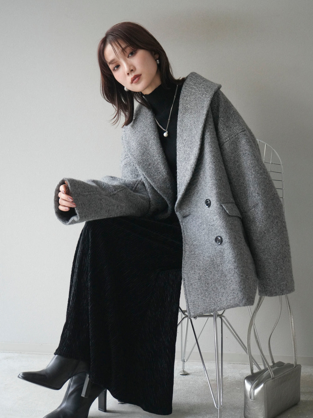[予約]ロービング襟付きミドルコクーンコート/charcoal