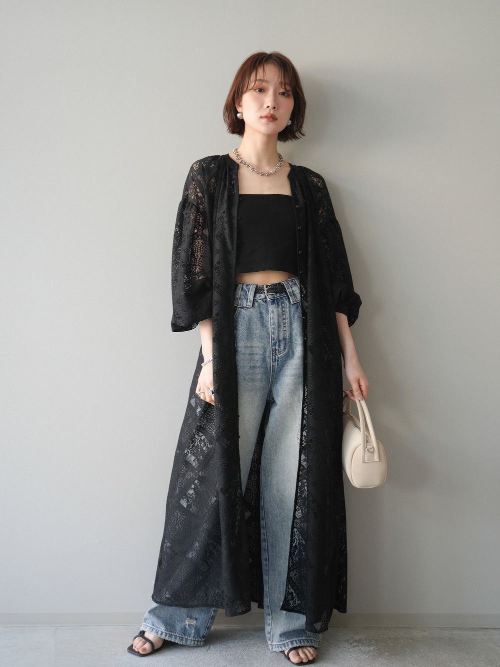 [予約]シアーレースロングガウン/black