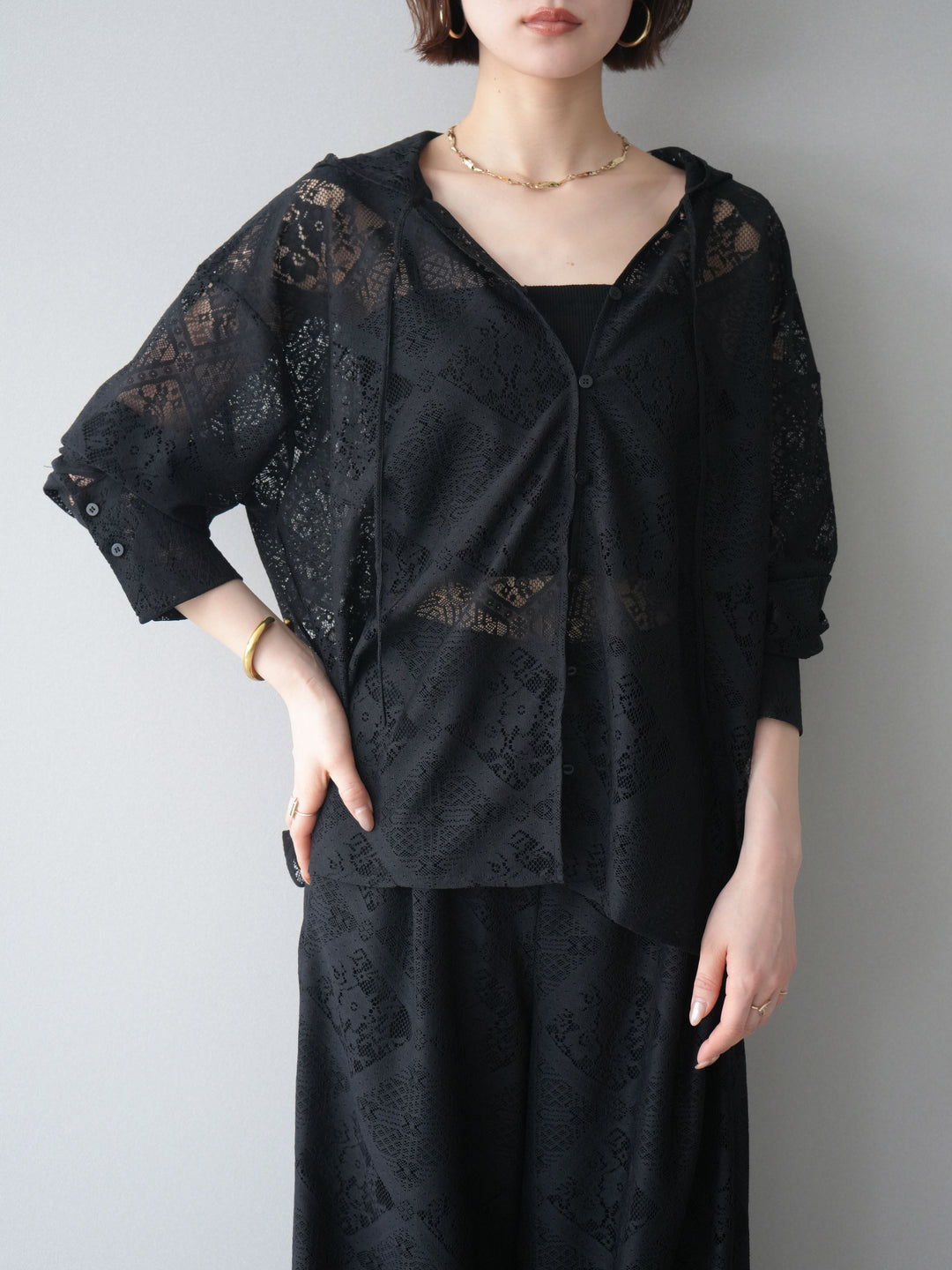 [予約]シアーレースフーディーブラウス/black