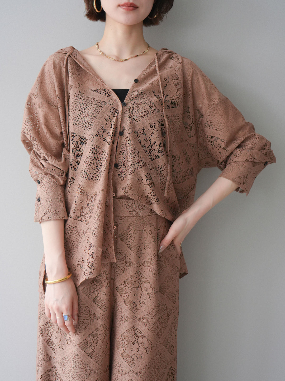 [予約]シアーレースフーディーブラウス/beige