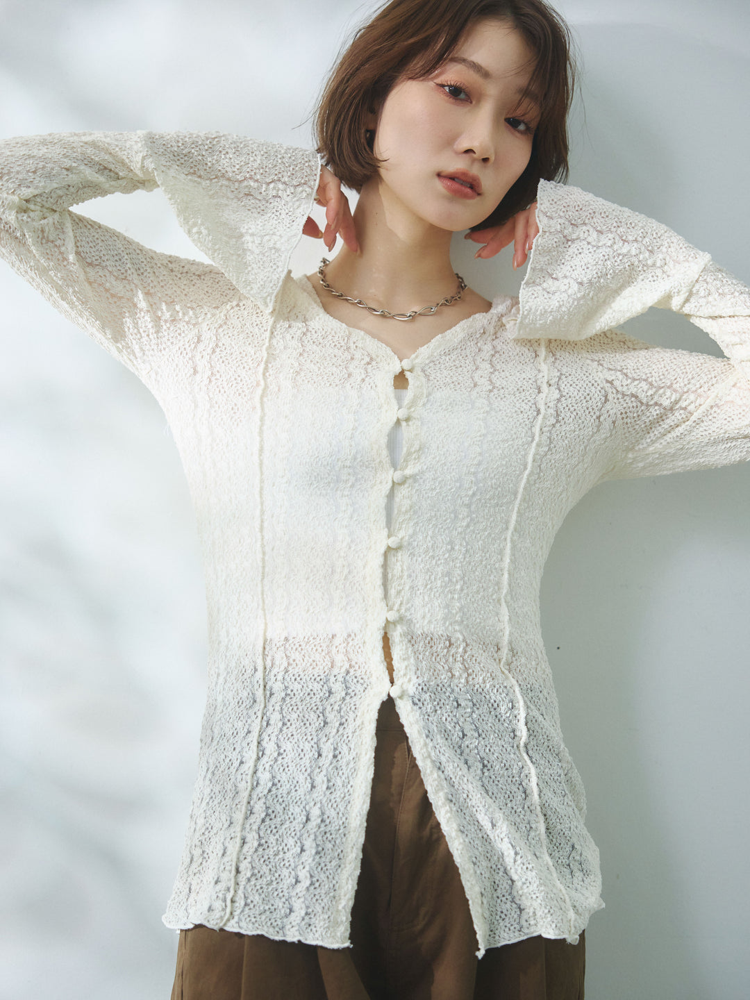 [予約]シアーレースフーディーブラウス/ivory