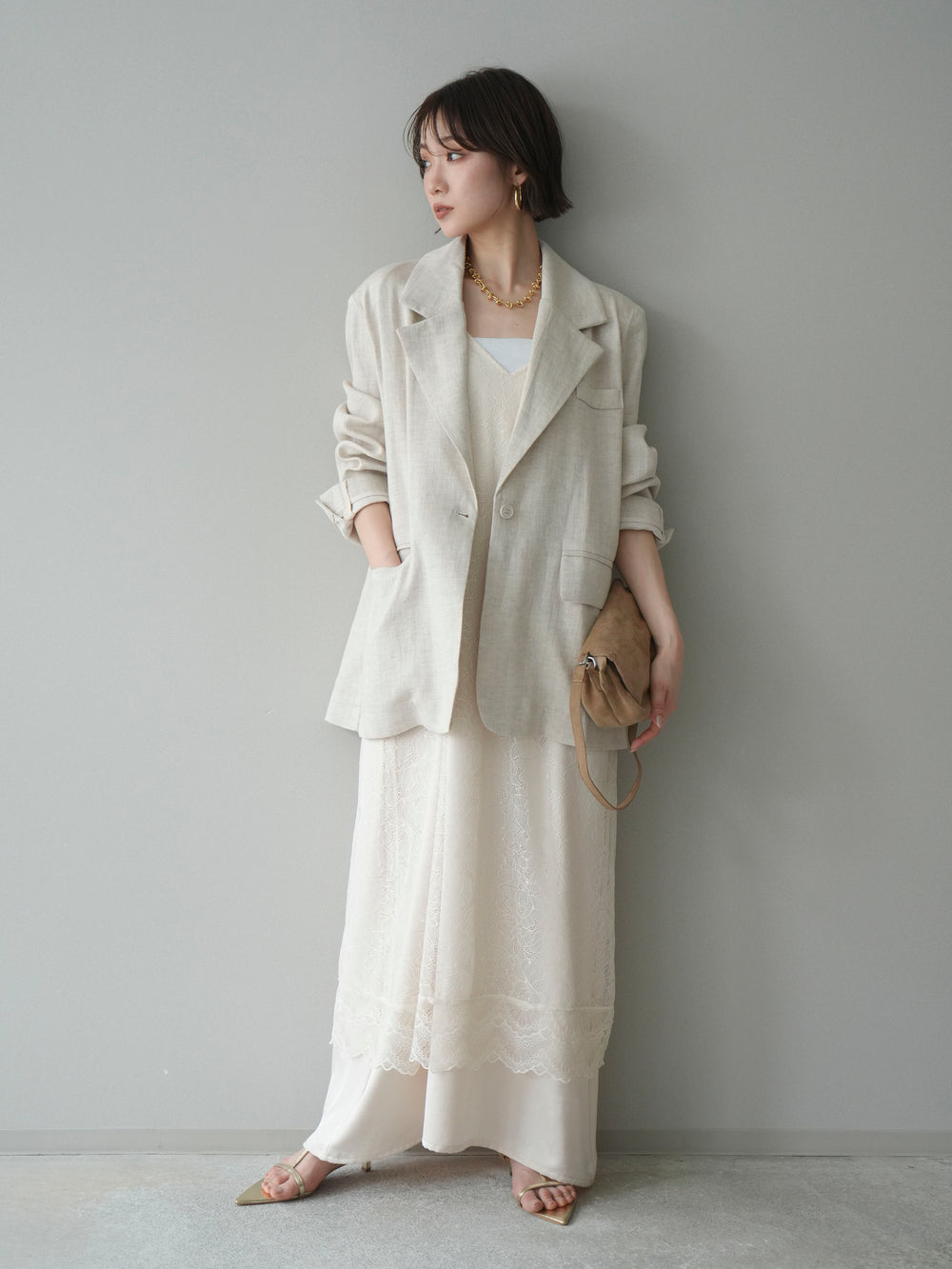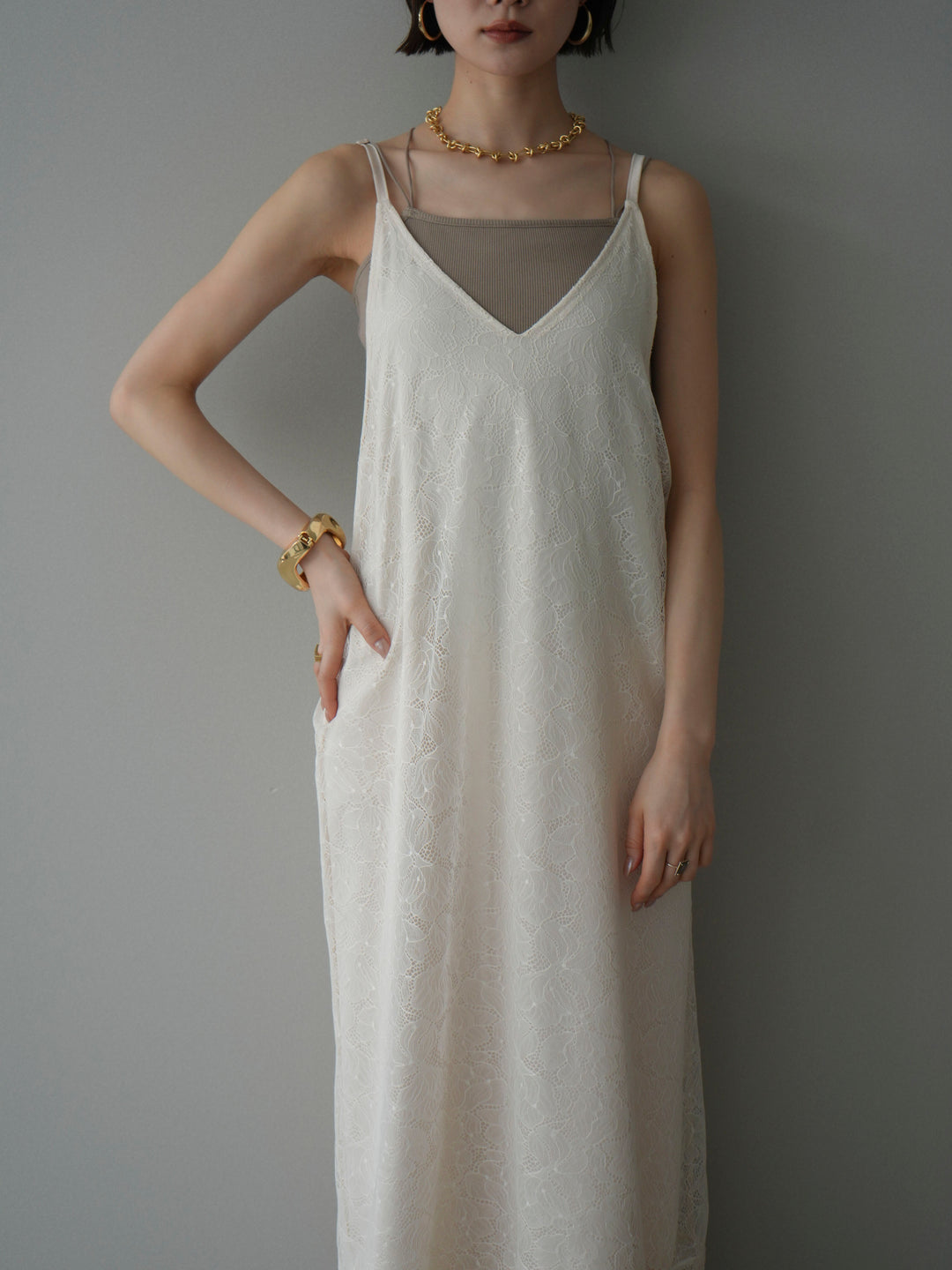 [予約]サテンレースレイヤードキャミワンピース/ivory