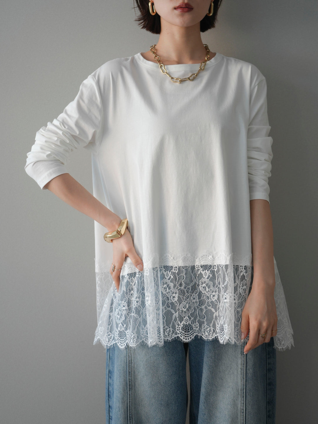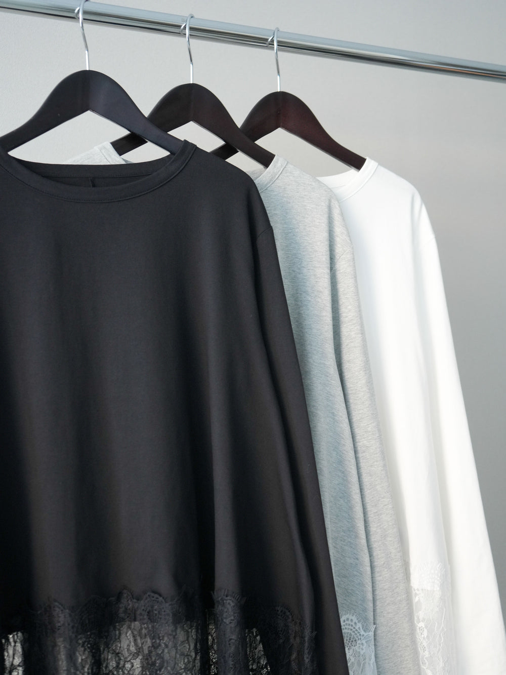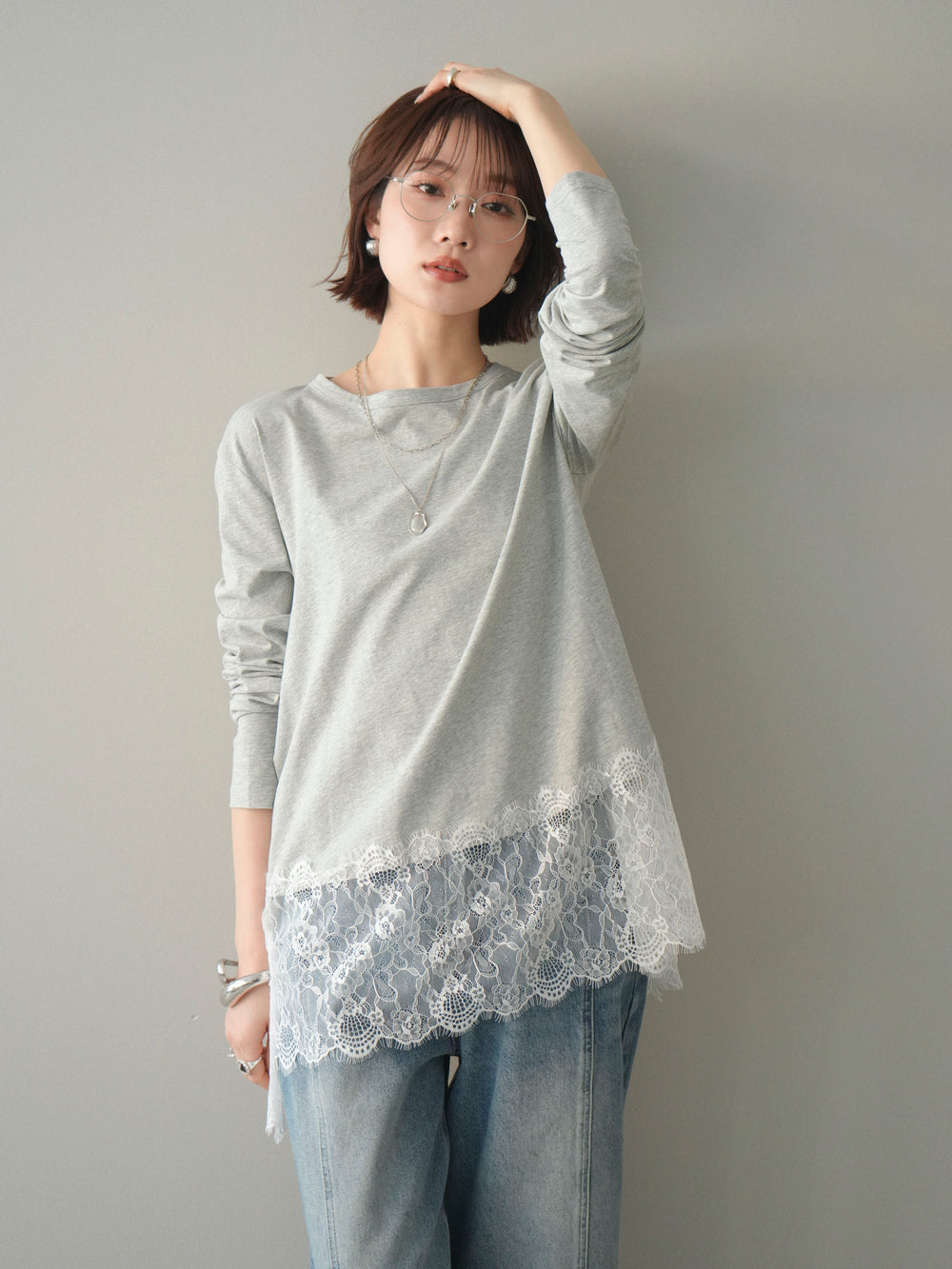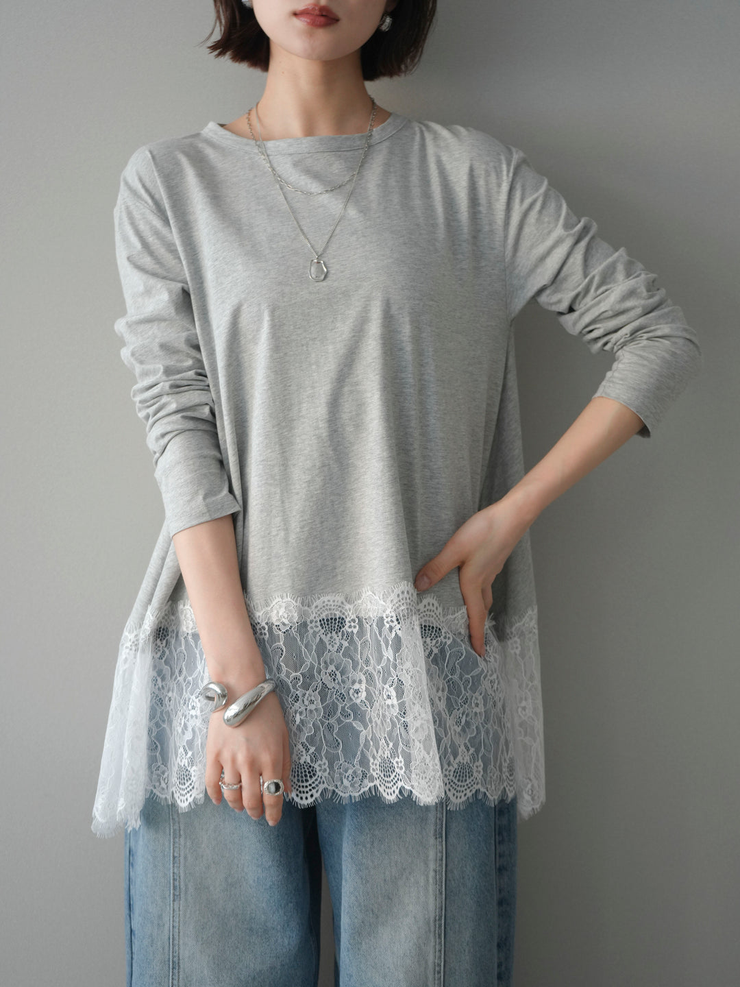 [予約]裾レースロングスリーブTシャツ/gray