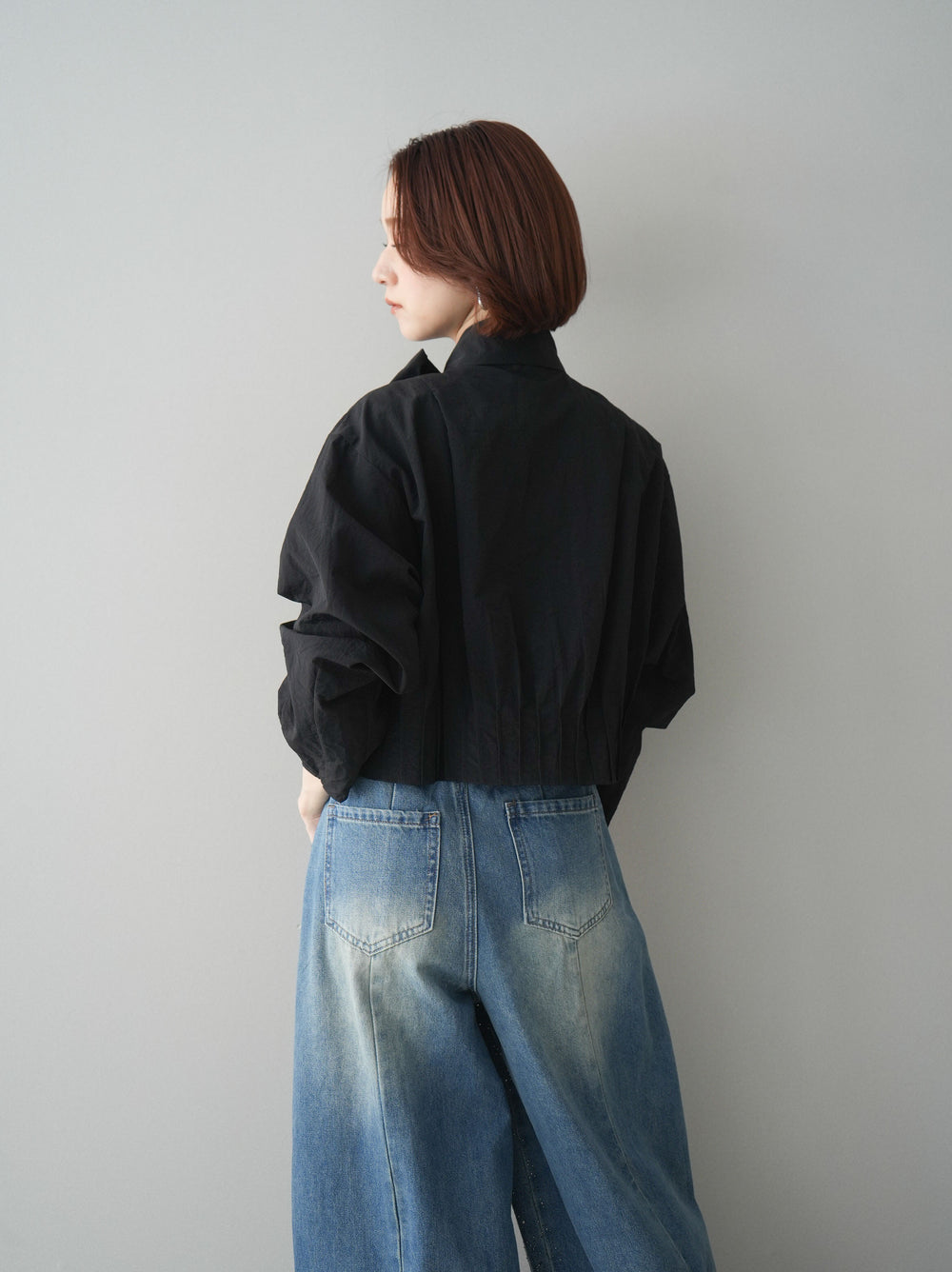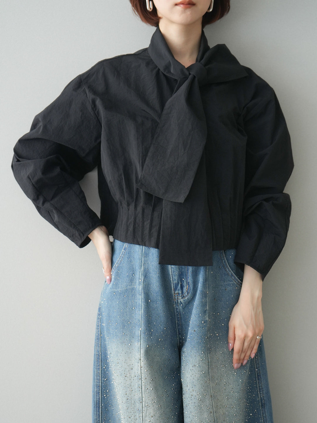 [予約]ボウタイ裾プリーツライトジャケット/black
