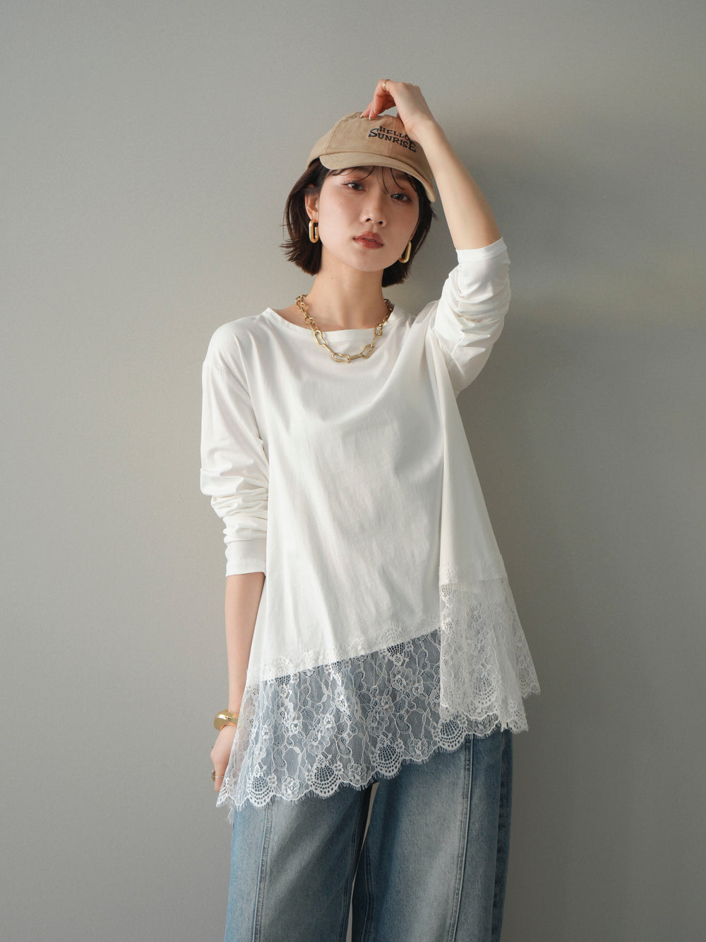 [予約]裾レースロングスリーブTシャツ/white