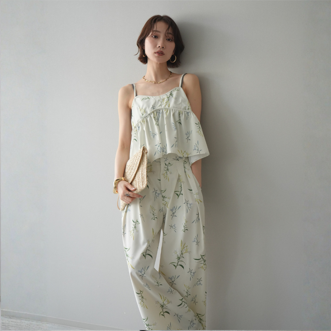 [SET]フラワープリントキャミソール+フラワープリントタックパンツ(2set)