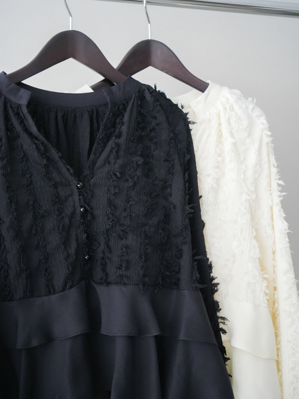 [SET]ジャガードぺプラムフリルブラウス+ジャガードぺプラムフリルブラウス(2set)