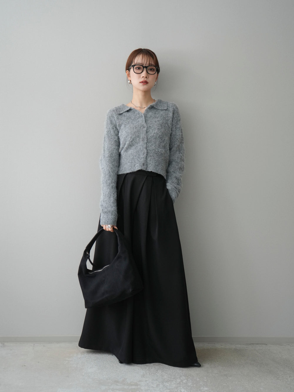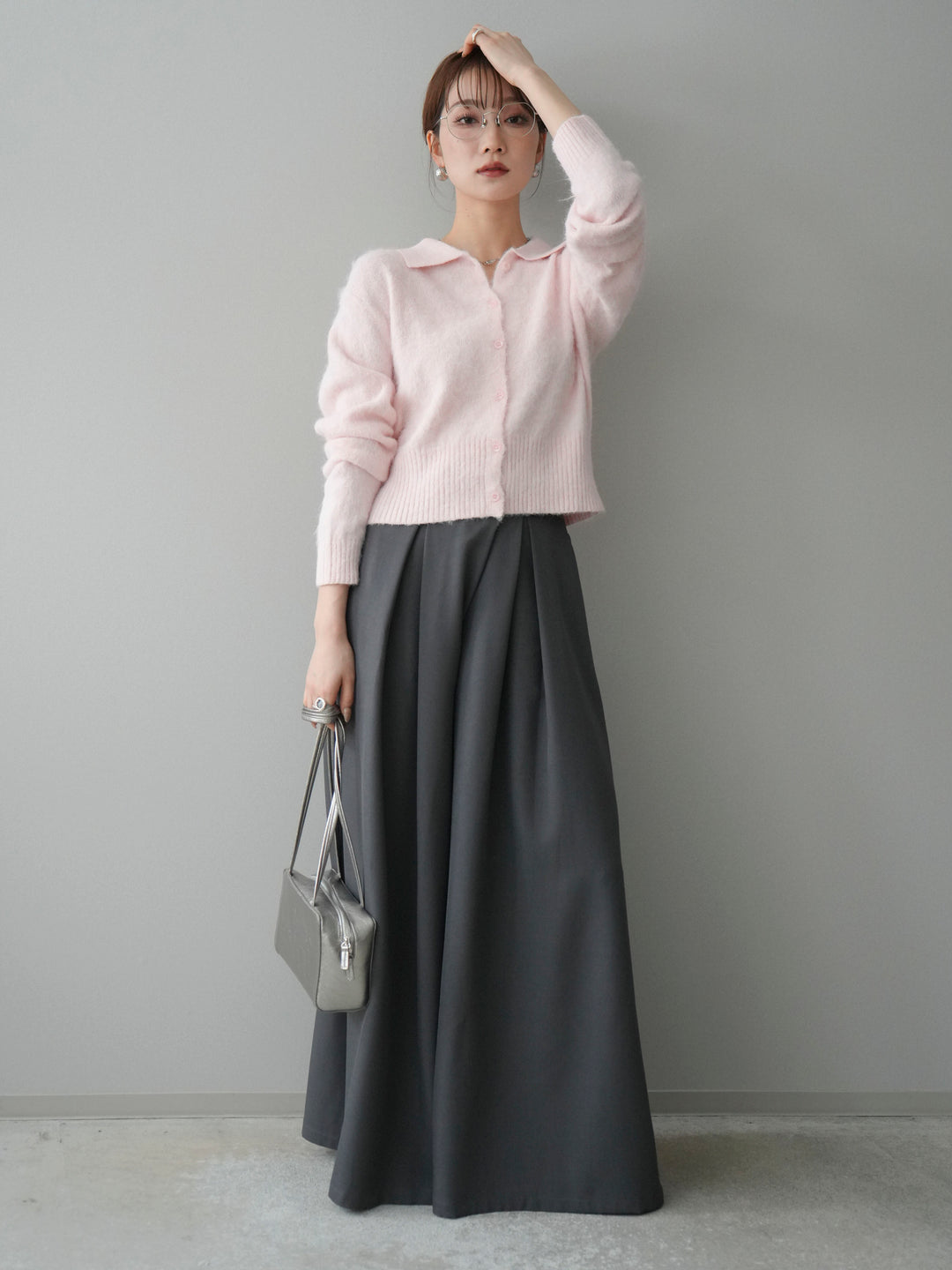 [SET]モヘア衿付きボタンプルオーバー+テープベルトタックバギーパンツ(2set)