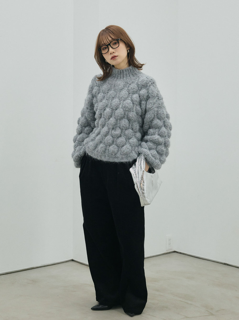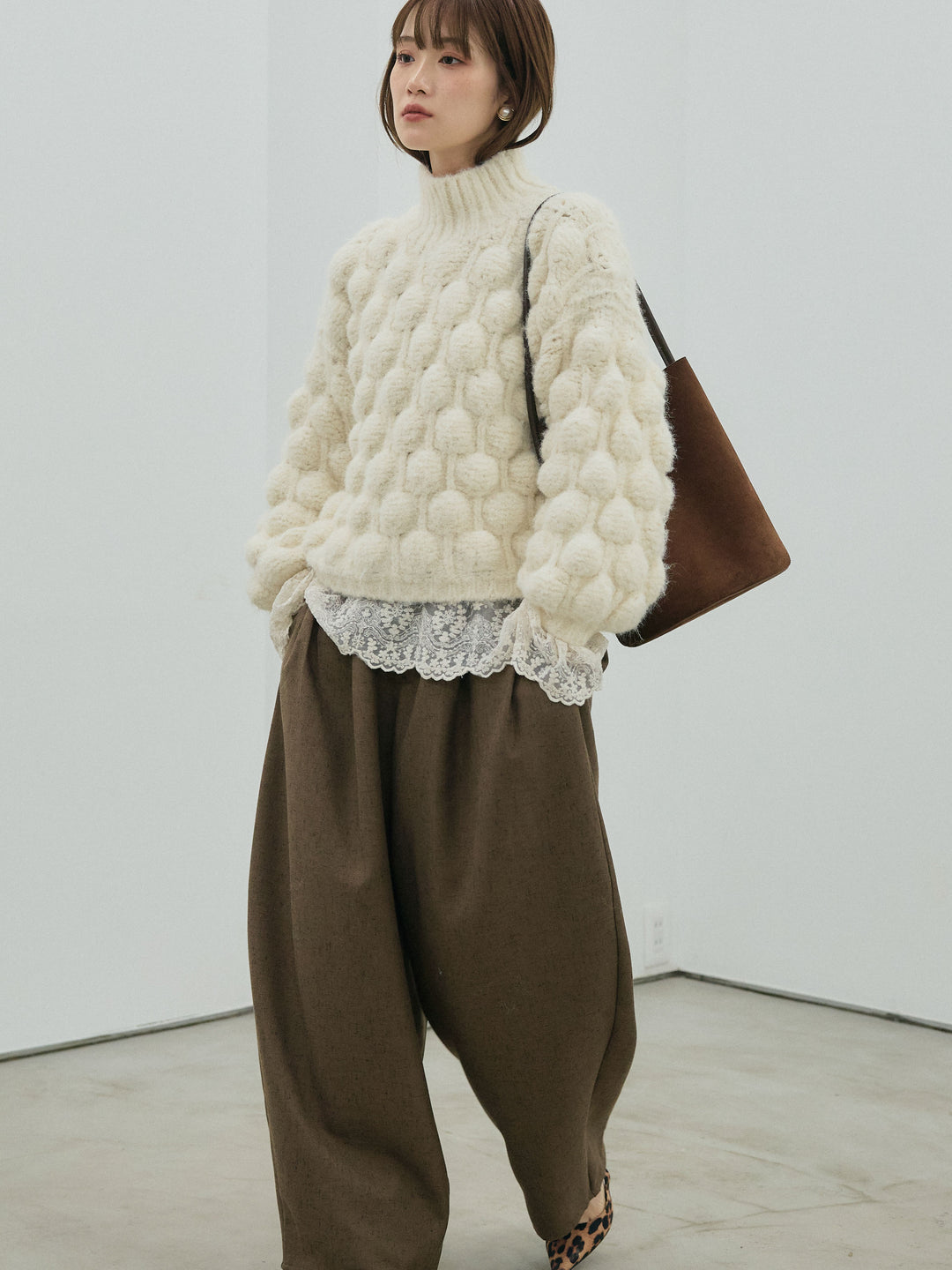 【Allure】[SET]ポップコーンハイネックニットプルオーバー+モックスカルゼサイドタックコクーンパンツ(2set)