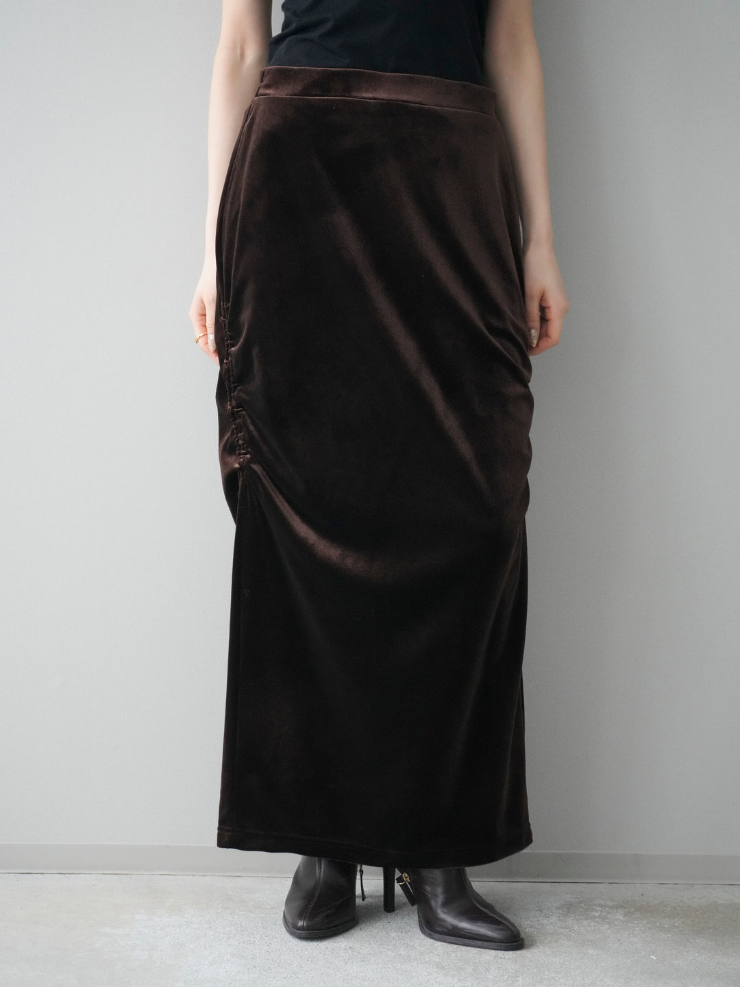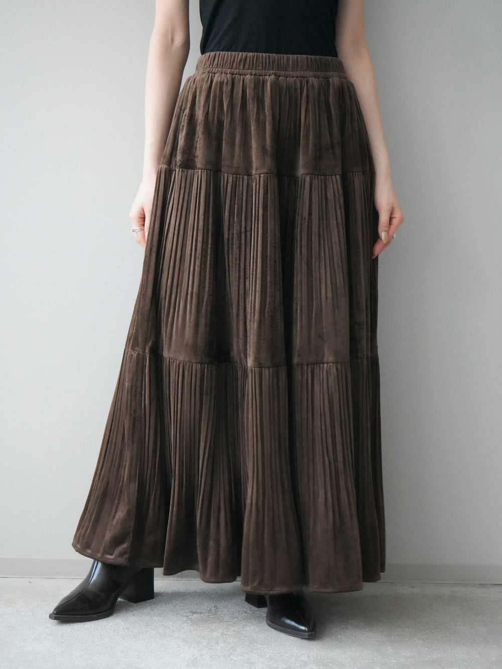 [予約]モチーフベルト付スエードタックワイドパンツ/brown