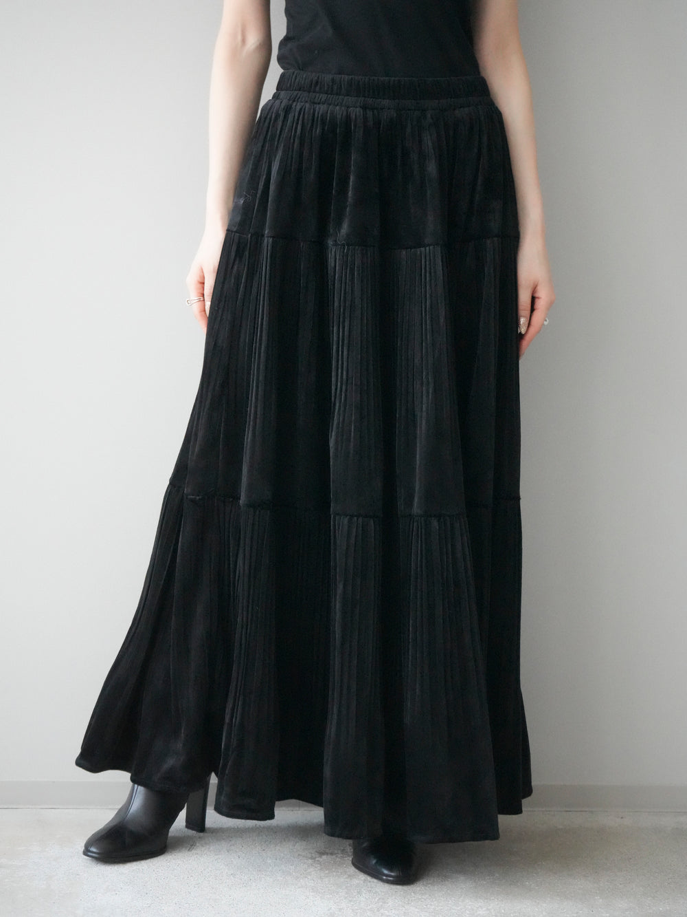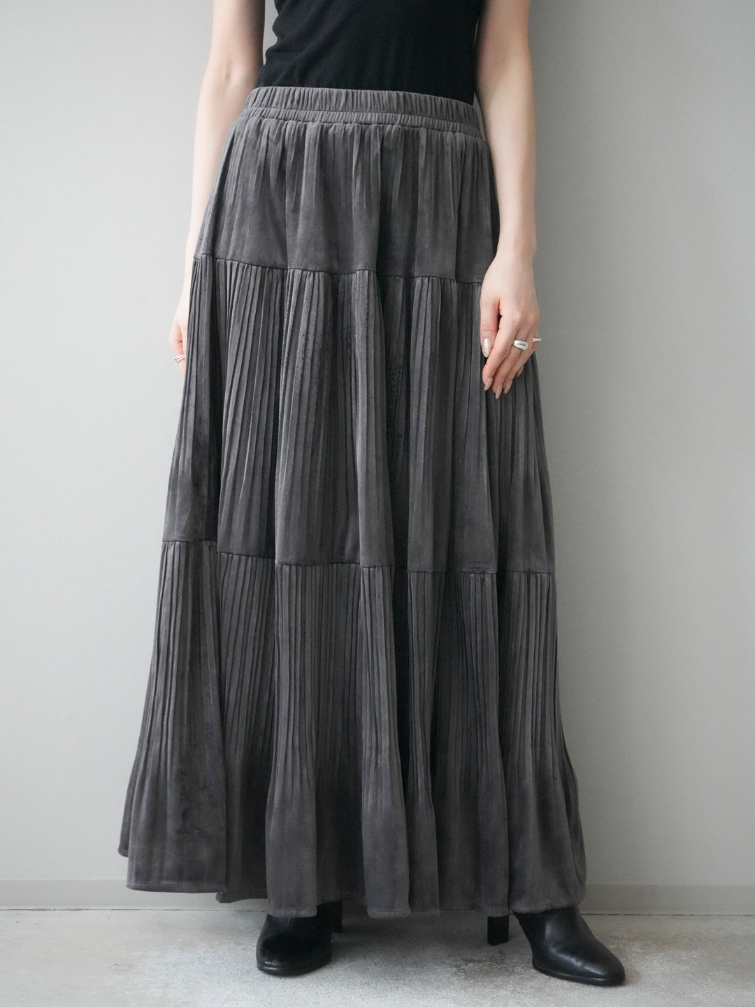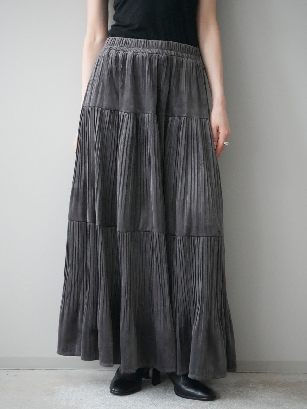 [予約]モチーフベルト付スエードタックワイドパンツ/black