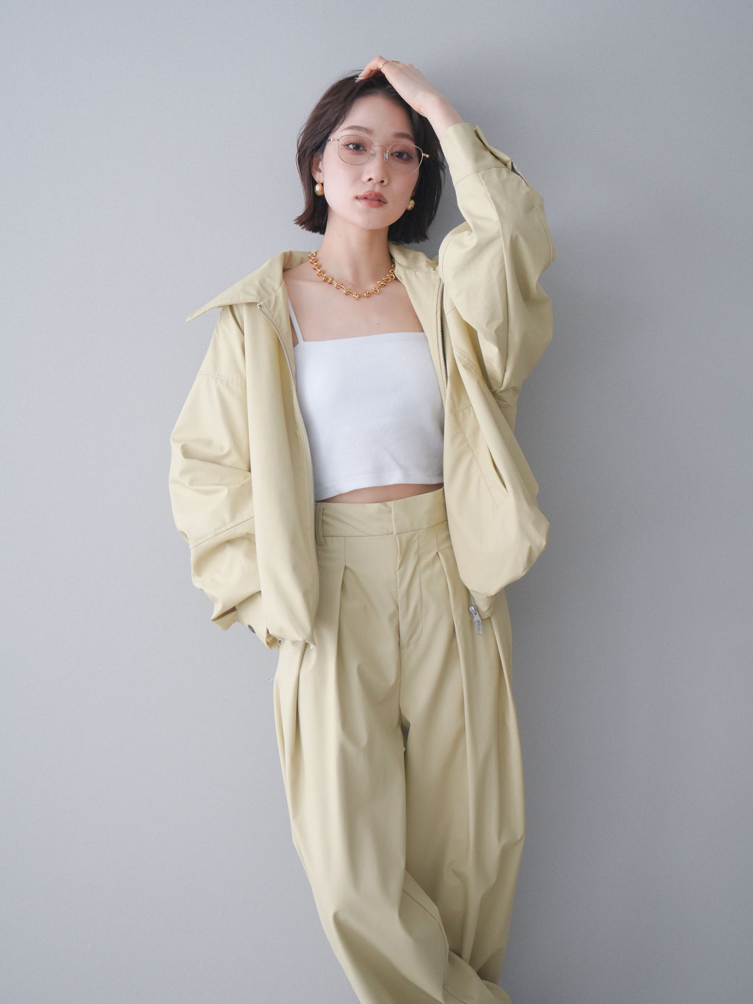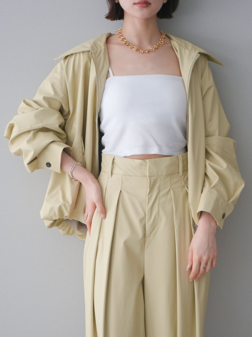 [予約]ウォッシャブルフェイクレザーバルーンジャケット/yellow