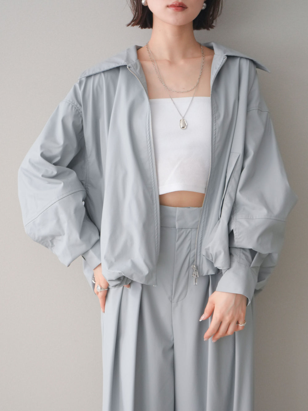 [予約]ウォッシャブルフェイクレザーバルーンジャケット/ecru