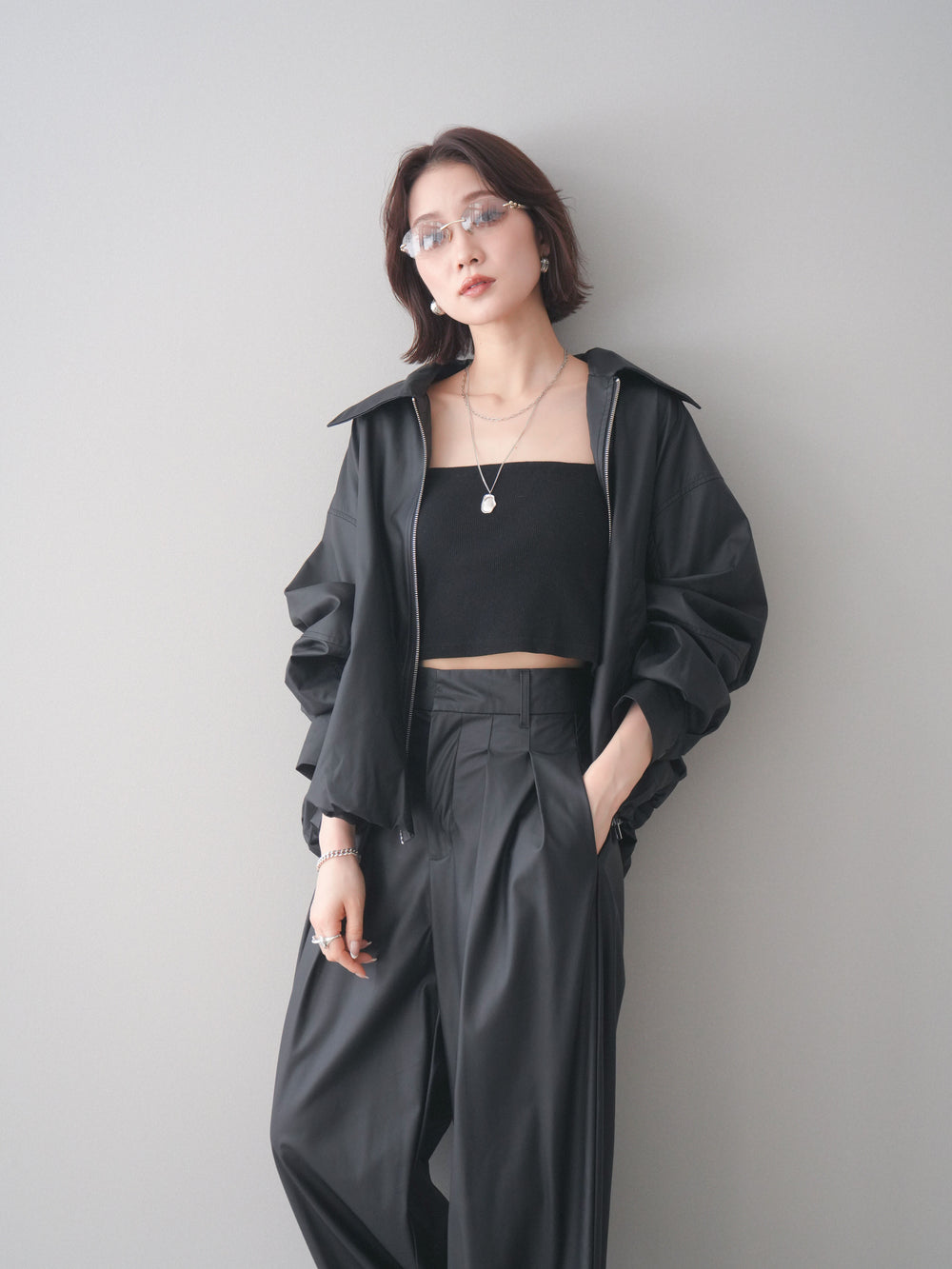 [予約]ウォッシャブルフェイクレザーバルーンジャケット/black