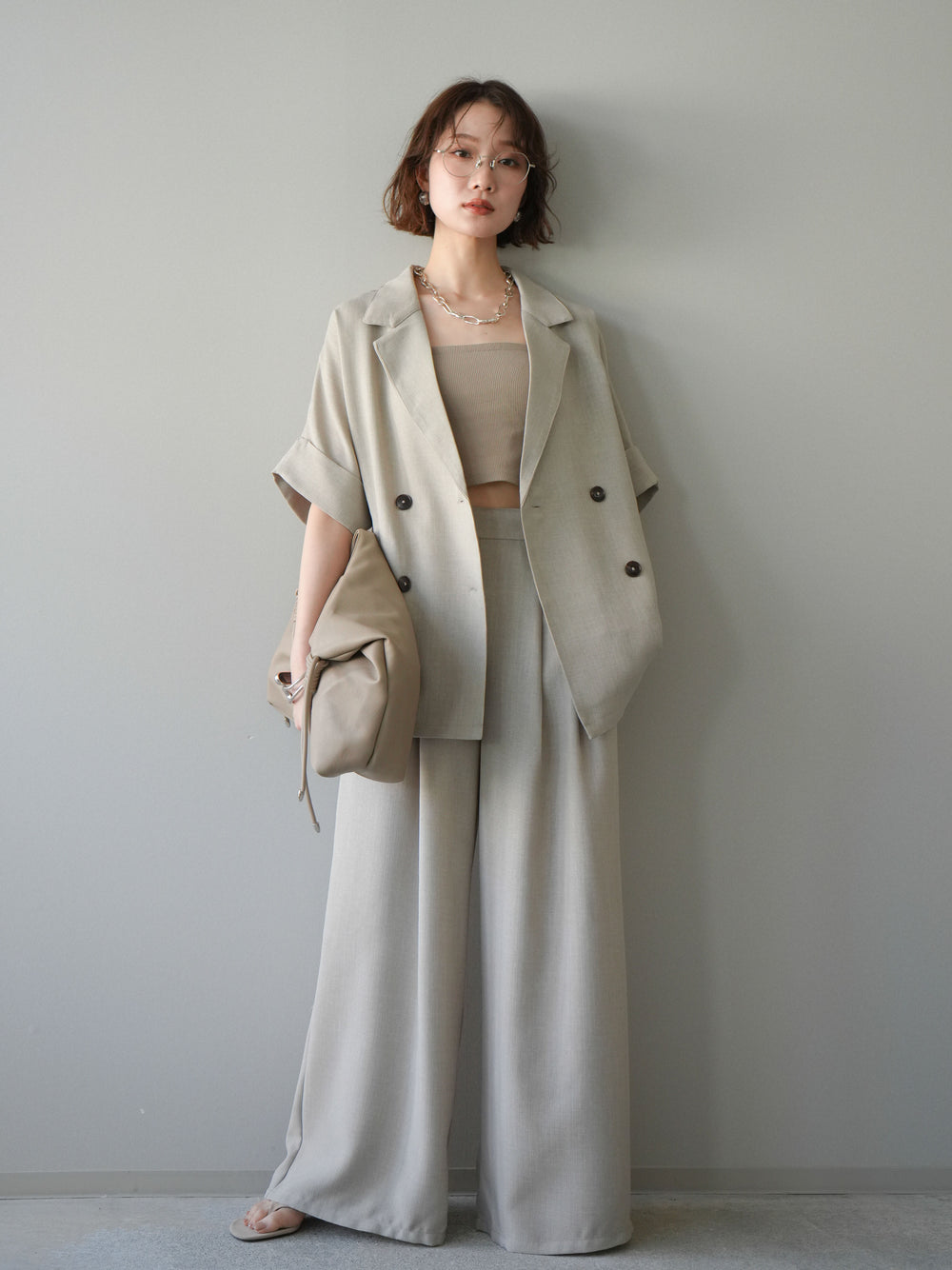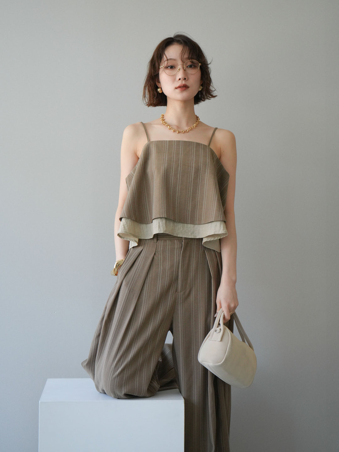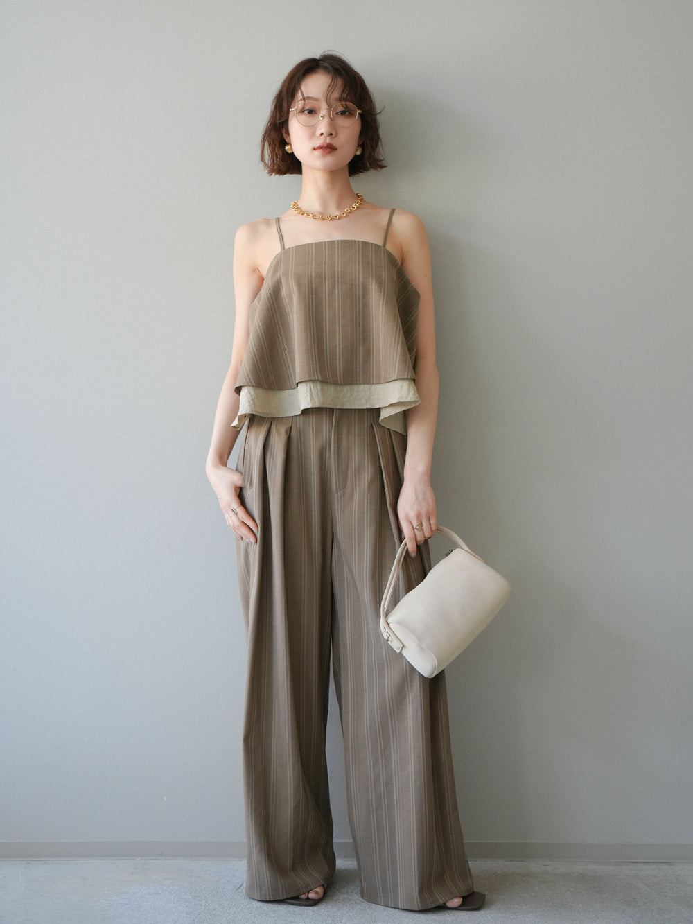 マニッシュなピンストライプ柄を、トレンドライクなキャミビスチェに落とし込んだ主役トップス。コンパクトながらも立体的なシルエットで、着るだけでスタイリングをアップデートしてくれます。シンプルなカットソーやシアートップスとのレイヤードもおすすめ。程よくモード感を演出しながら、洗練された印象に仕上げてくれる一着です。 ※ボトムス、キャミソール(インナー)以外の商品は一律でインナーは付属していません