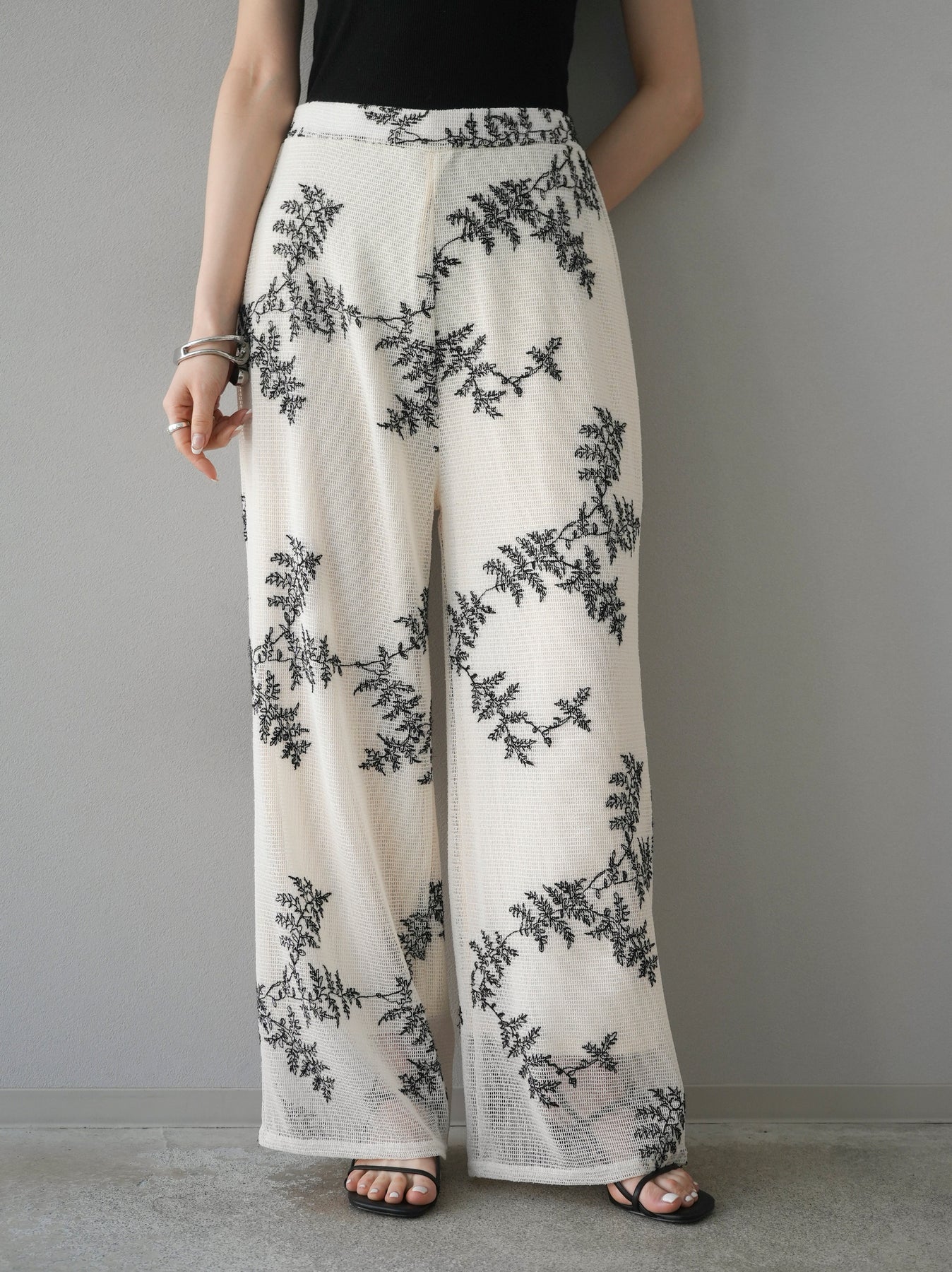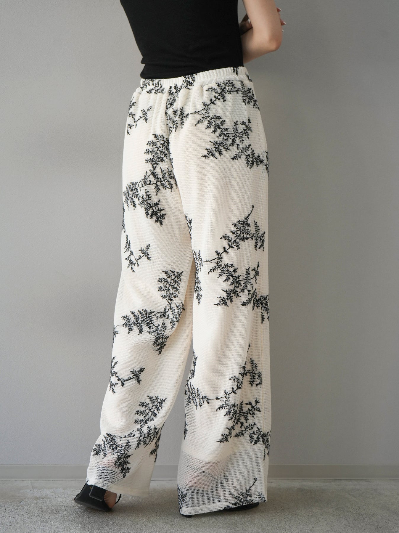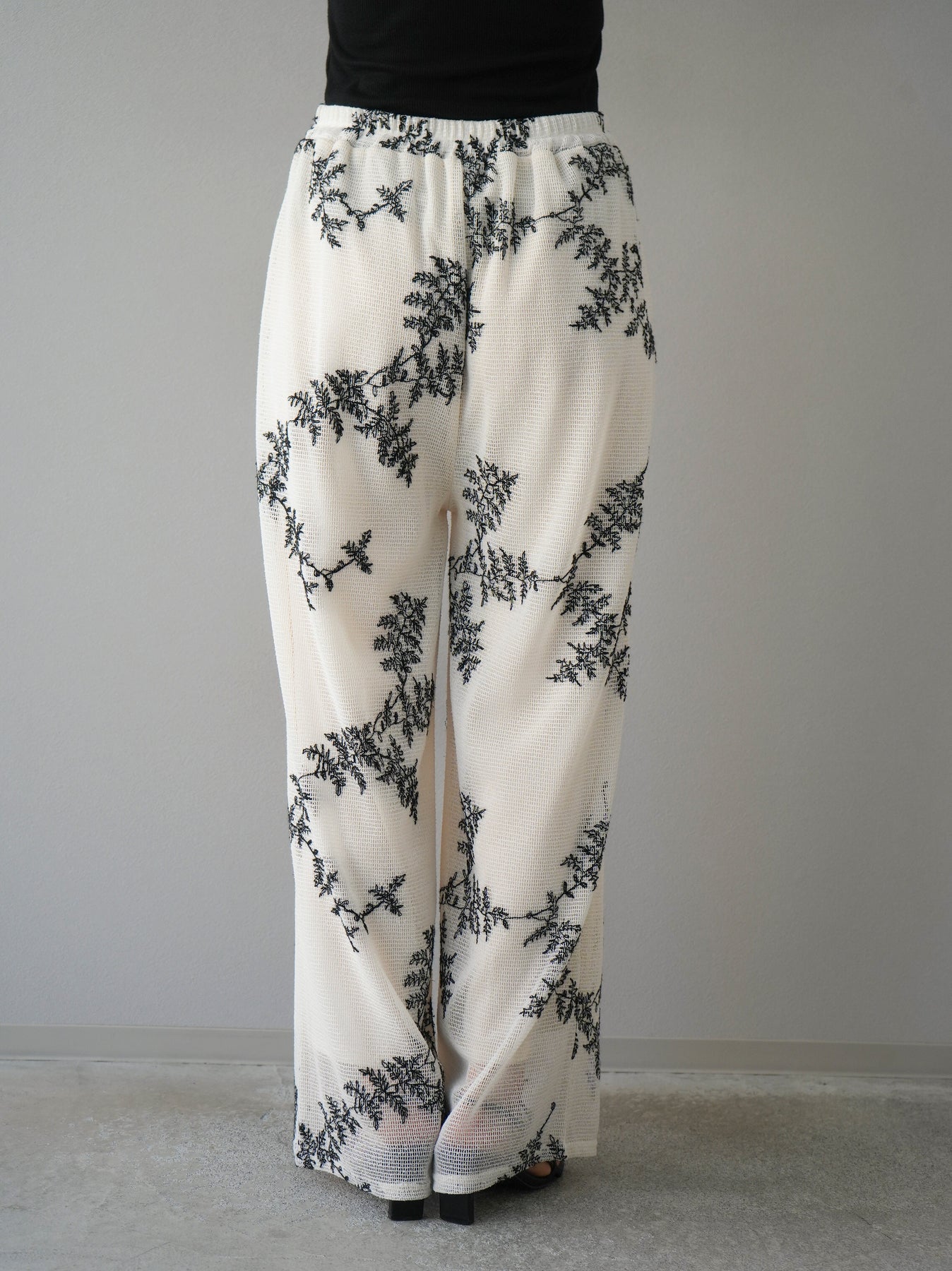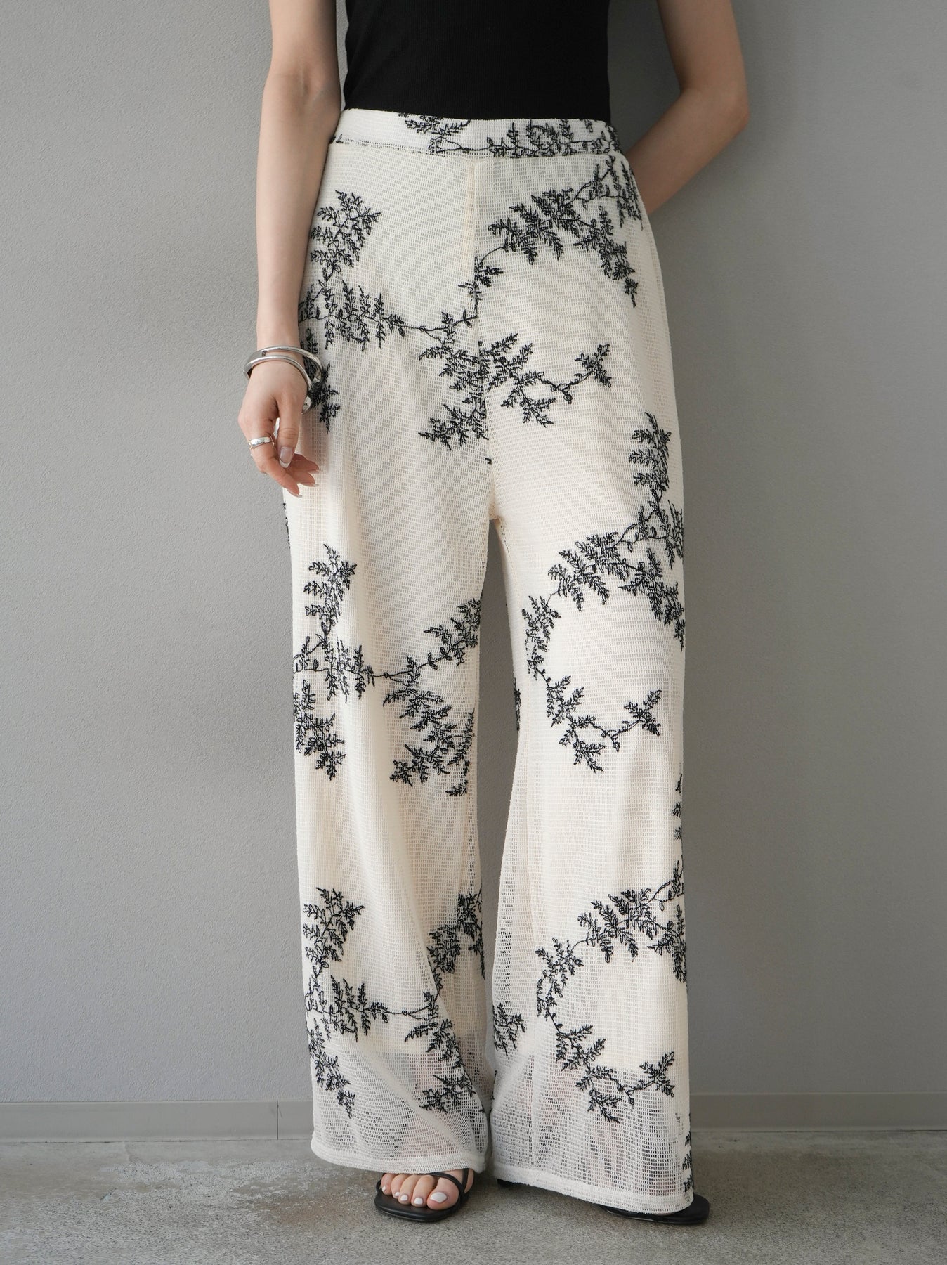 [予約]リーフ柄メッシュワイドパンツ/アイボリー