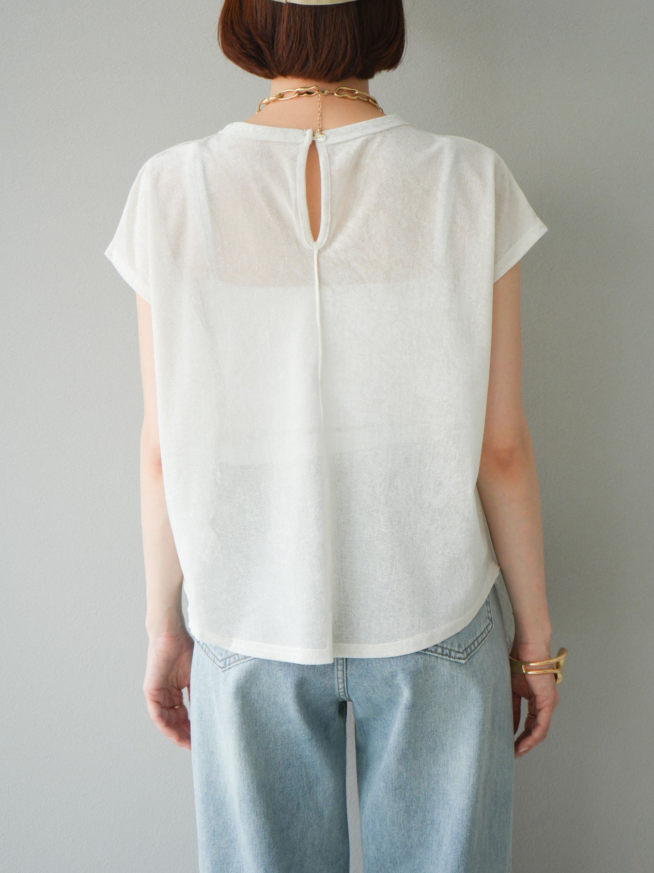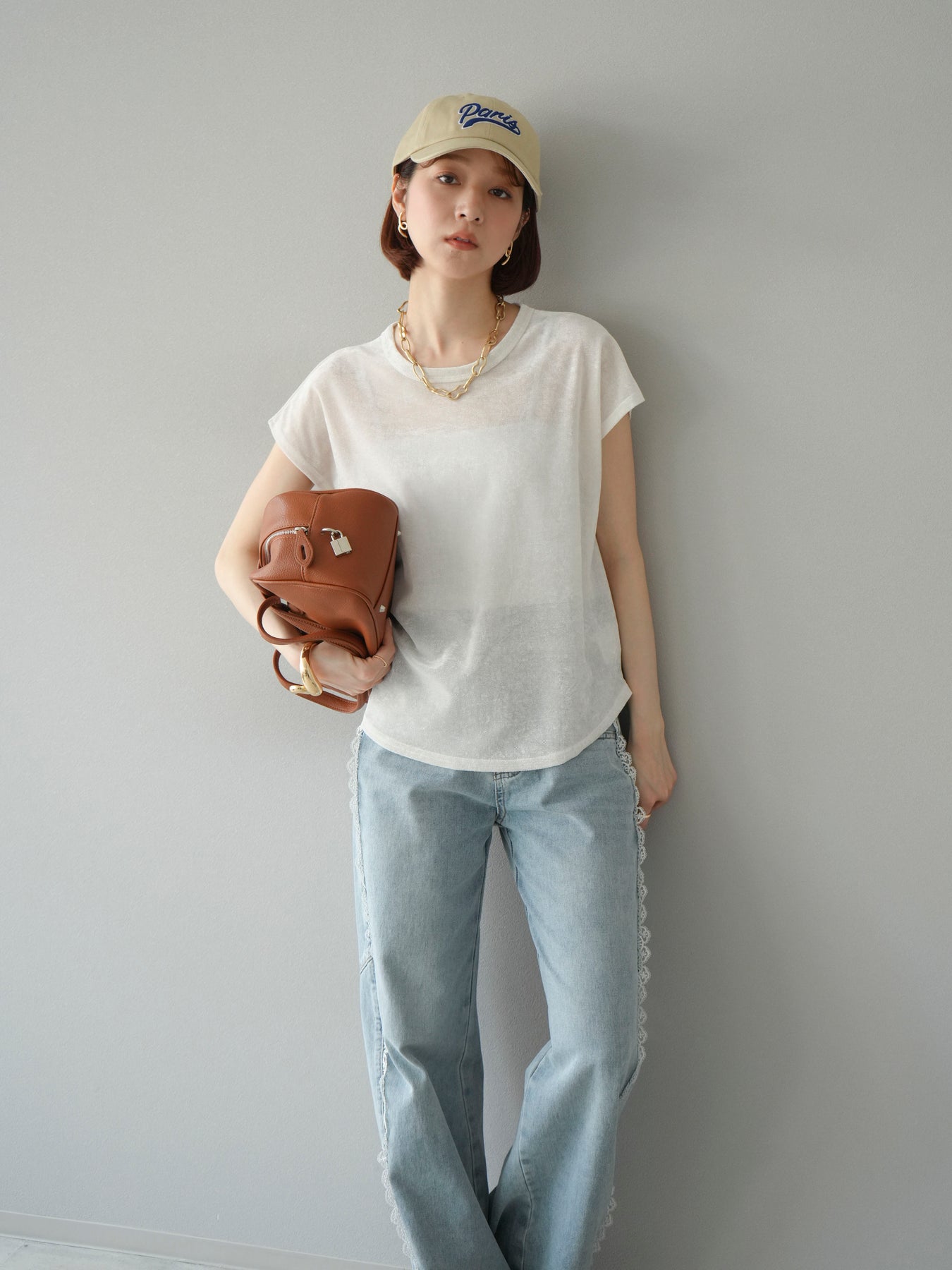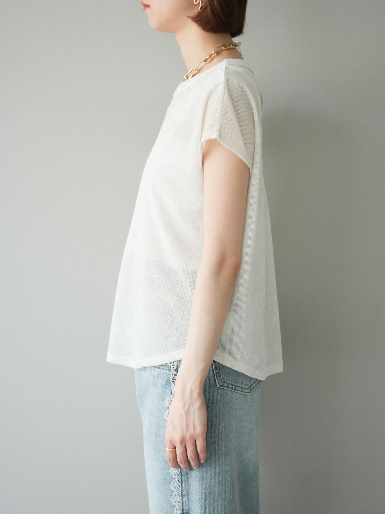 ほんのりとした光沢感と透け感が魅力の、シアーベロア素材を使用したプルオーバー。上品さとカジュアルさを兼ね備えた素材感で、シンプルなシルエットながらもこなれ感を演出してくれる一枚です。落ち感のある柔らかな風合いで着心地も抜群。インナーとのレイヤードで表情を変えられるのもポイントです。デニムやスカートに合わせるだけで、旬なスタイリングが完成する万能トップス。 ※ボトムス、キャミソール(インナー)以外の商品は一律でインナーは付属していません。
