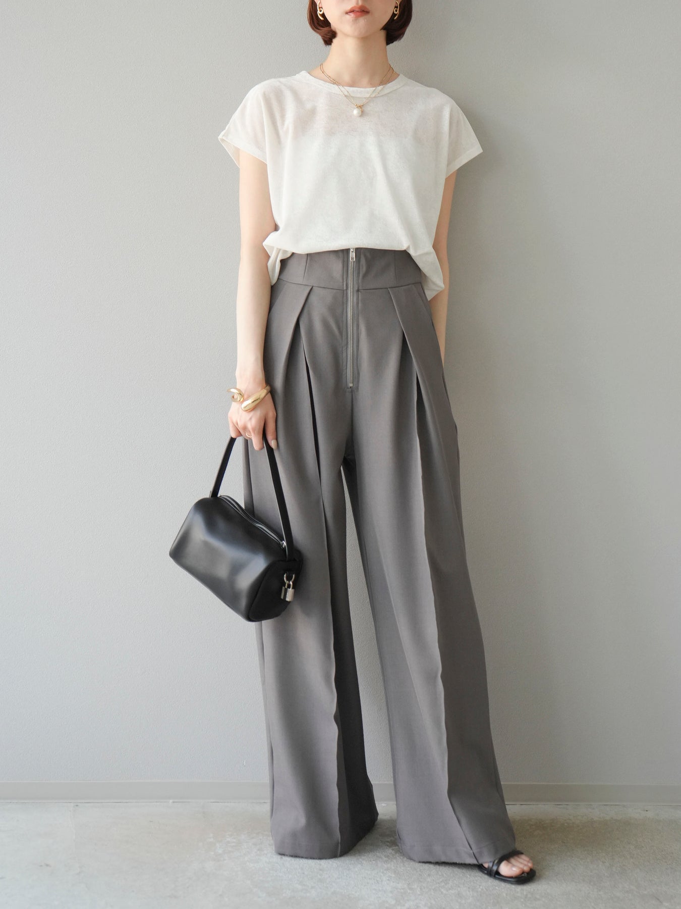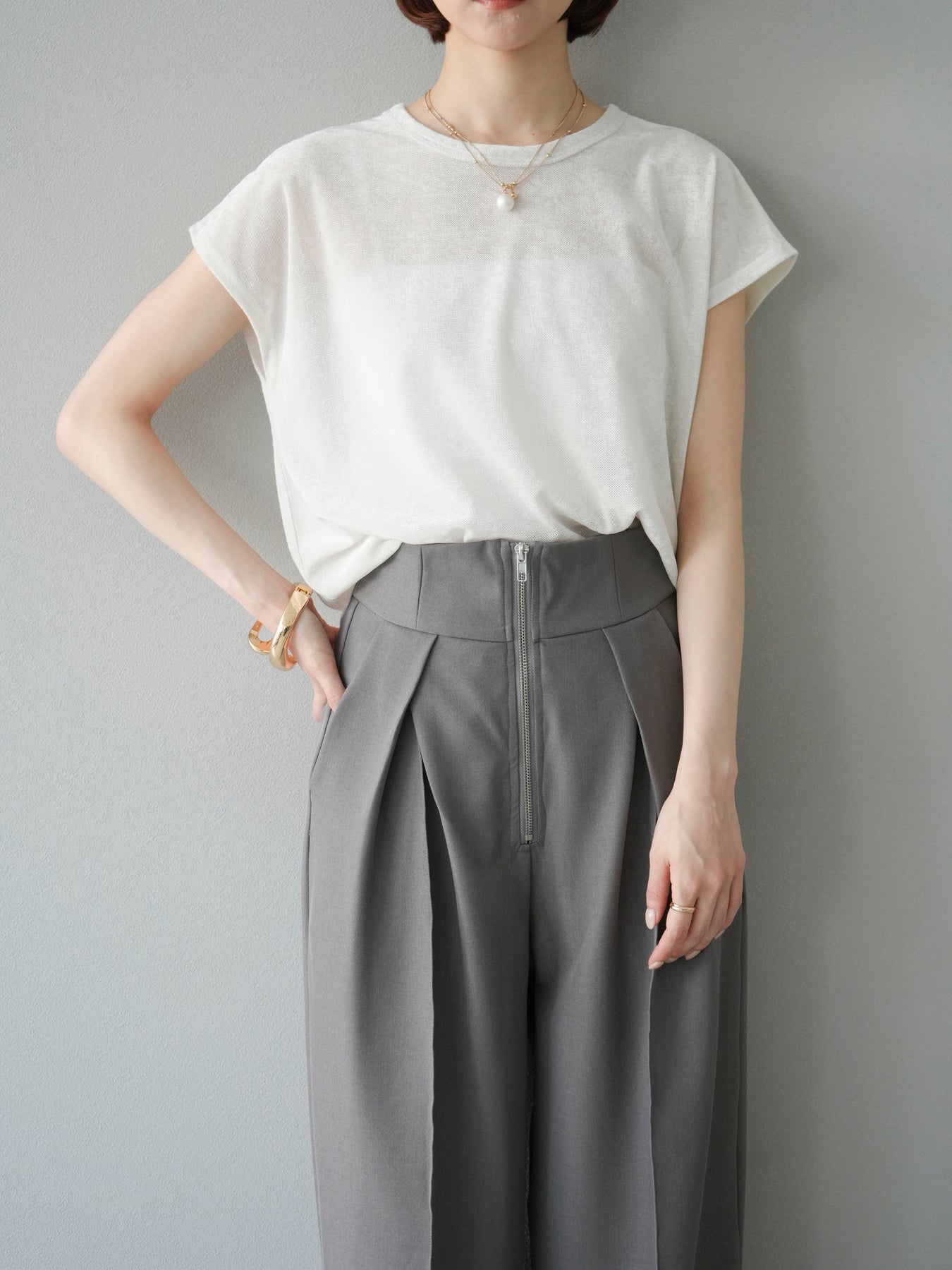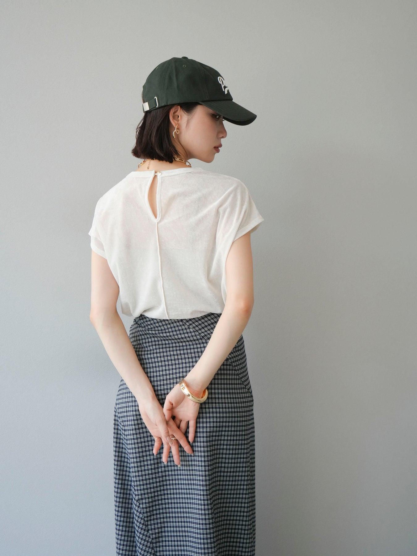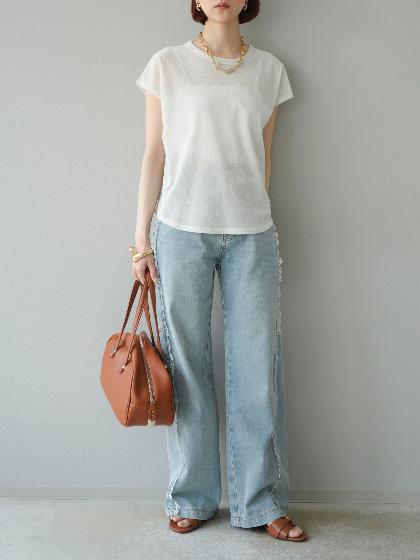 ほんのりとした光沢感と透け感が魅力の、シアーベロア素材を使用したプルオーバー。上品さとカジュアルさを兼ね備えた素材感で、シンプルなシルエットながらもこなれ感を演出してくれる一枚です。落ち感のある柔らかな風合いで着心地も抜群。インナーとのレイヤードで表情を変えられるのもポイントです。デニムやスカートに合わせるだけで、旬なスタイリングが完成する万能トップス。 ※ボトムス、キャミソール(インナー)以外の商品は一律でインナーは付属していません。