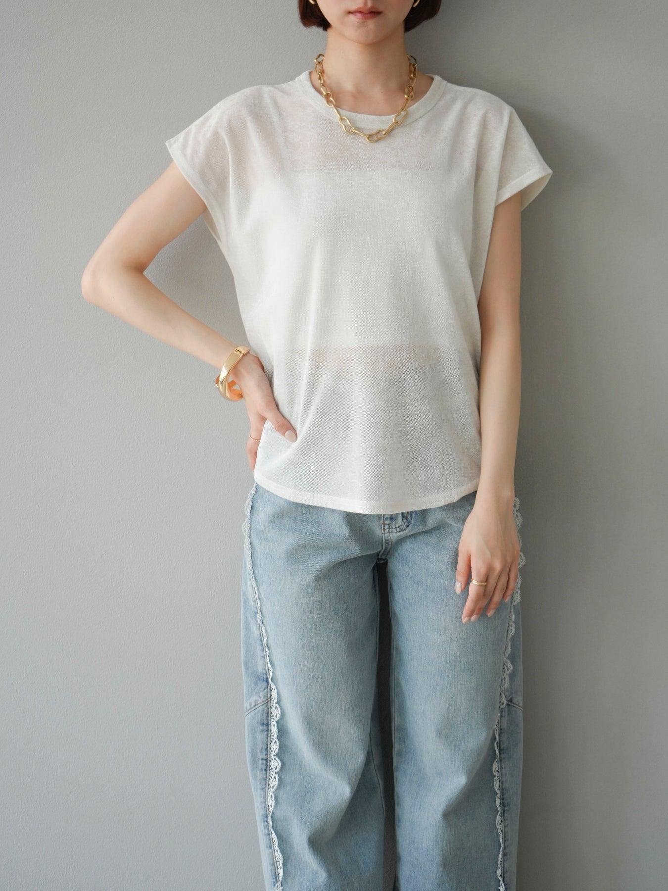 バスト104cm 袖口35cm 着丈58cm 透け感あり 伸縮性ややあり