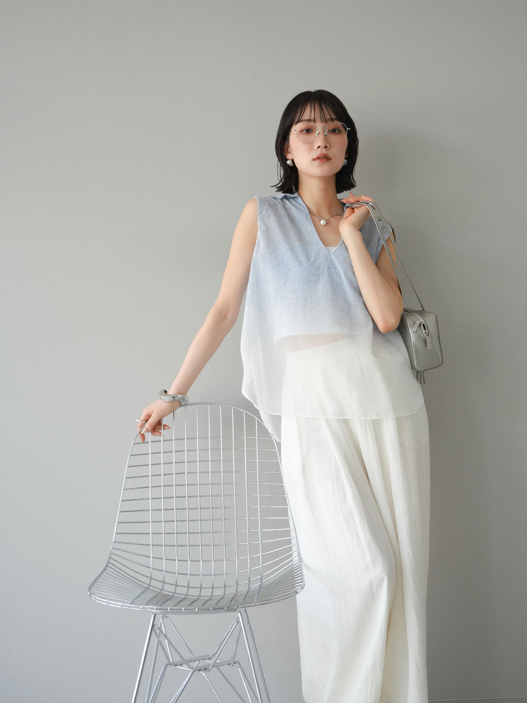 [予約]染めグラデージョンスキッパーブラウス/ライトブルー
