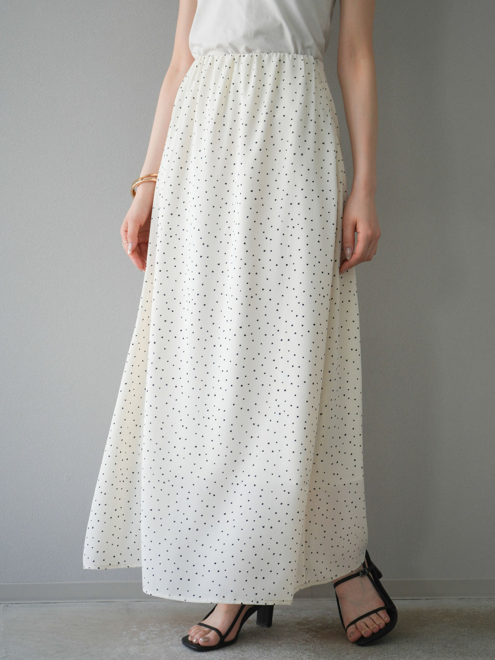 [予約]ハートドットフレアロングスカート/ブラック