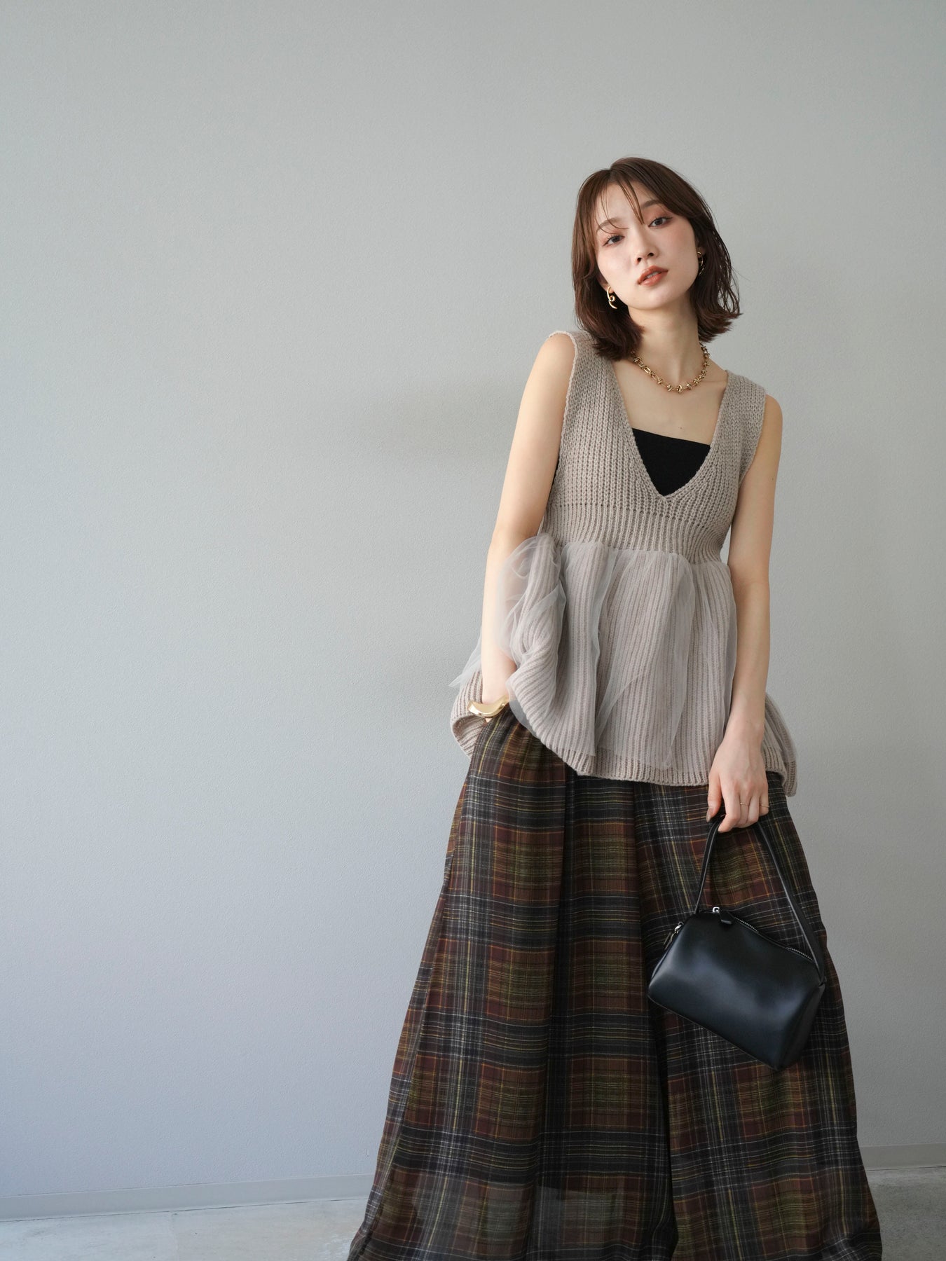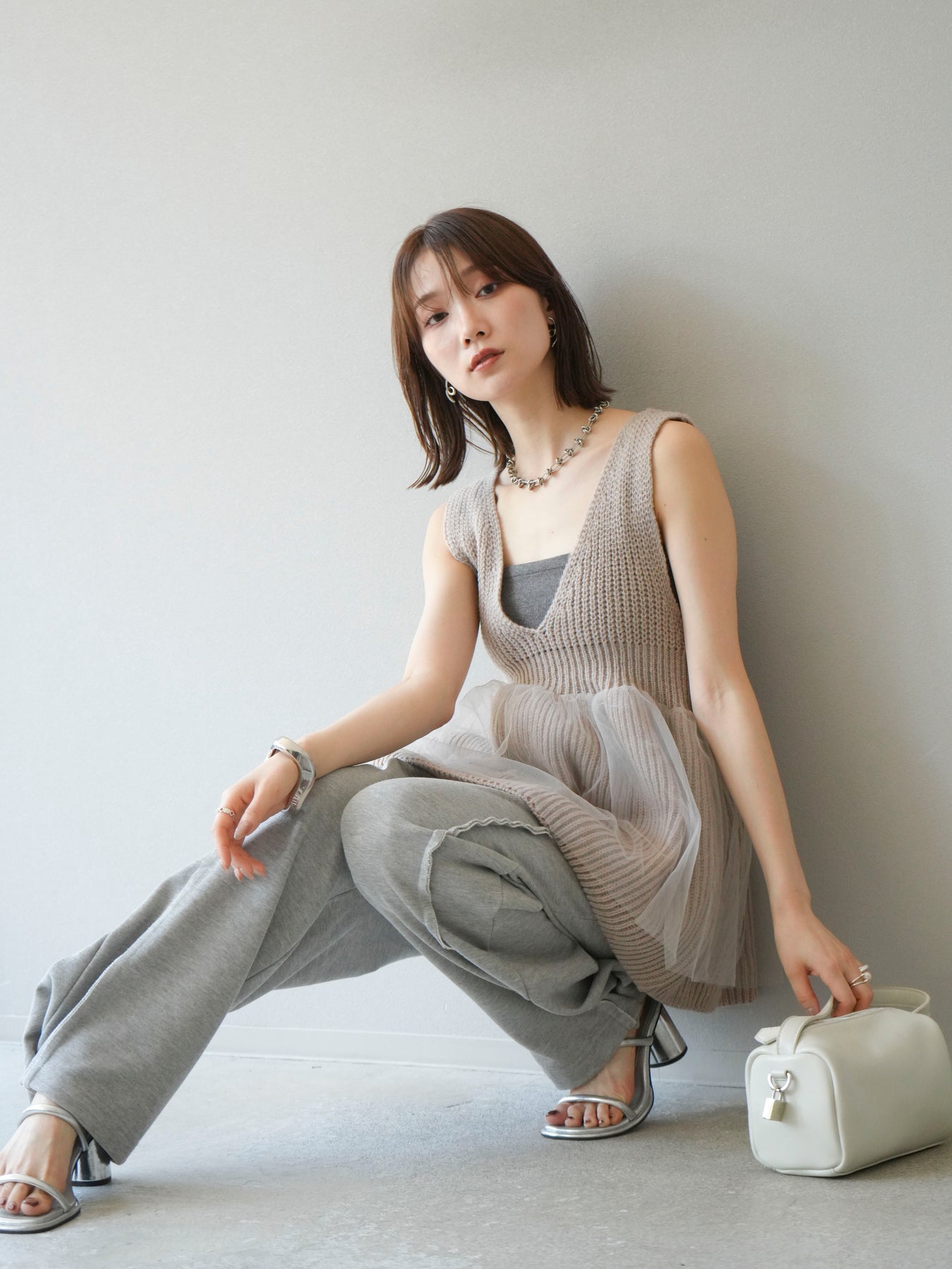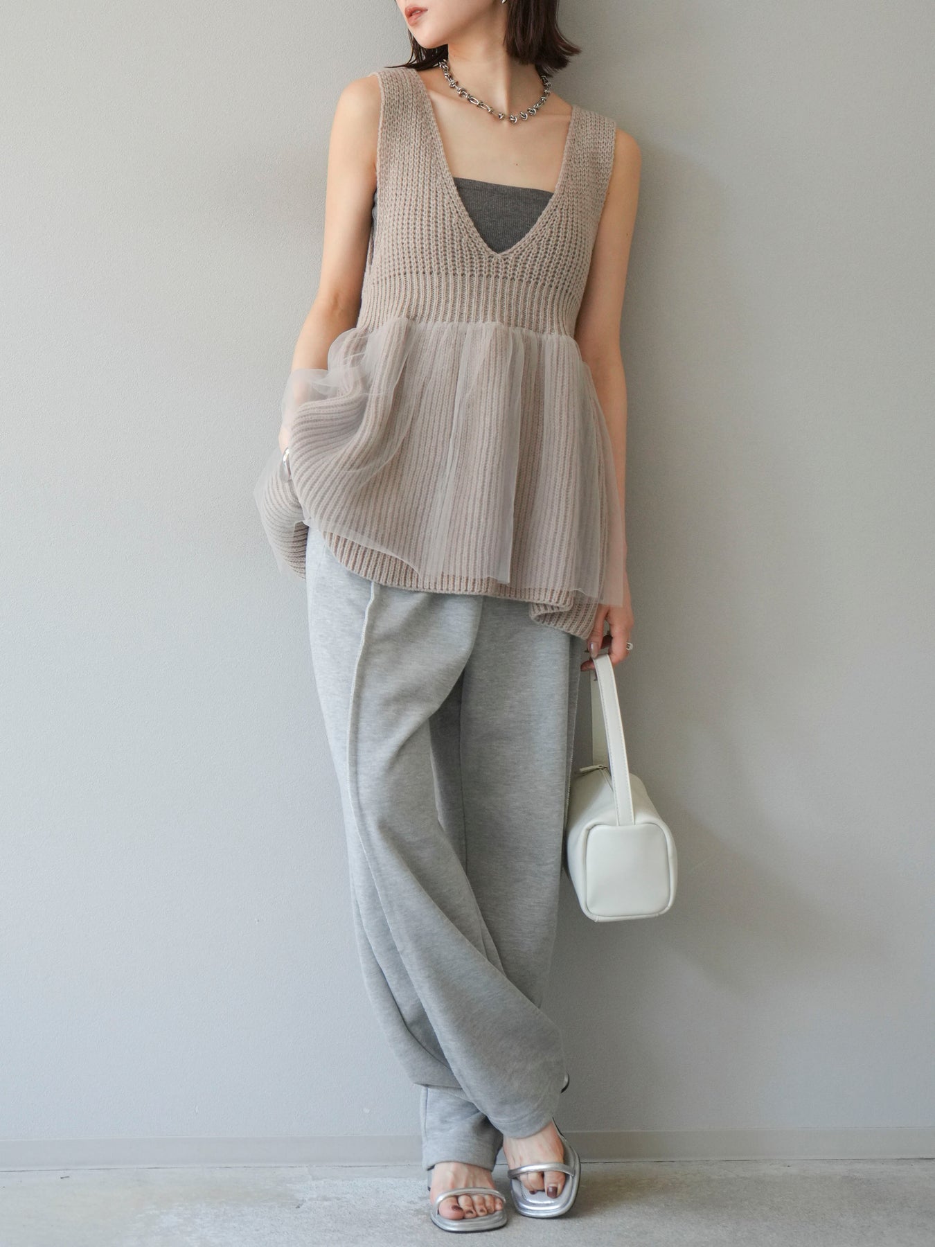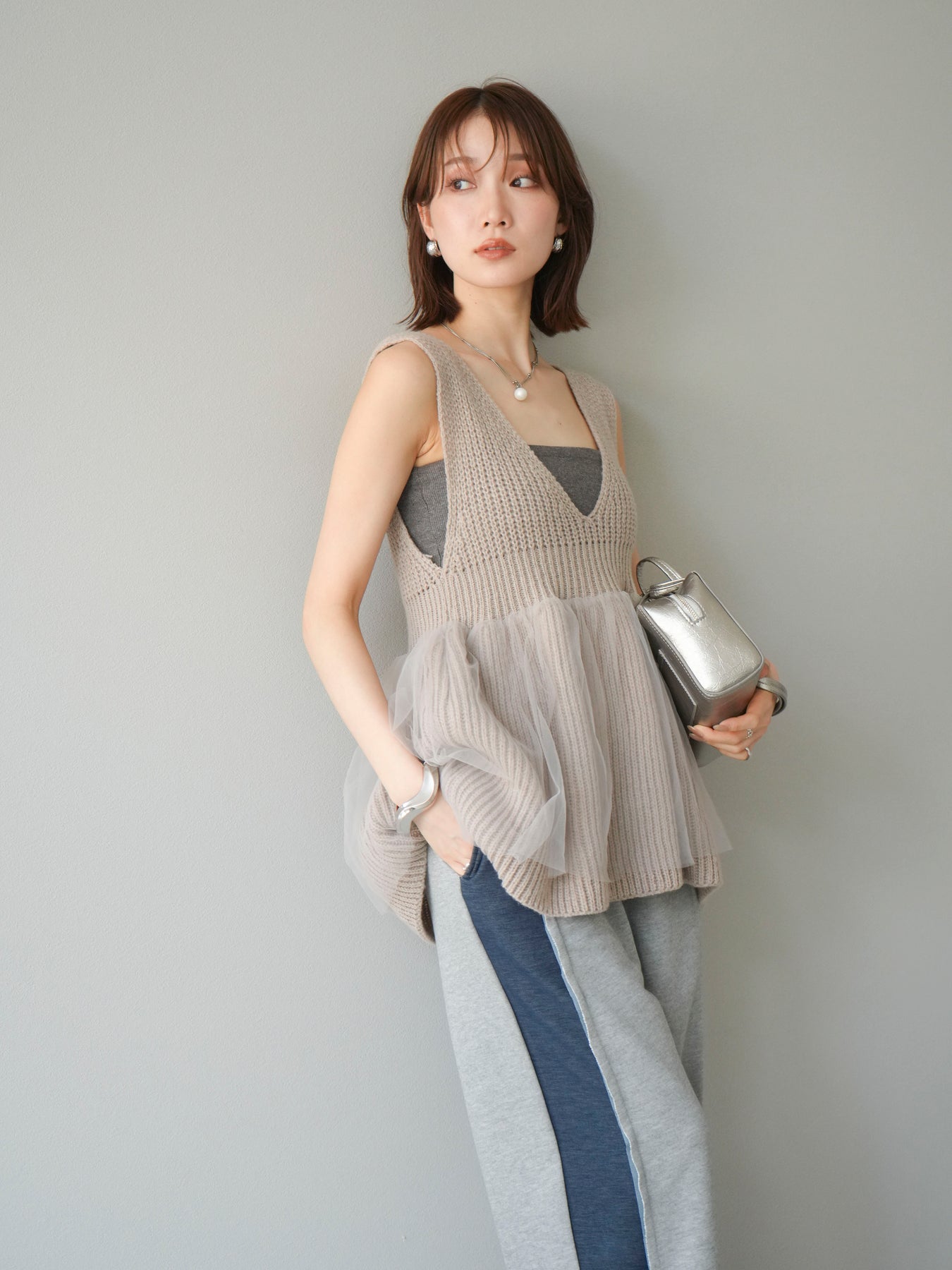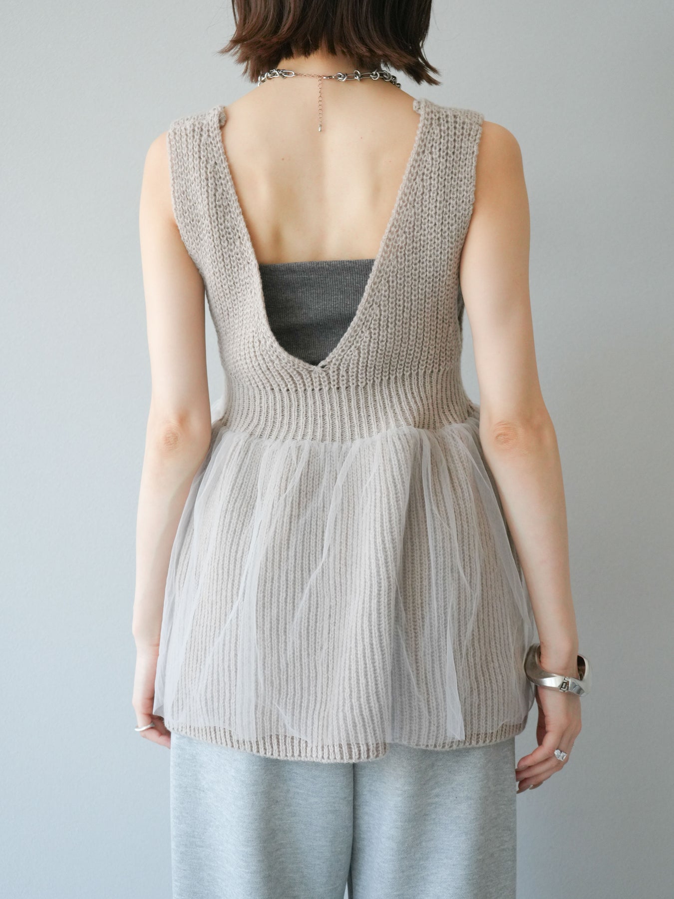 [予約]チュールレイヤードペプラムニットベスト/グレージュ