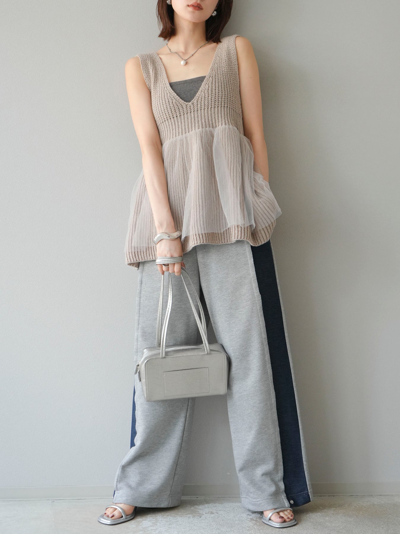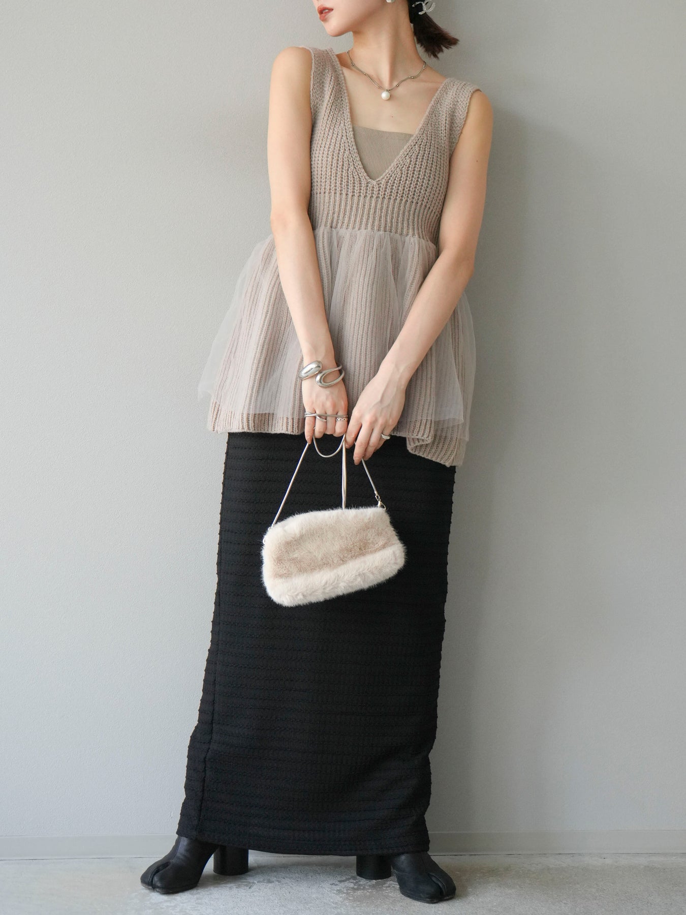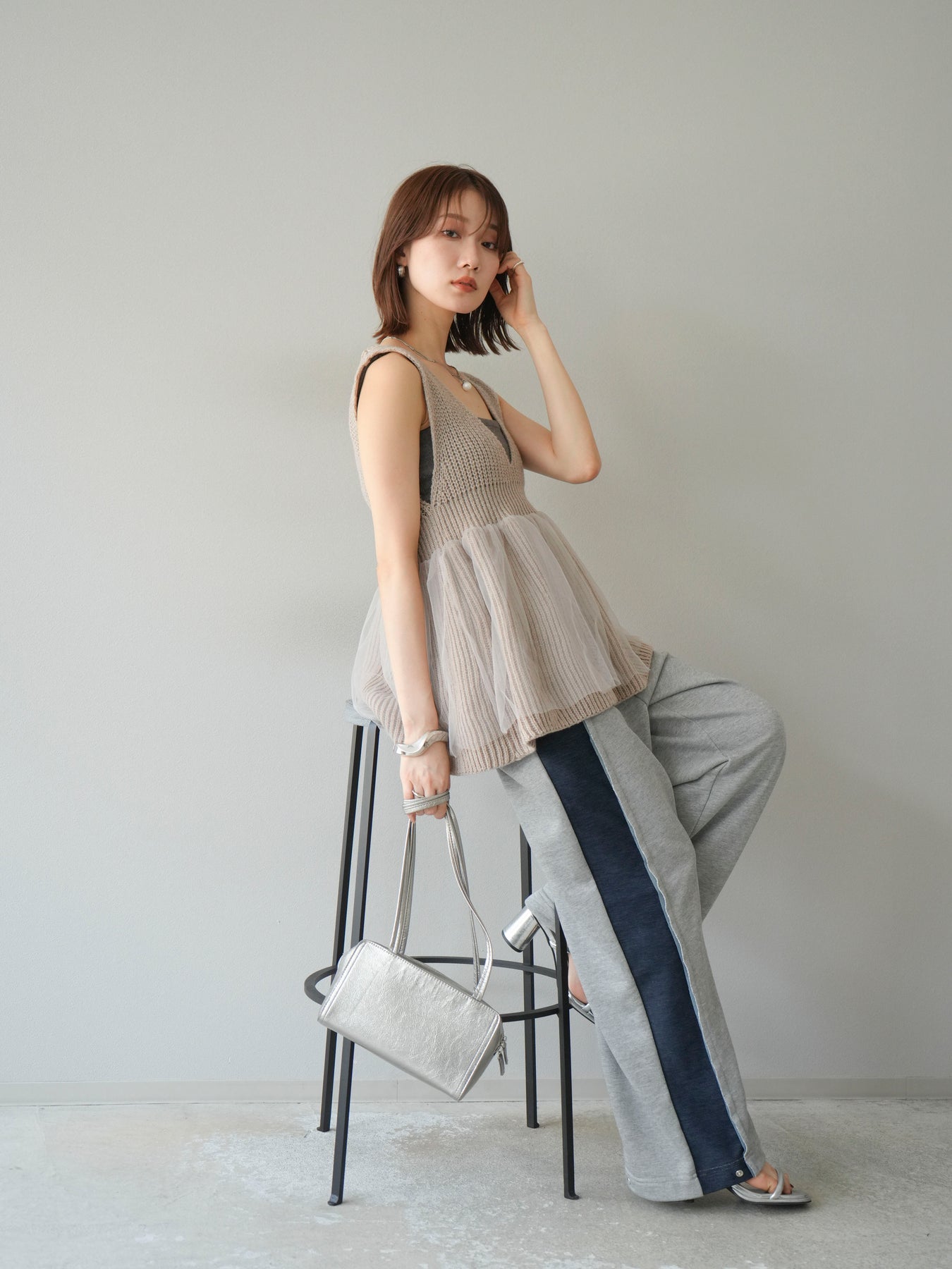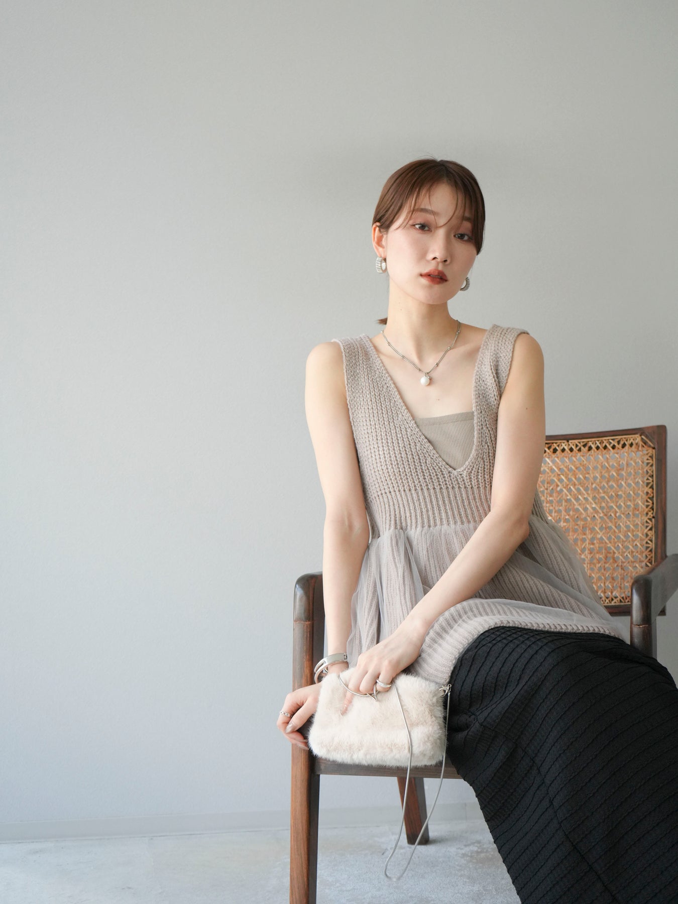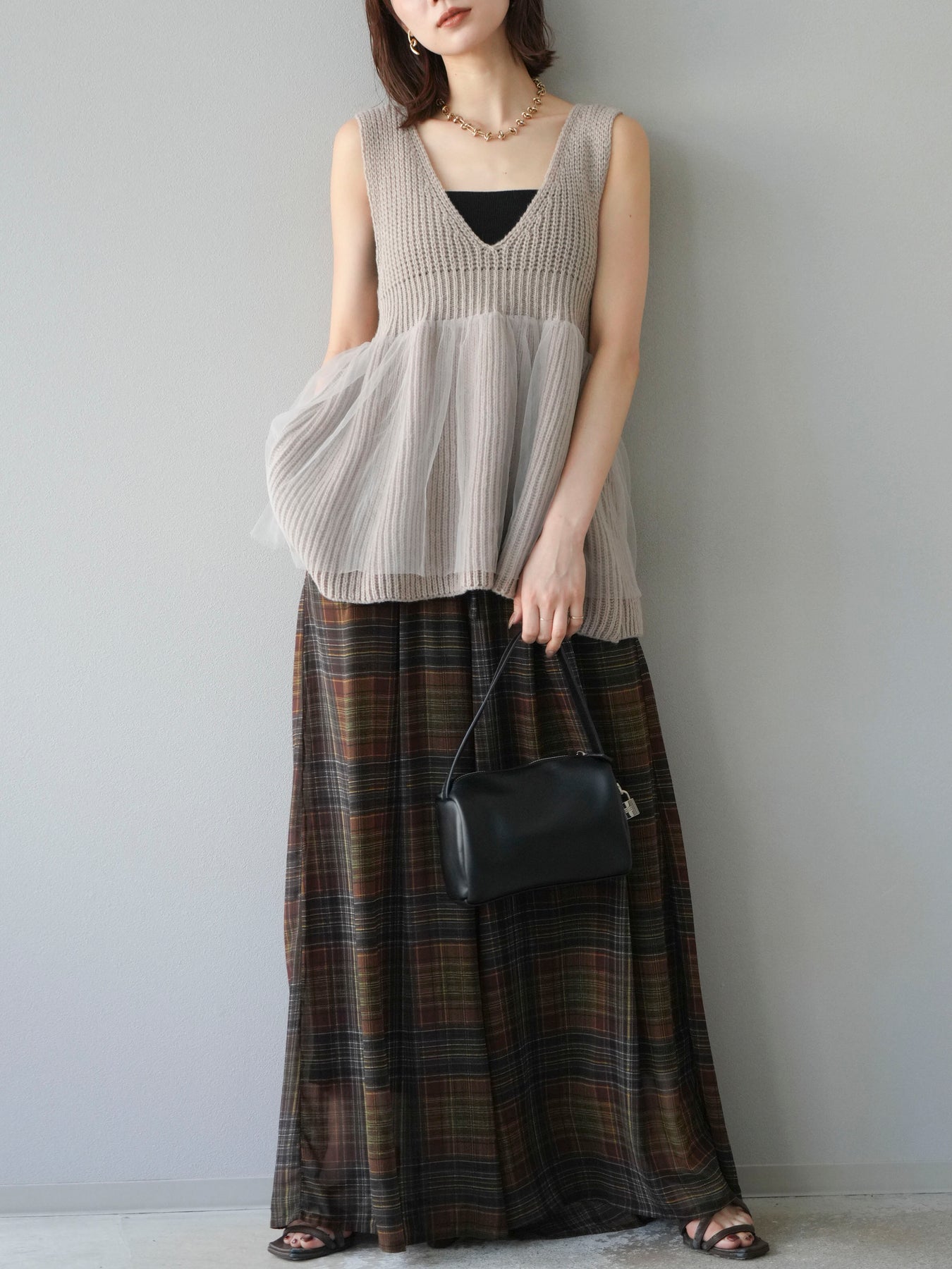 [予約]チュールレイヤードペプラムニットベスト/グレージュ