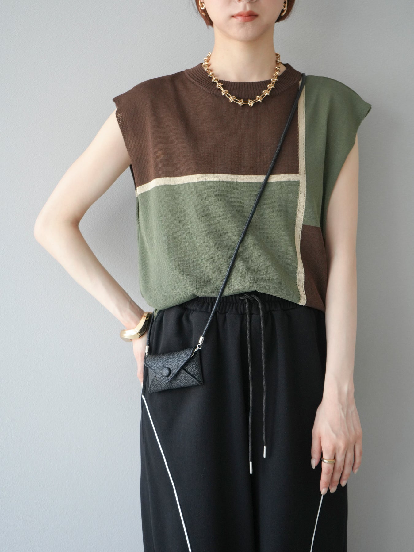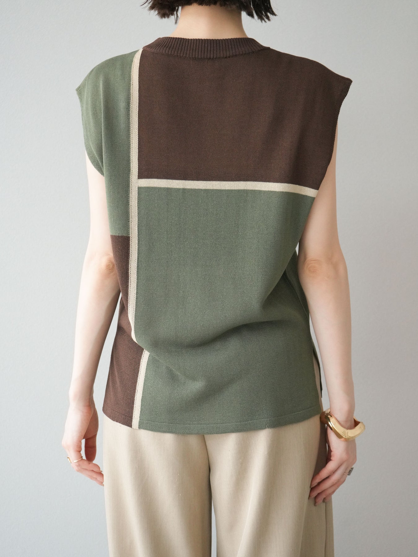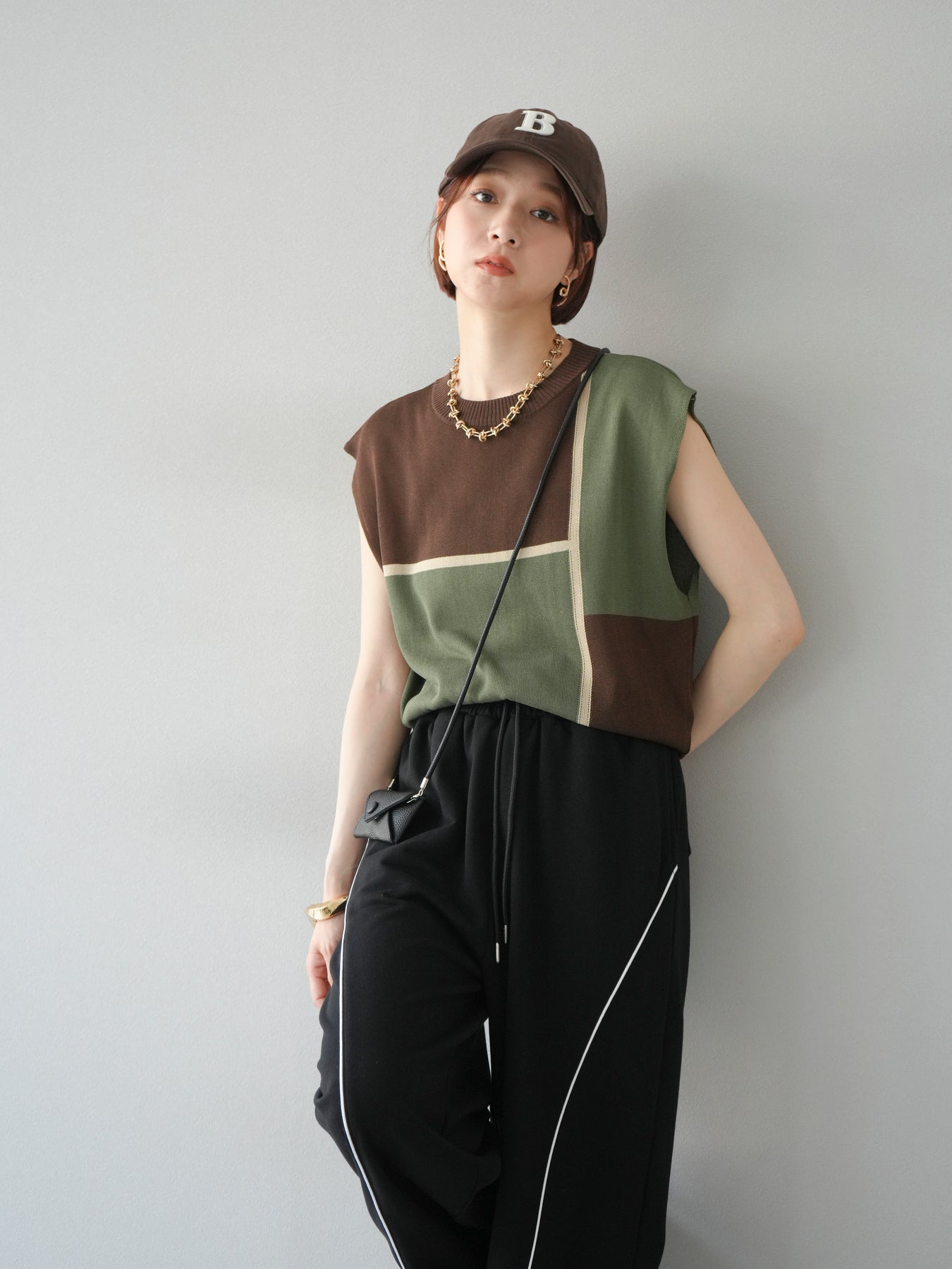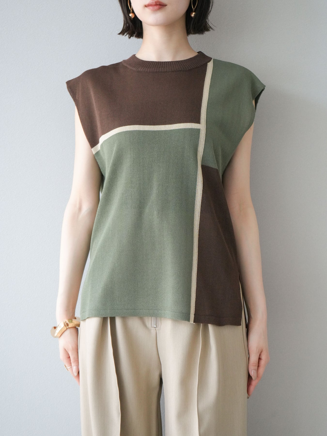 [予約]配色ノースリーブニットプルオーバー/ブラウン