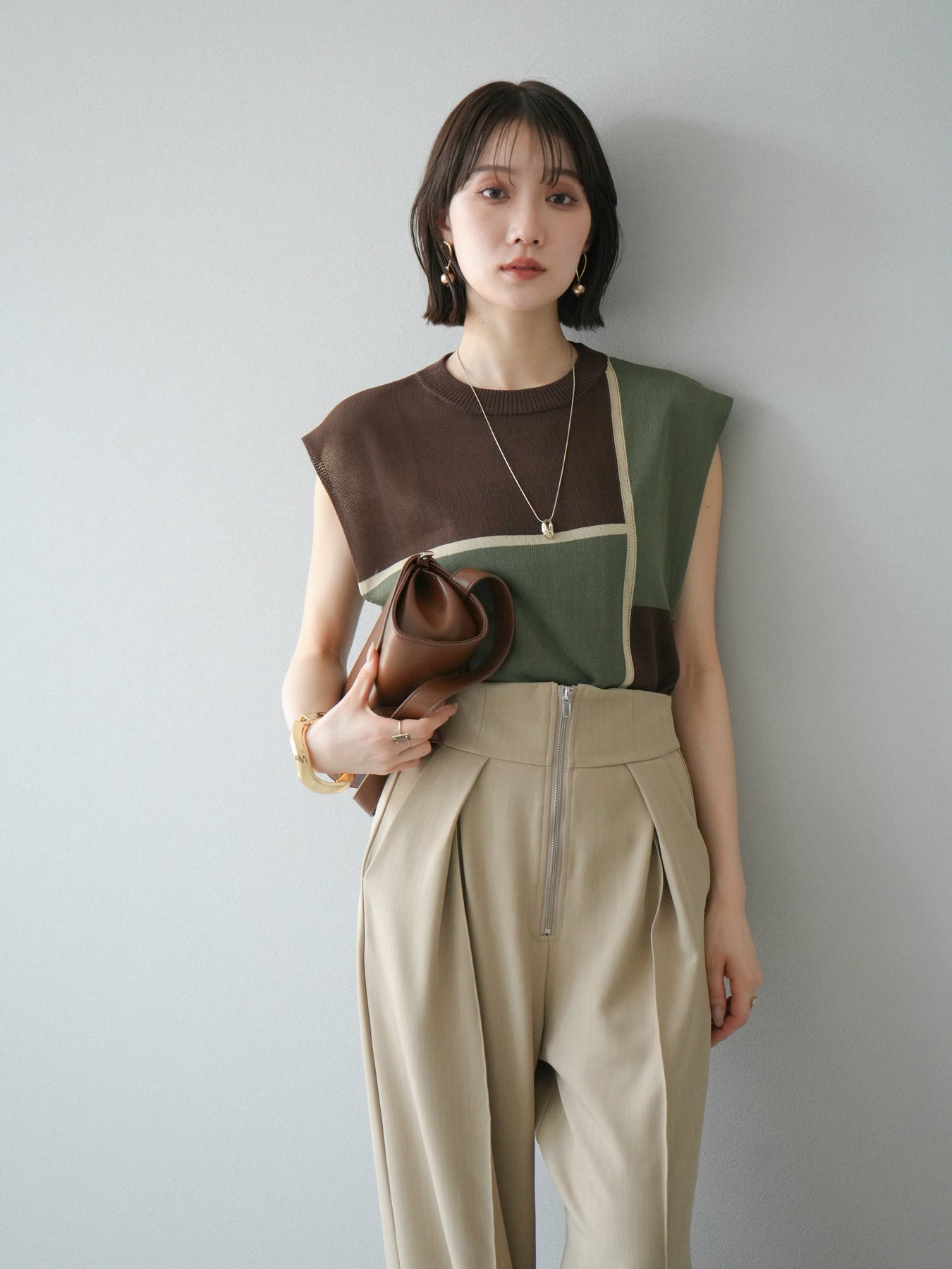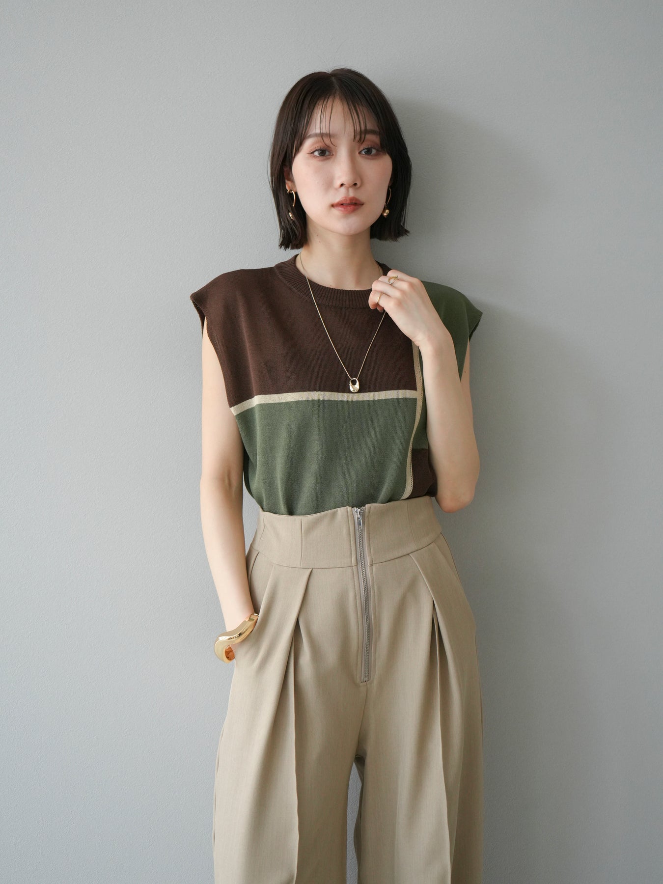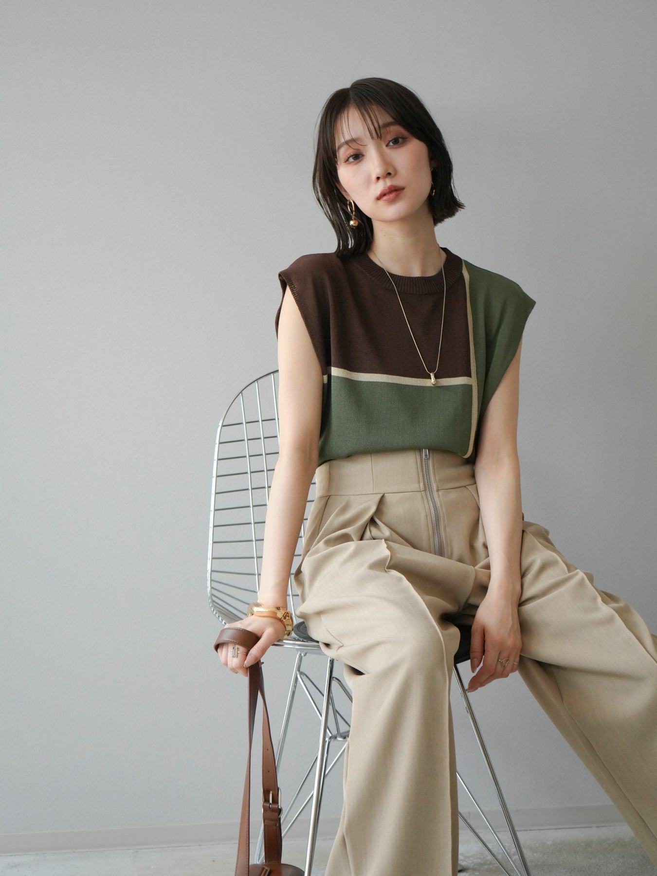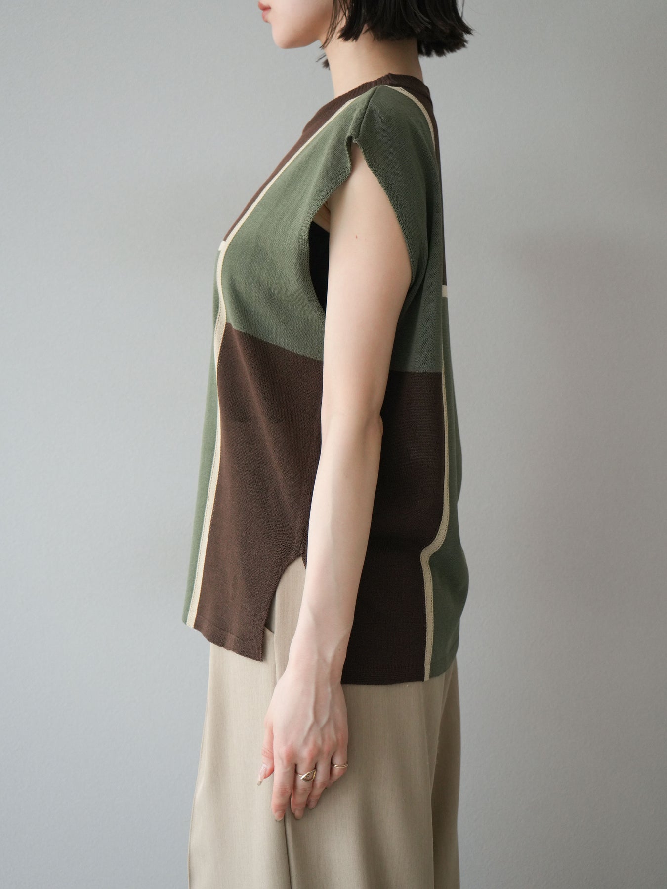 [予約]配色ノースリーブニットプルオーバー/ブラウン