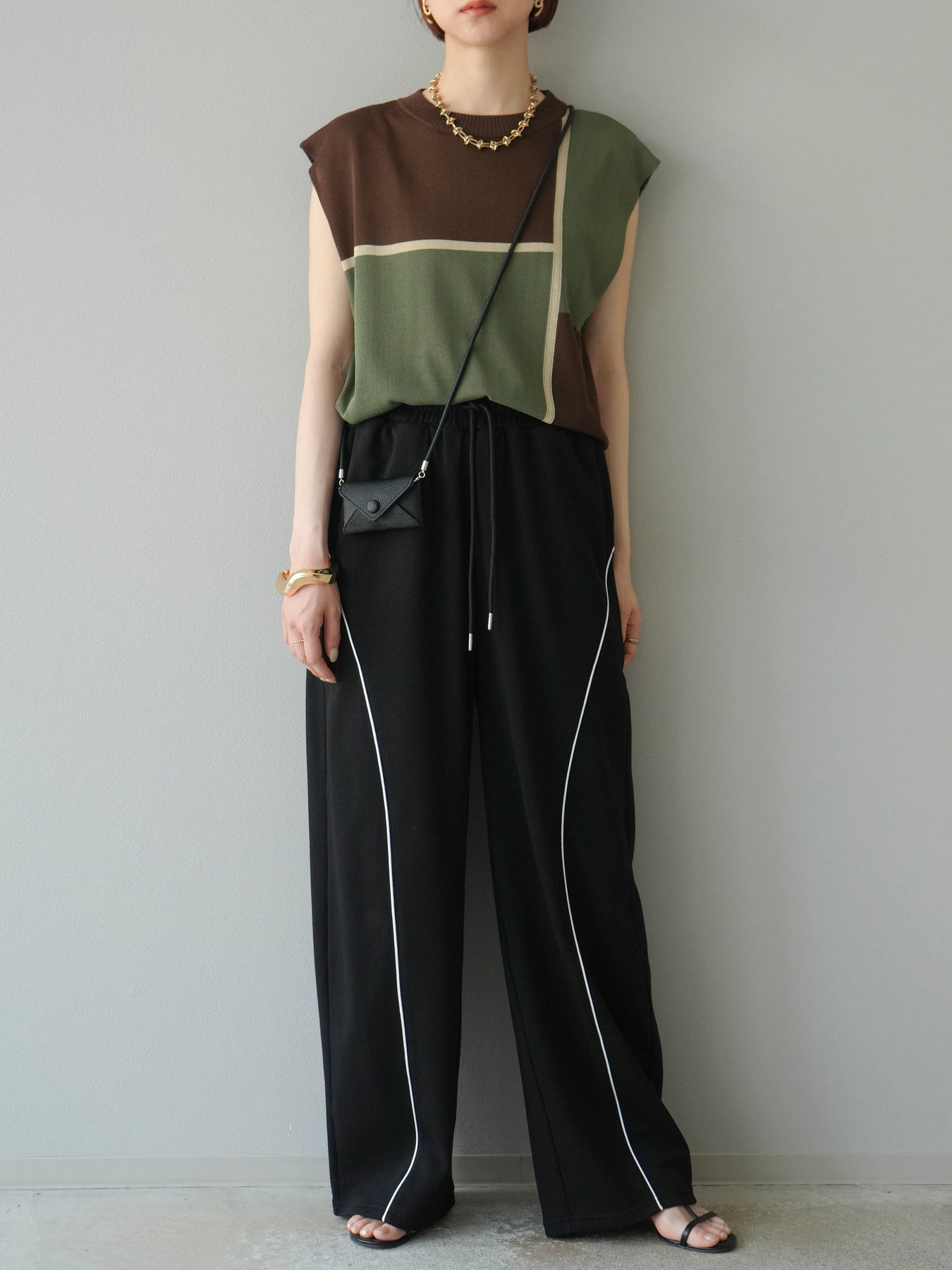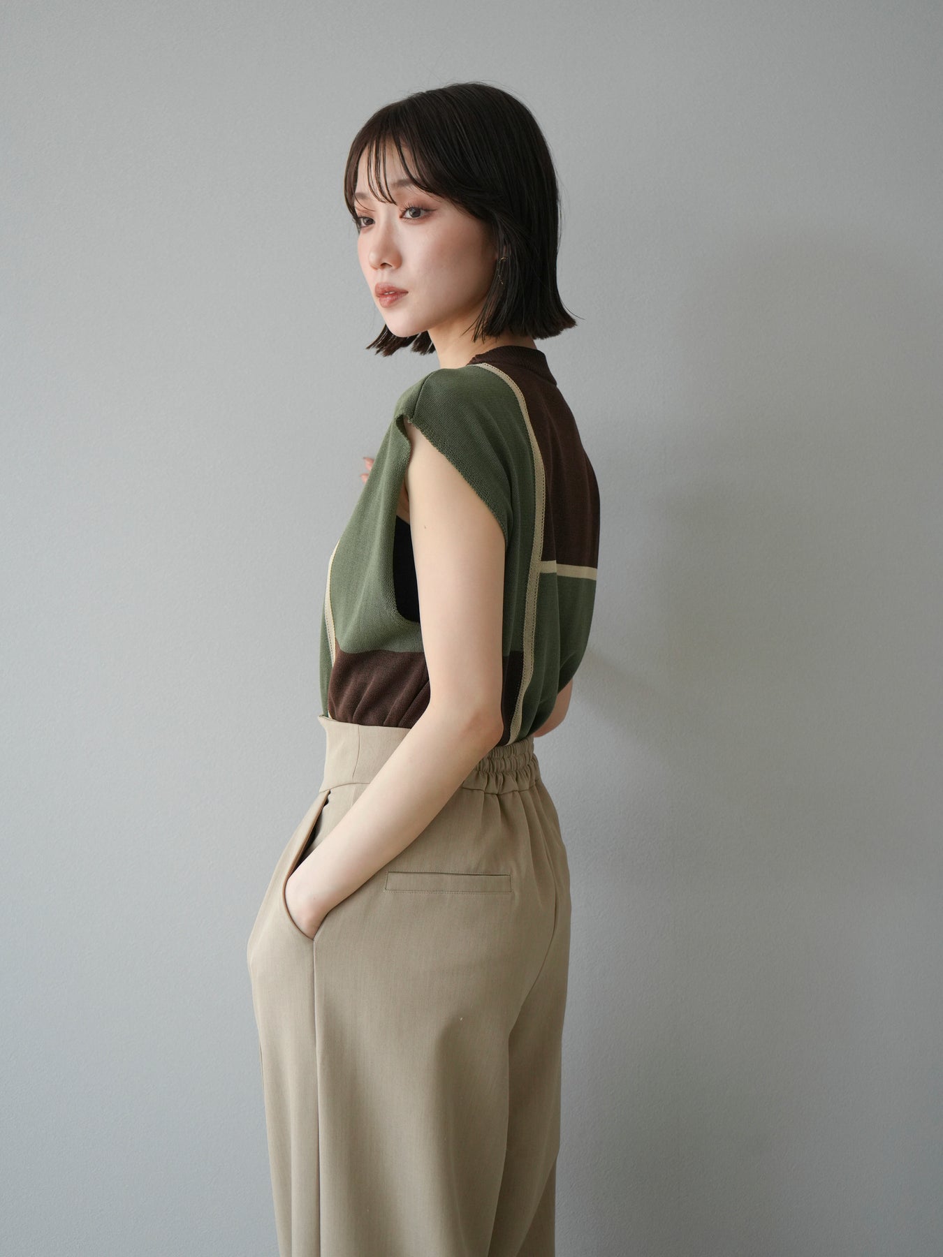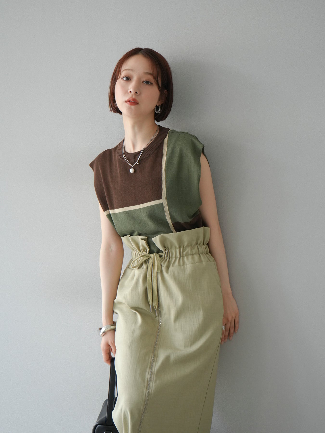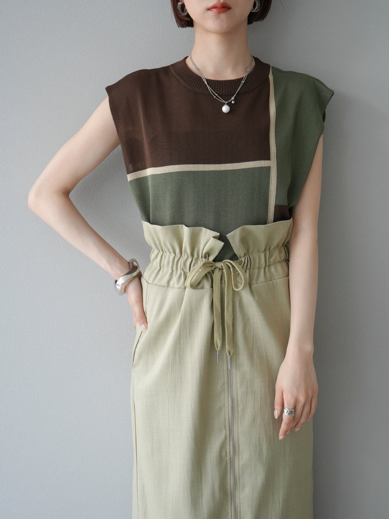 [予約]配色ノースリーブニットプルオーバー/ブラウン