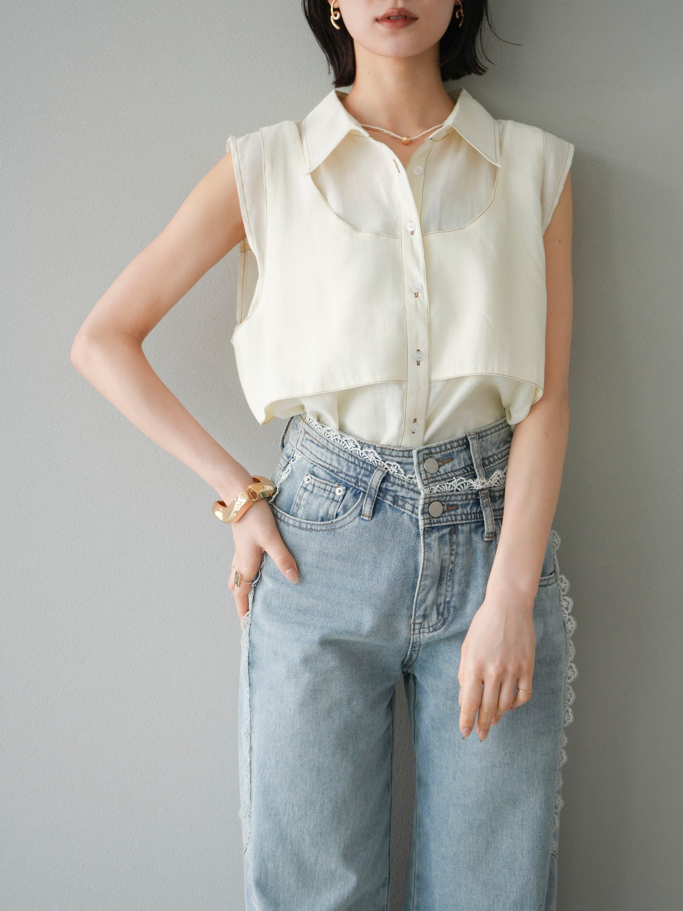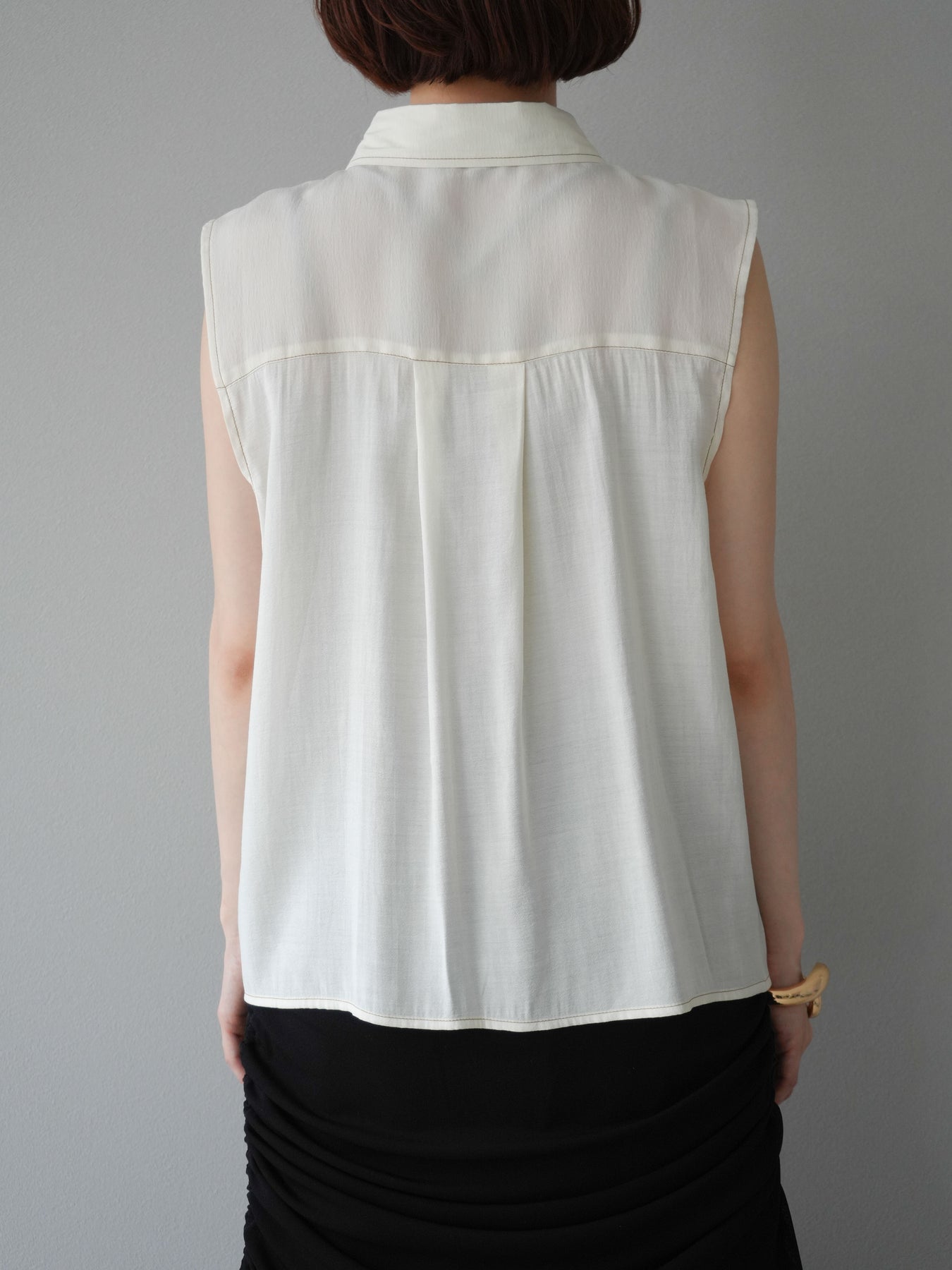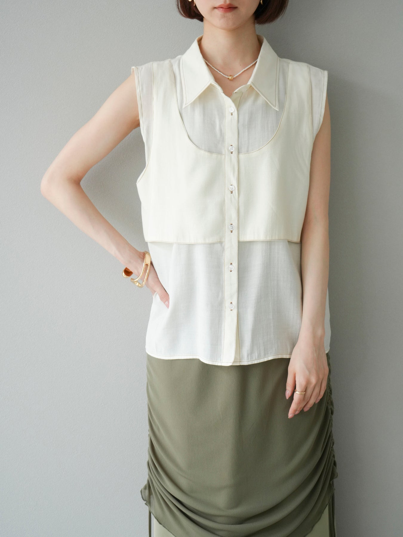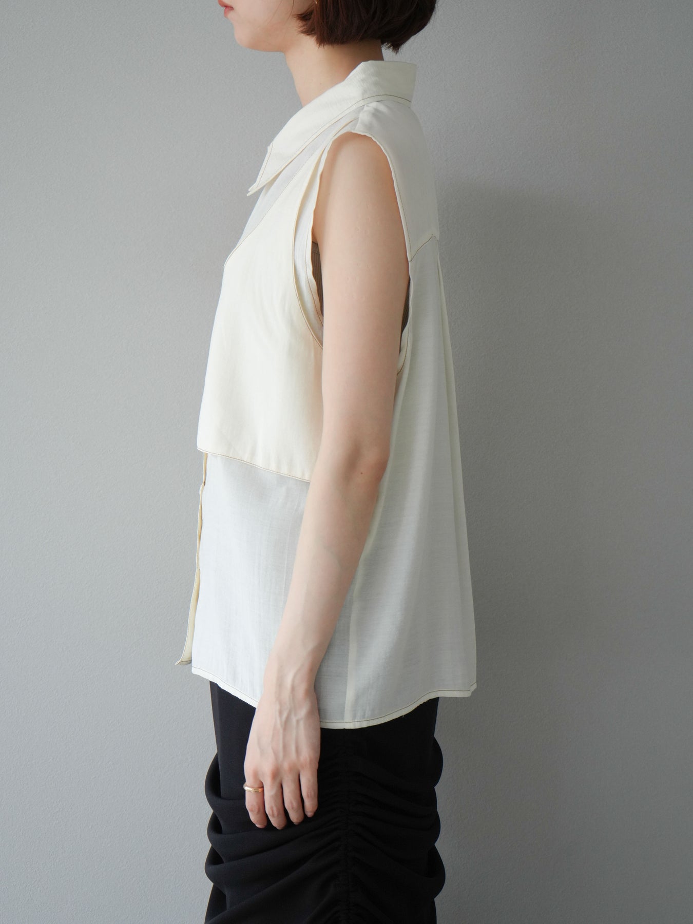 [予約]ステッチシアーレイヤードデザインブラウス/アイボリー