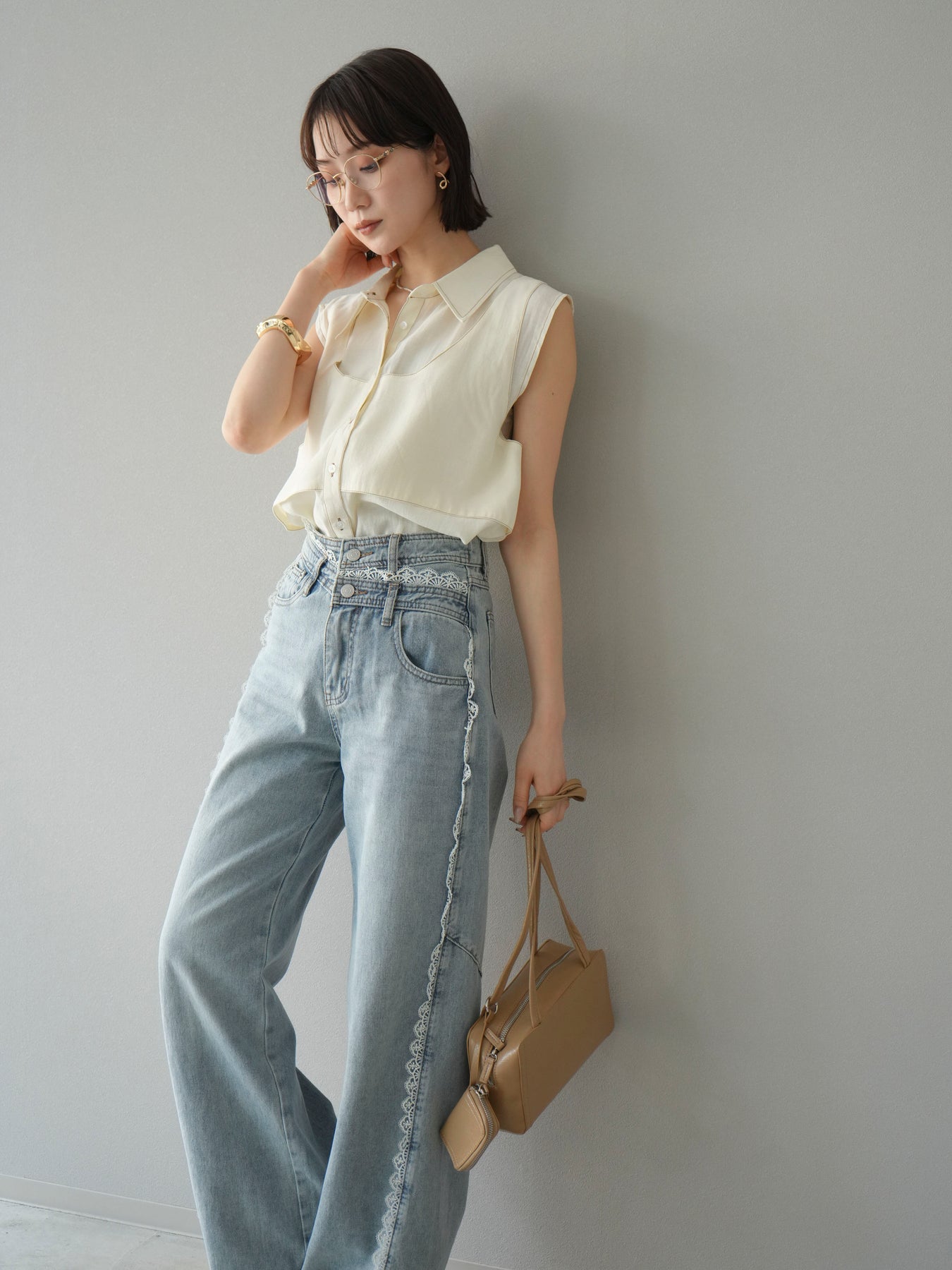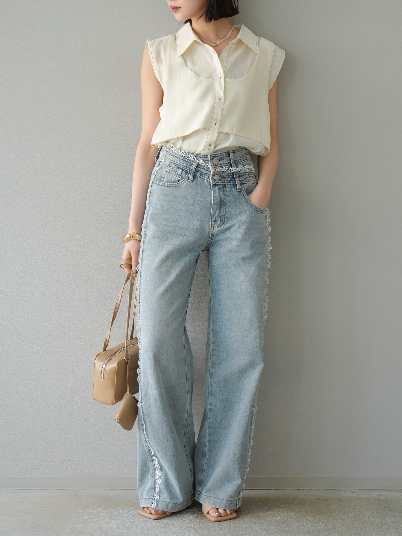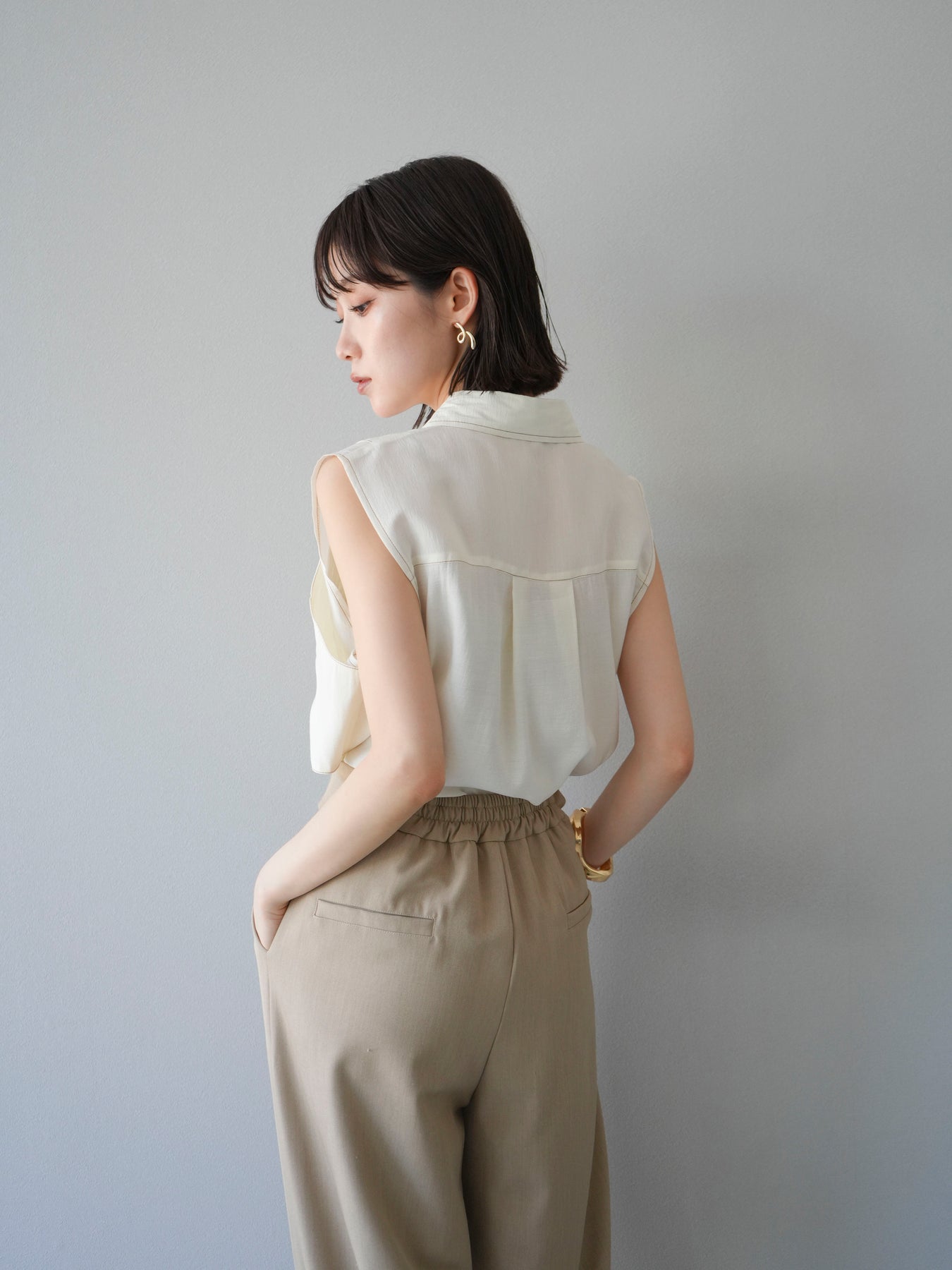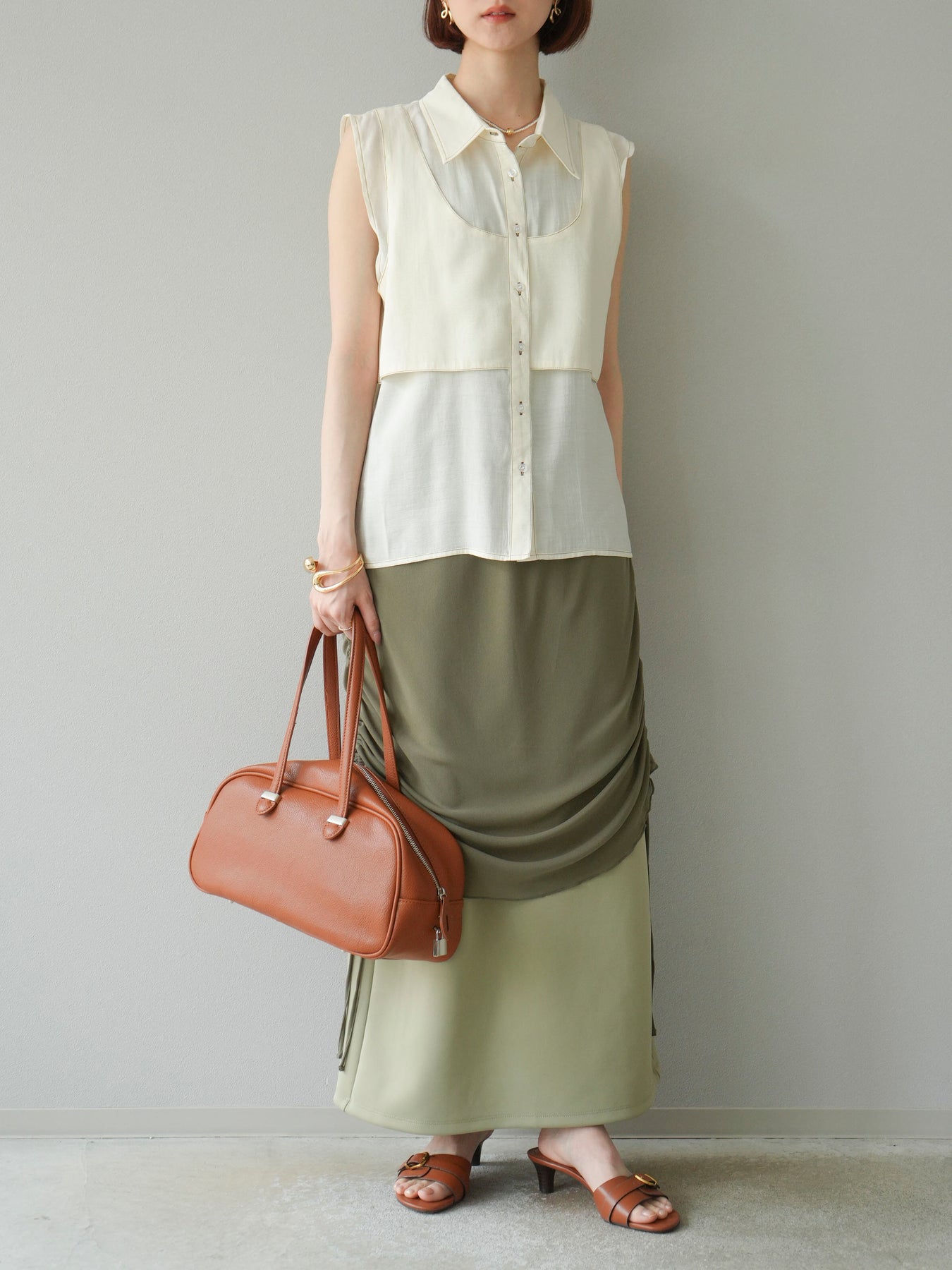 [予約]ステッチシアーレイヤードデザインブラウス/アイボリー