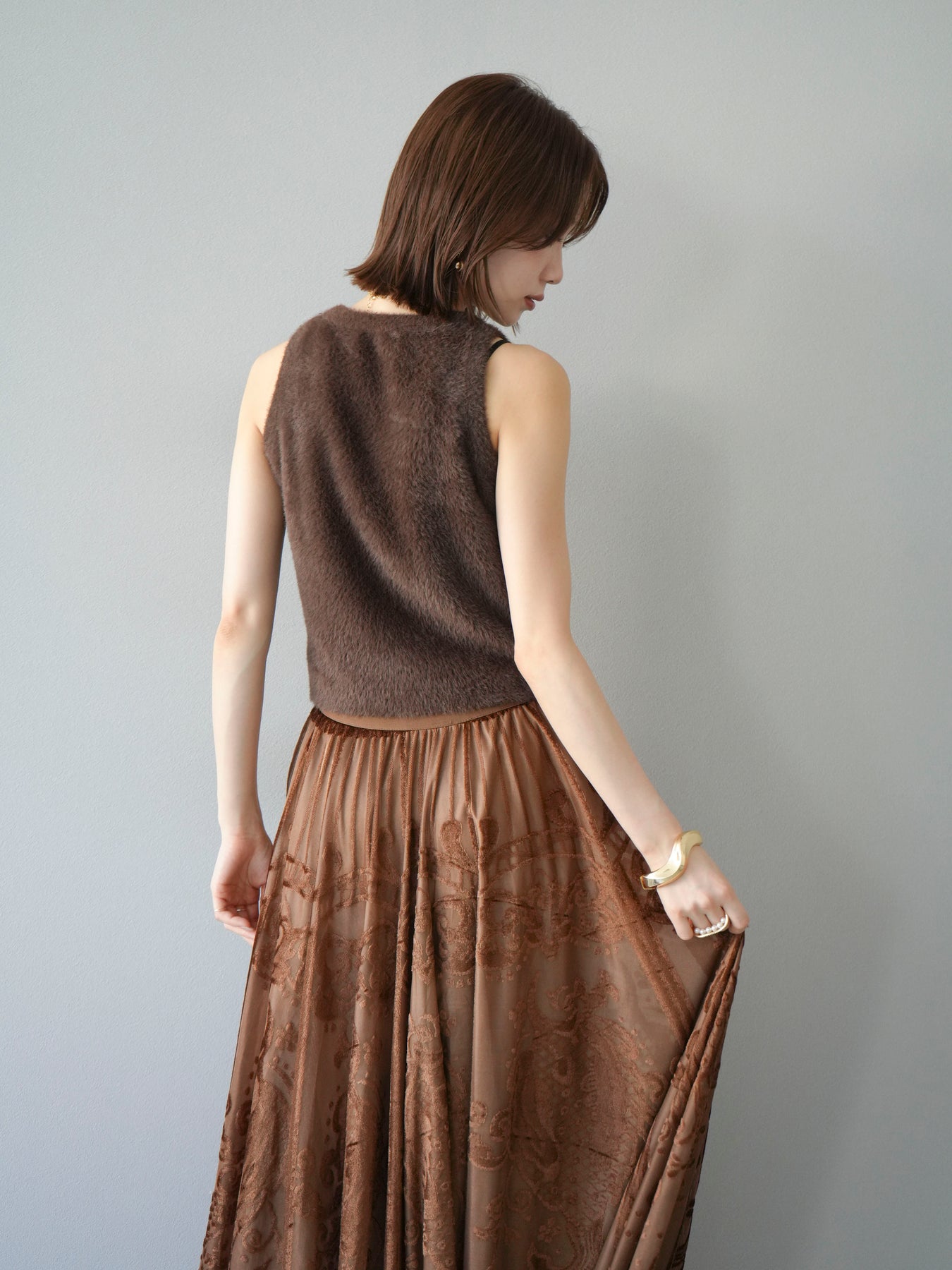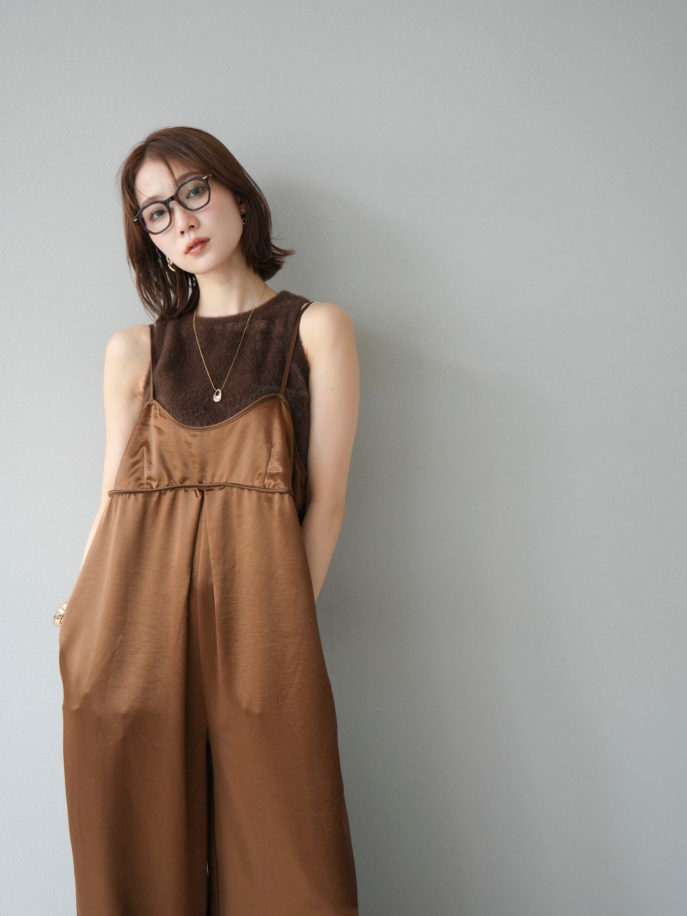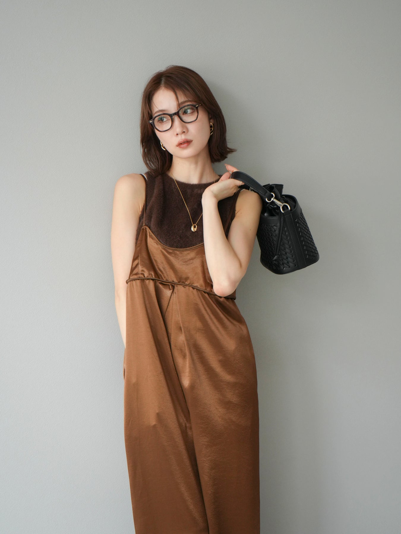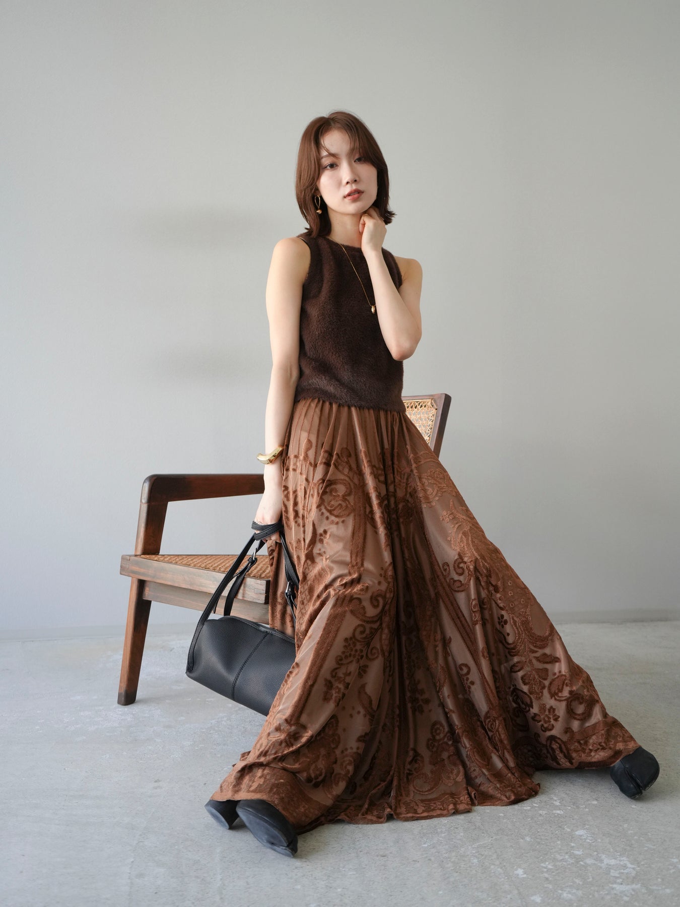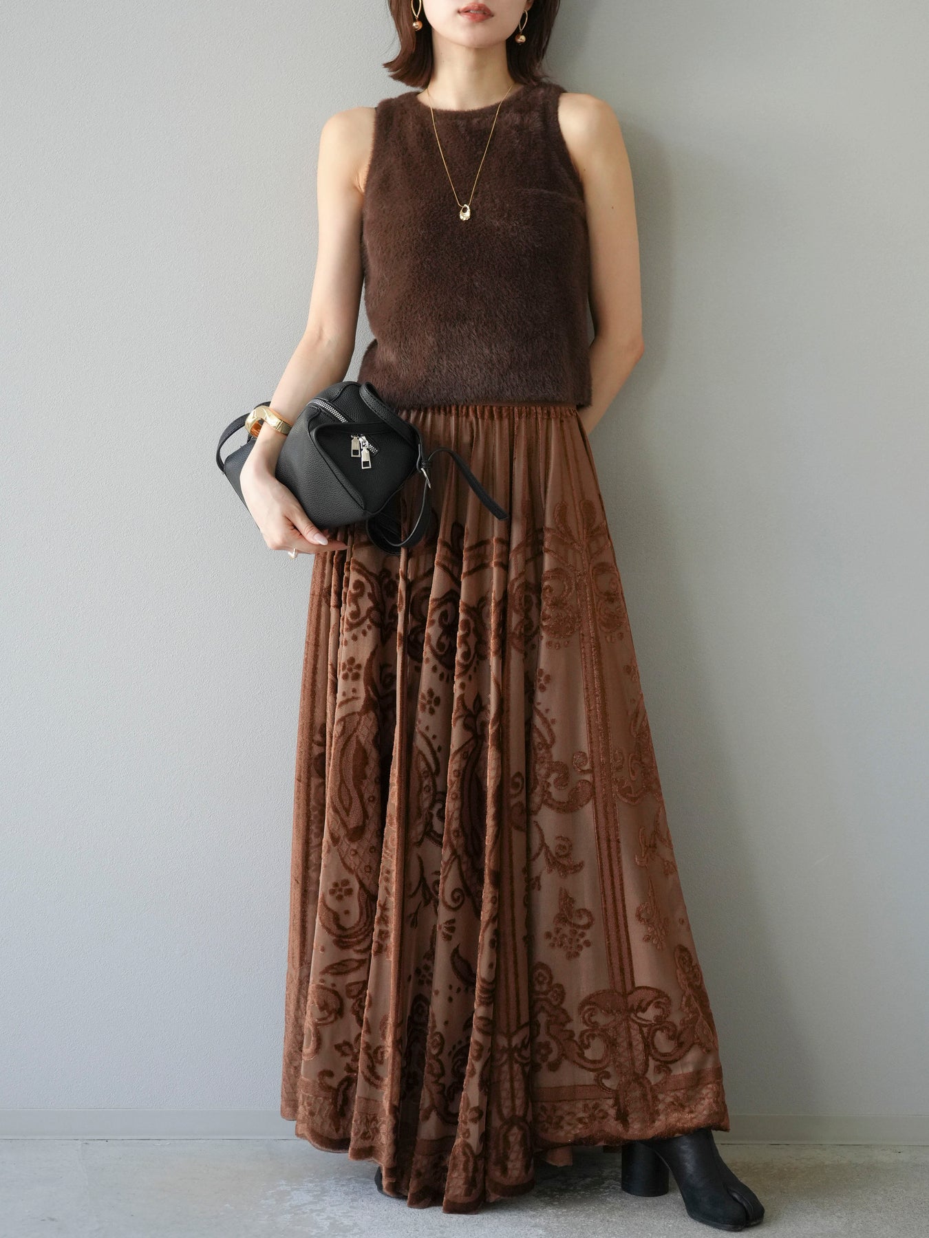 ふんわりとしたシャギー素材を使用したニットタンクトップ。毛足のある柔らかな風合いがシーズンムードを高め、1枚でもレイヤードでも着映えするアイテムです。程よくコンパクトなシルエットで、ボトムスとのバランスが取りやすく、スカートにもパンツにも好相性。シンプルながらも素材感で存在感を放ち、アクセサリーを合わせればより華やかな印象に。インナーにシャツやシアートップスを重ねることで、季節を問わずロングシーズン活躍します。 ※ボトムス、キャミソール(インナー)以外の商品は一律でインナーは付属していません。