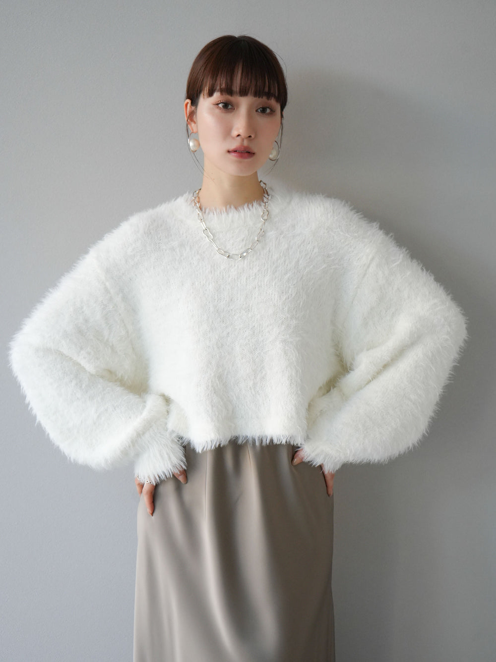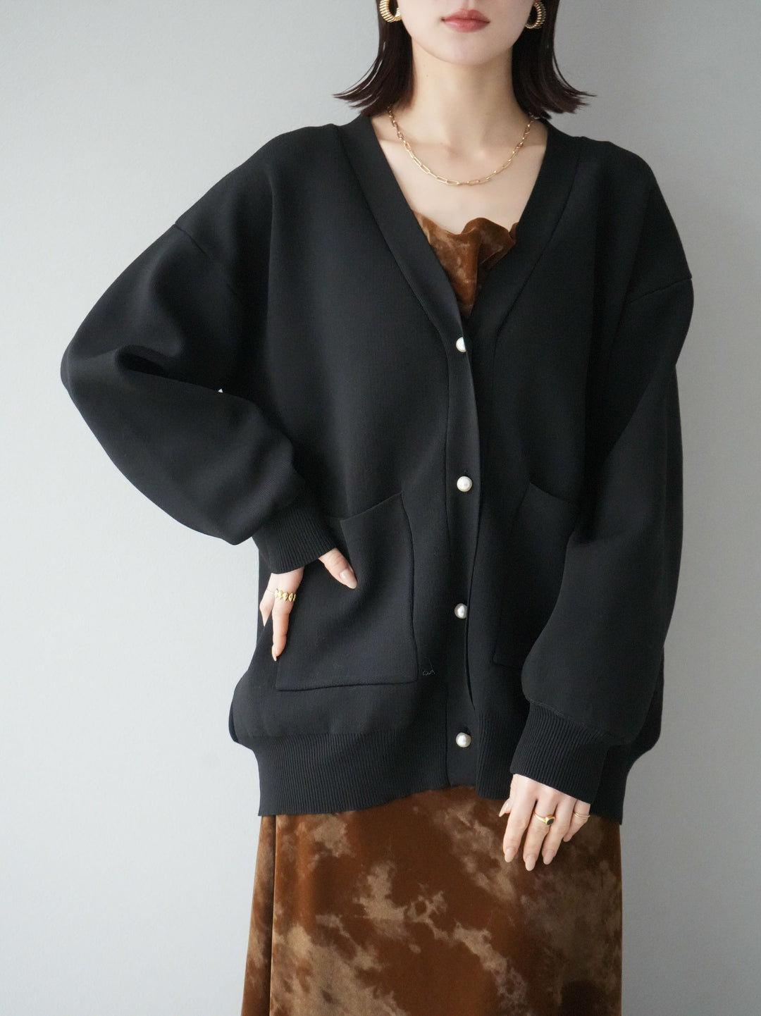 [予約]ボリュームスリーブボタンニットカーディガン/ベージュ