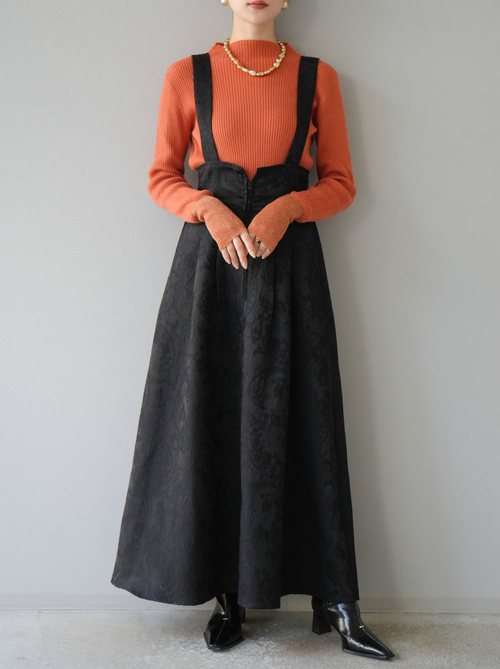 [予約]ペイズリージャガード2WAYフレアジャンパースカート/ブラック