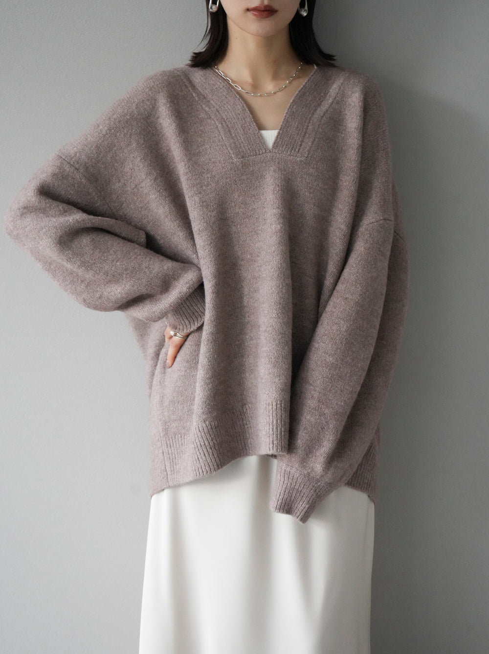 [予約]カーブVネックニットプルオーバー/グレージュ