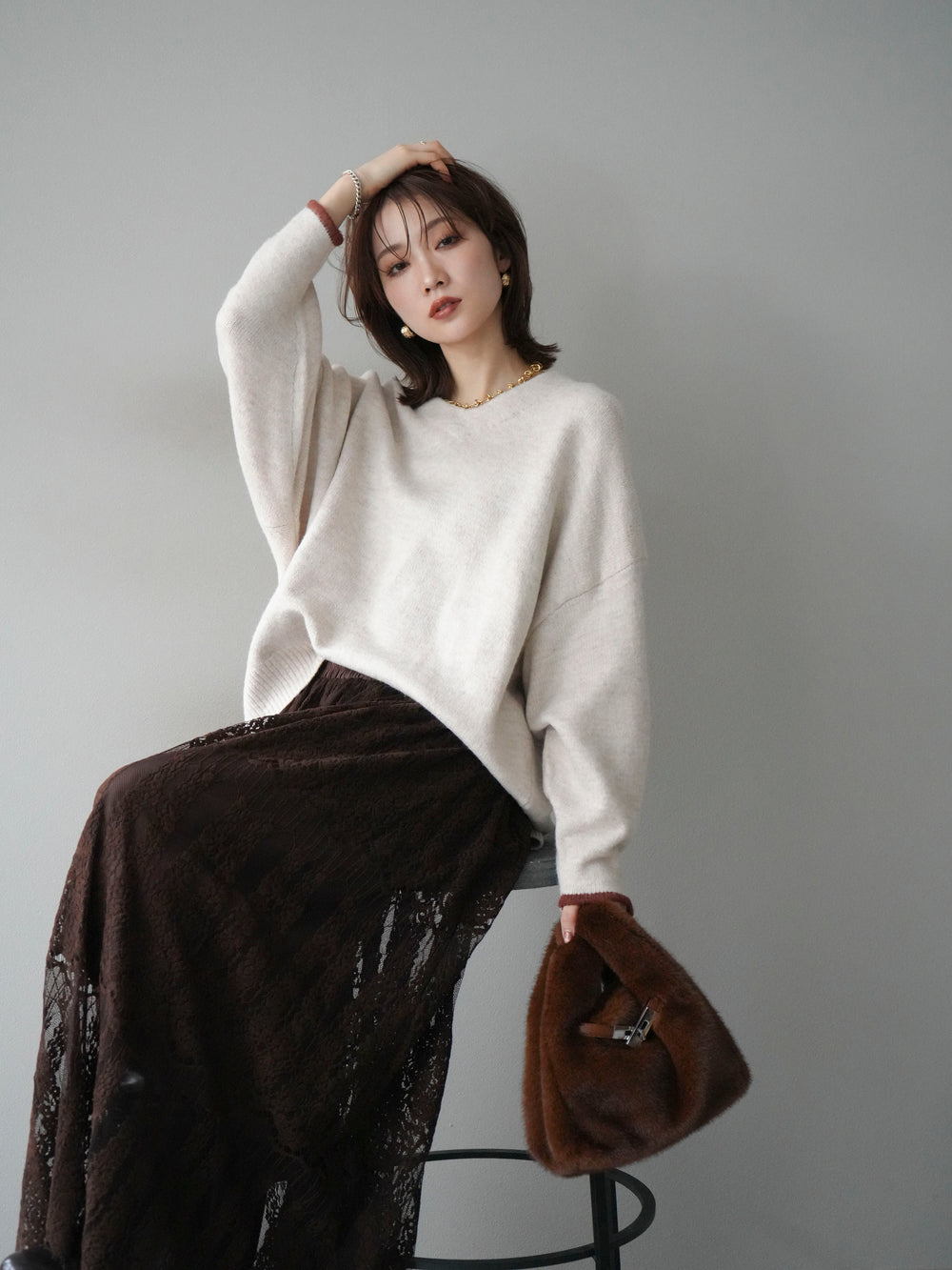 [予約]サイドスリットオーバーニットプルオーバー/オートミール