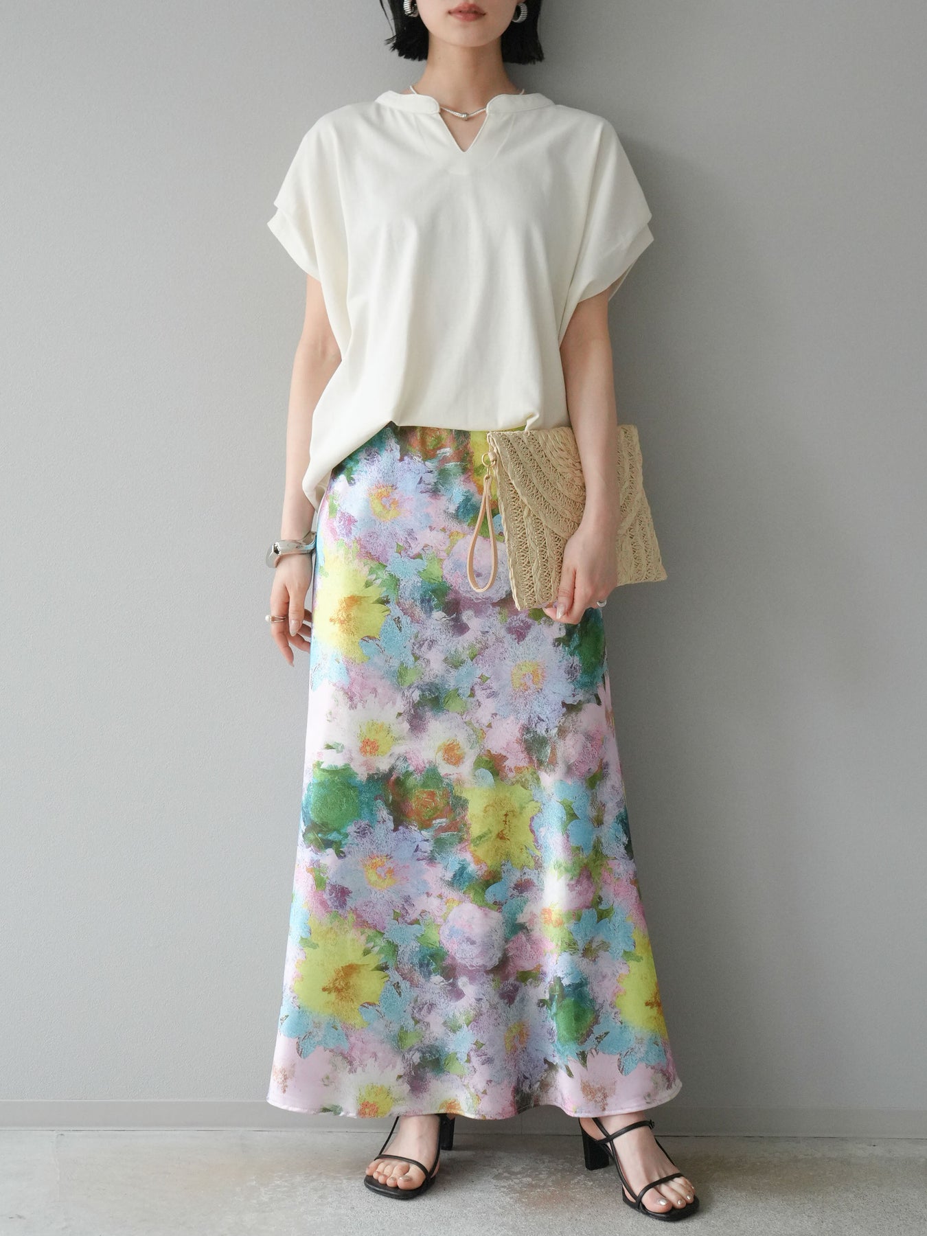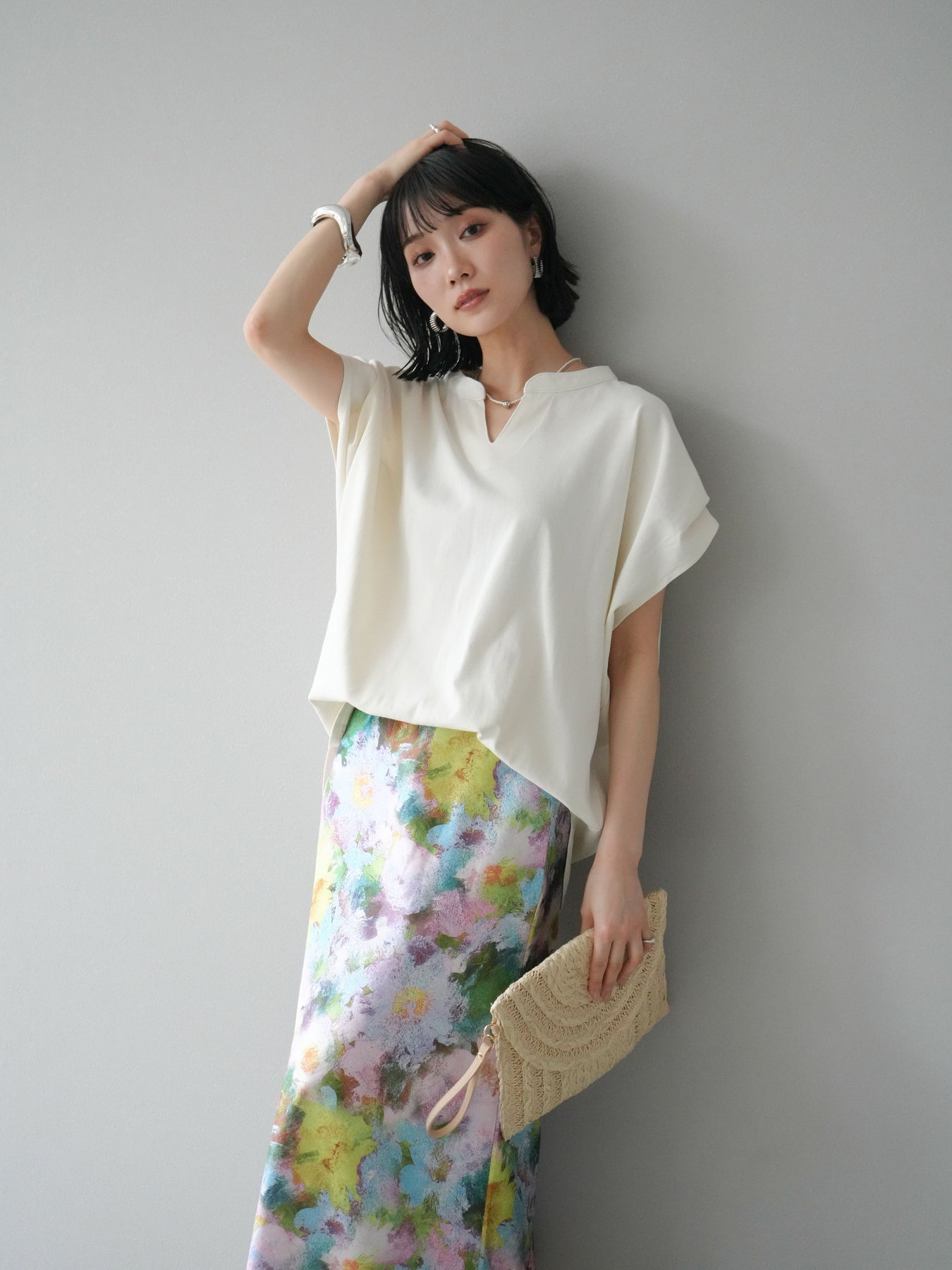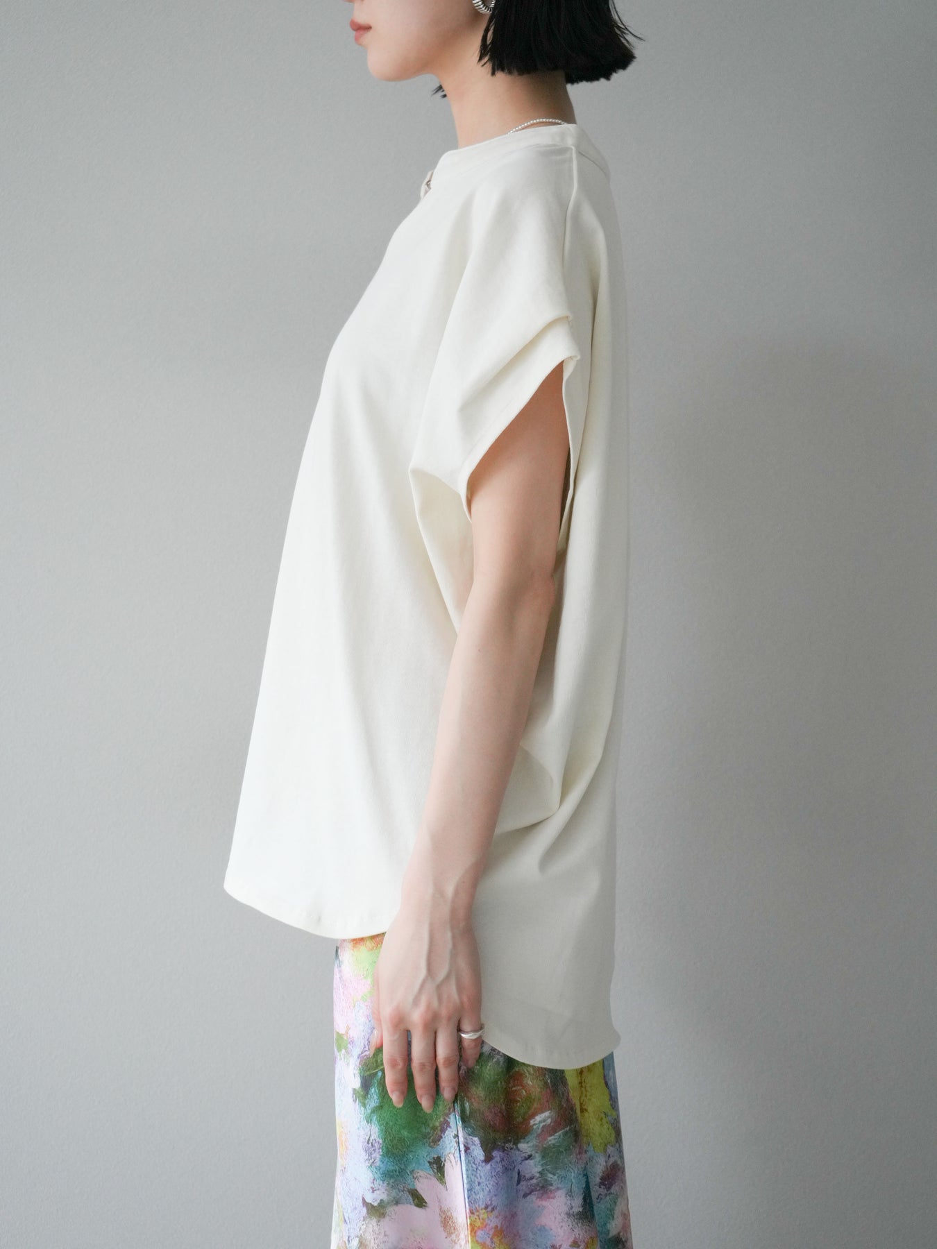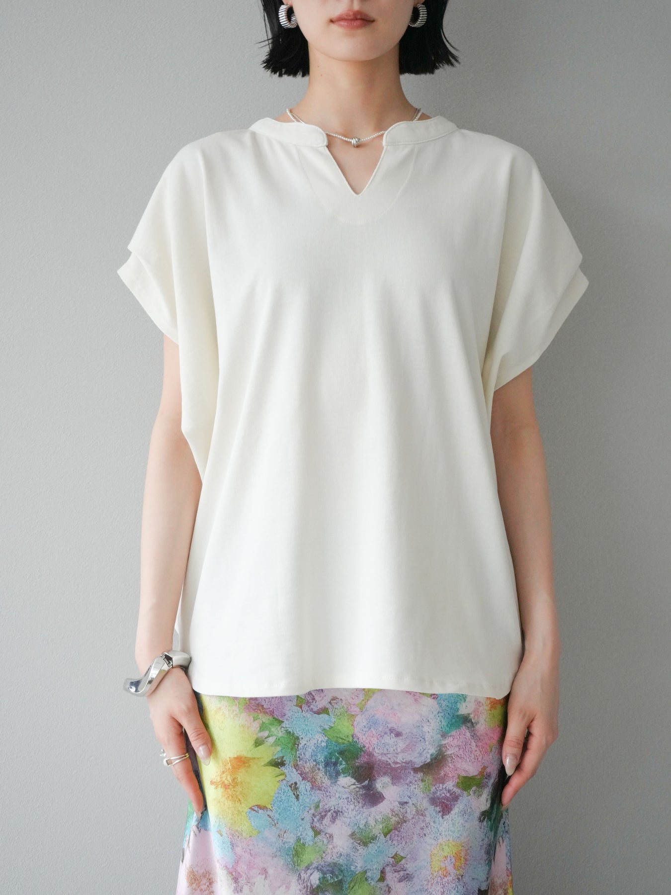 [予約]キーネックドルマンルーズコットンTシャツ/アイボリー