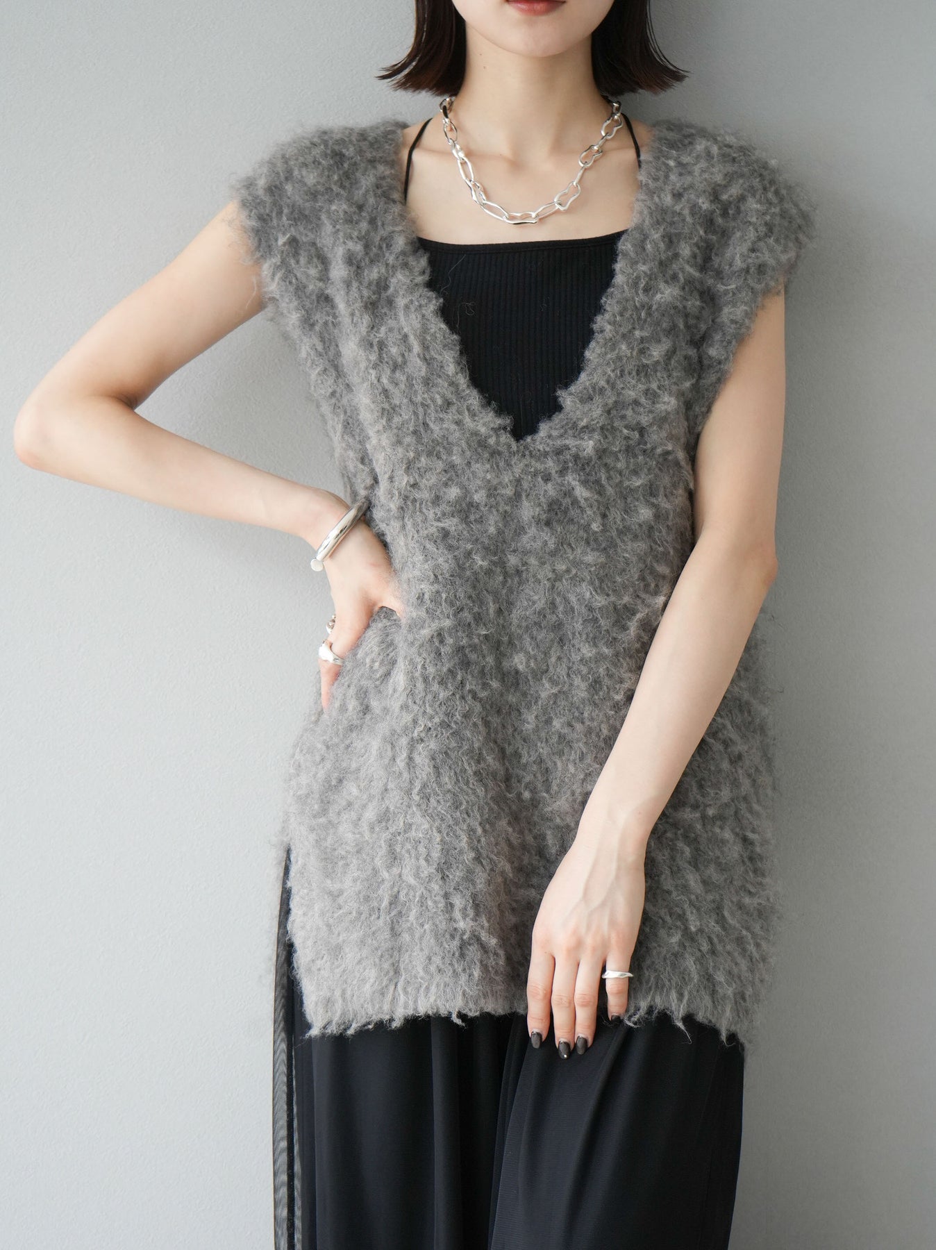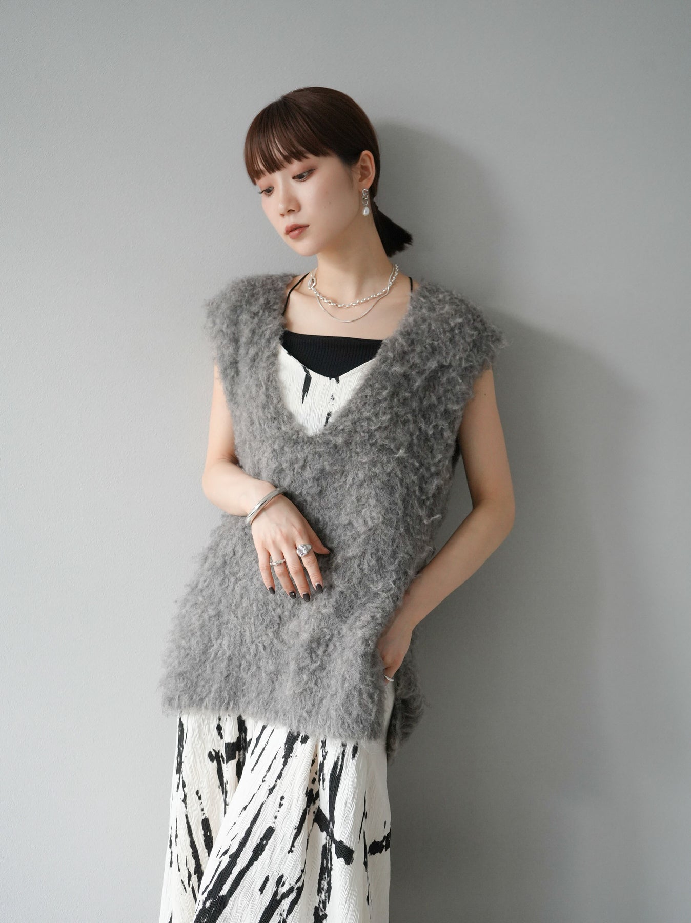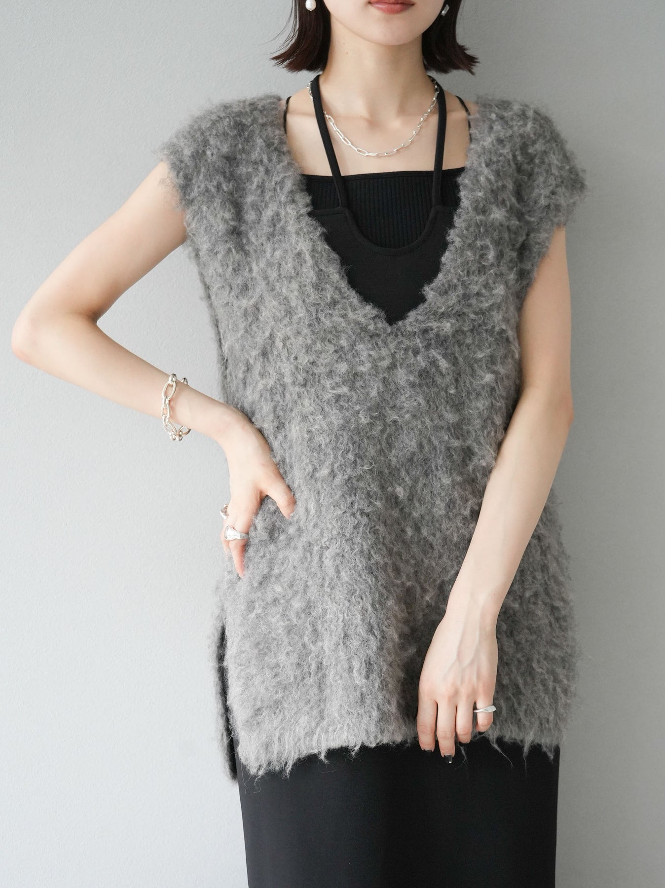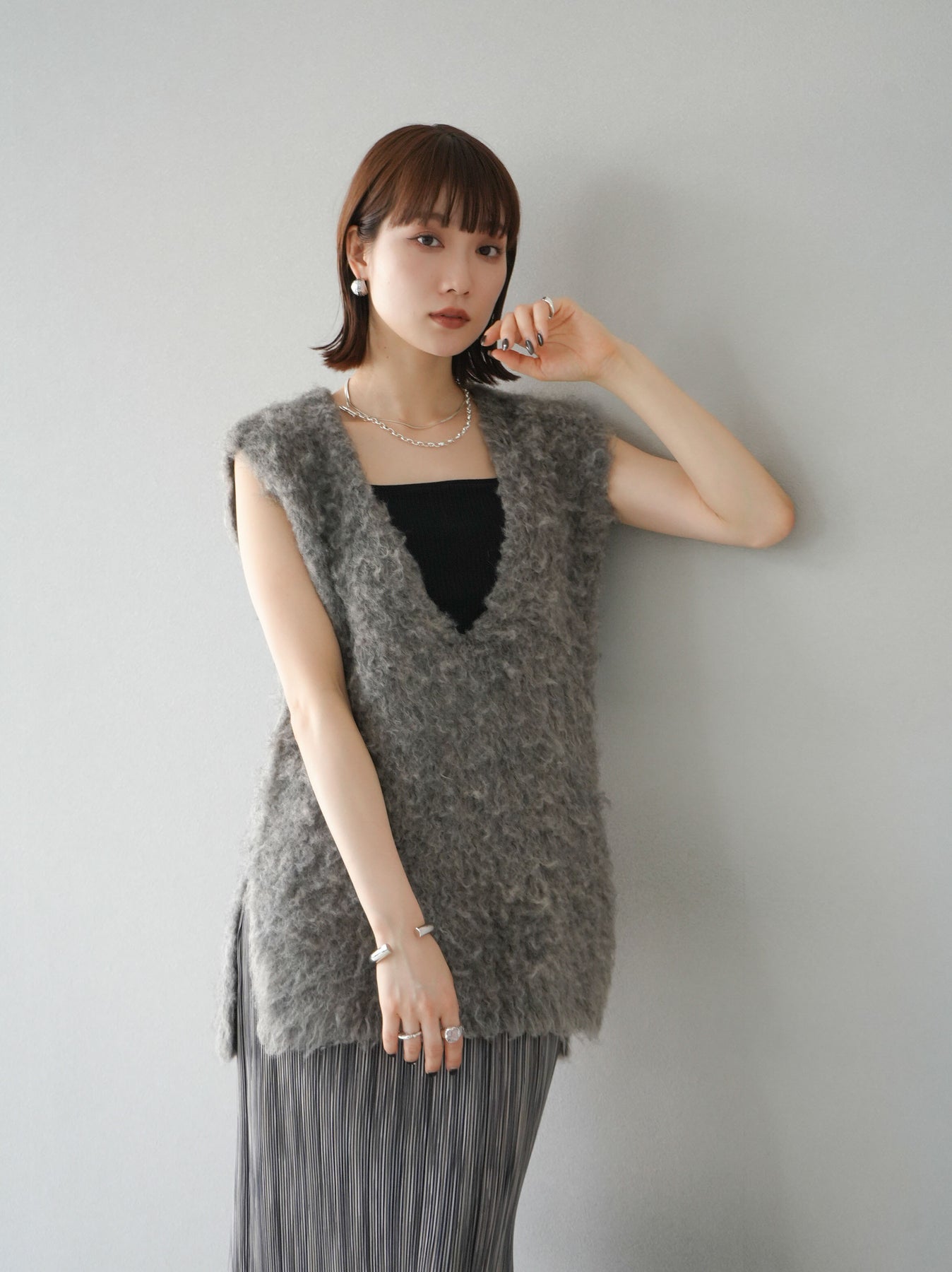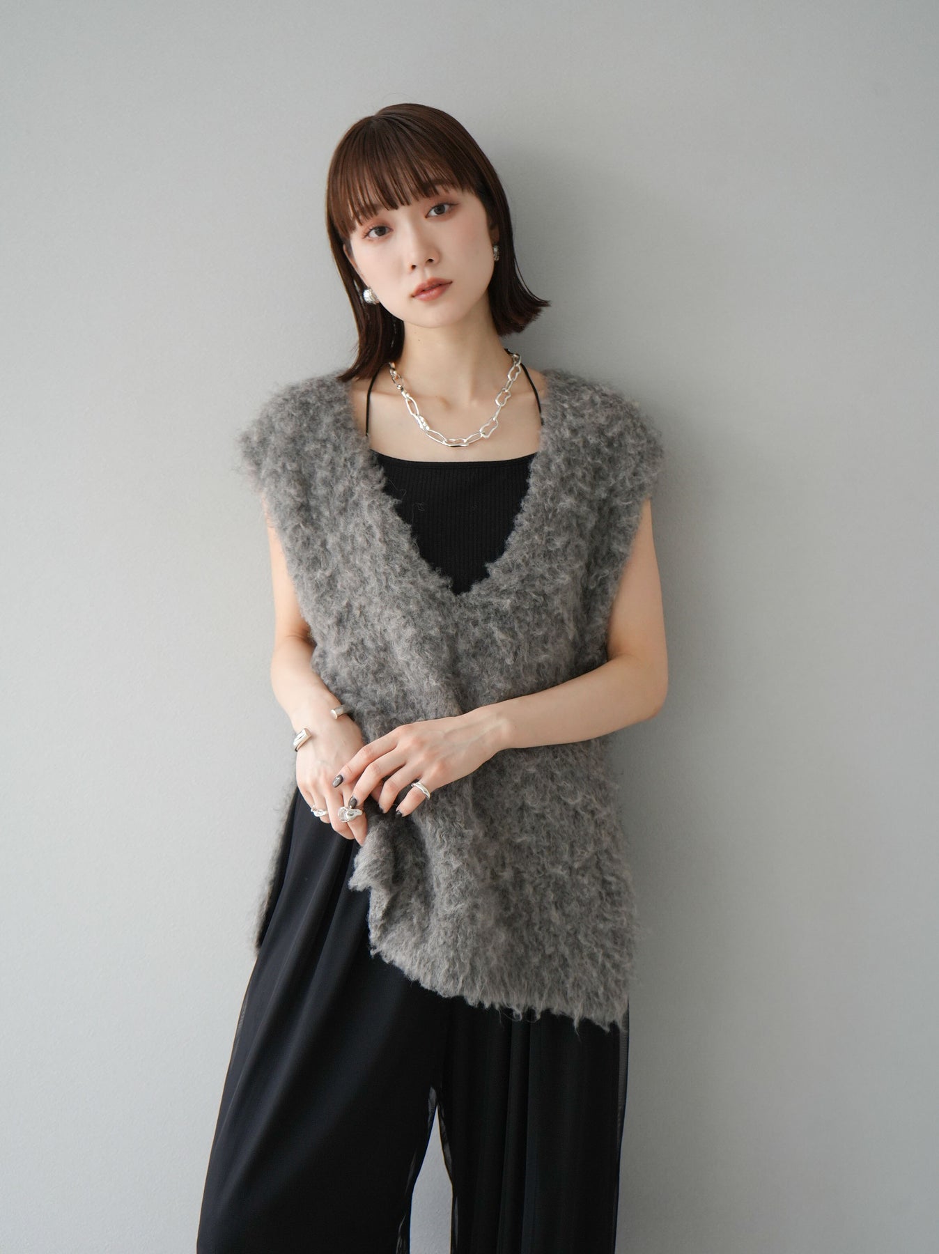 トレンド感あふれるウール混ミックスヤーンニットベストは、独自のテクスチャーとカラーリングが魅力。ルーズなシルエットでリラックス感があり、スタイリングに表情をプラスします。インナーに合わせやすく、季節の変わり目にも重宝する一枚です。 ※ボトムス、キャミソール(インナー)以外の商品は一律でインナーは付属していません。