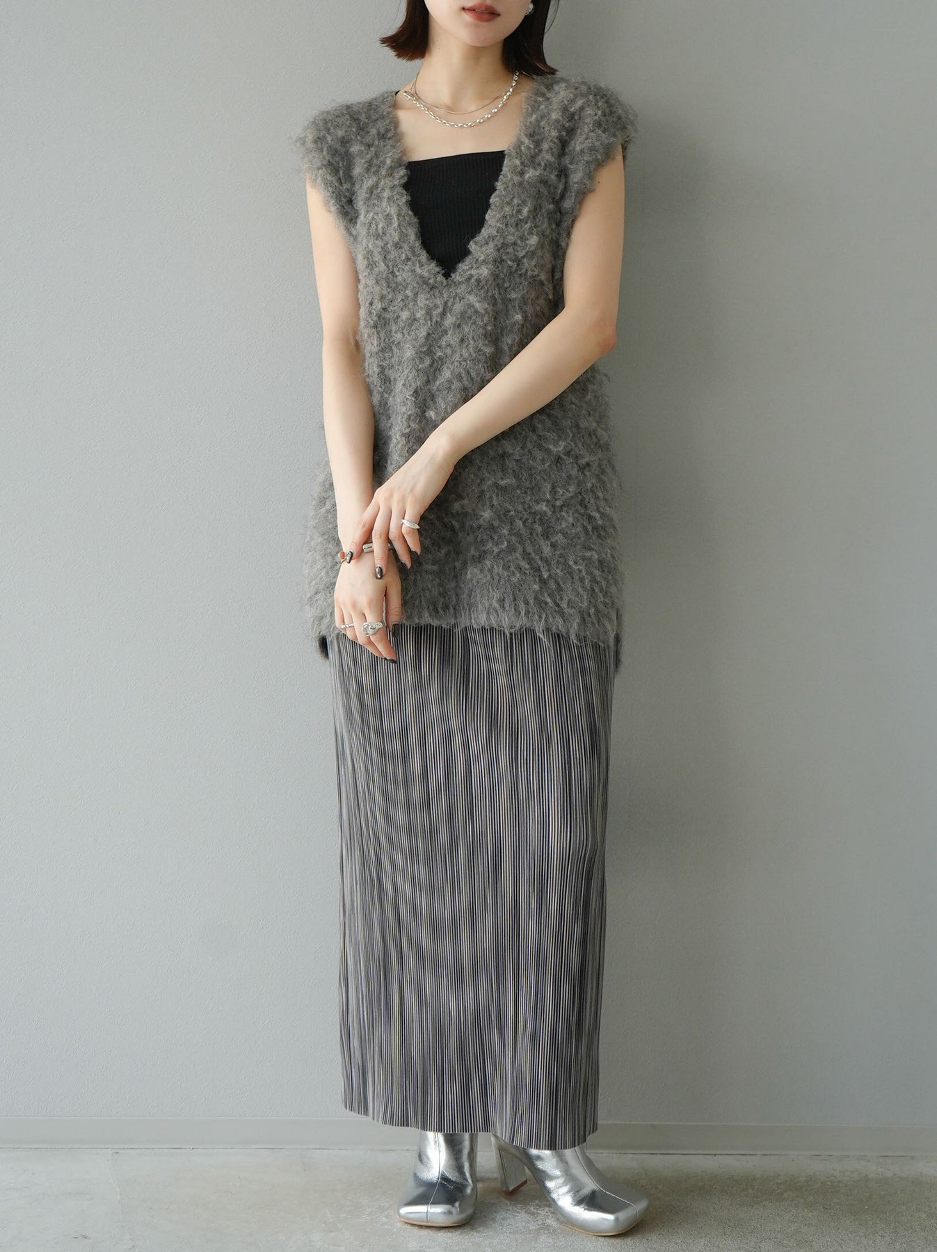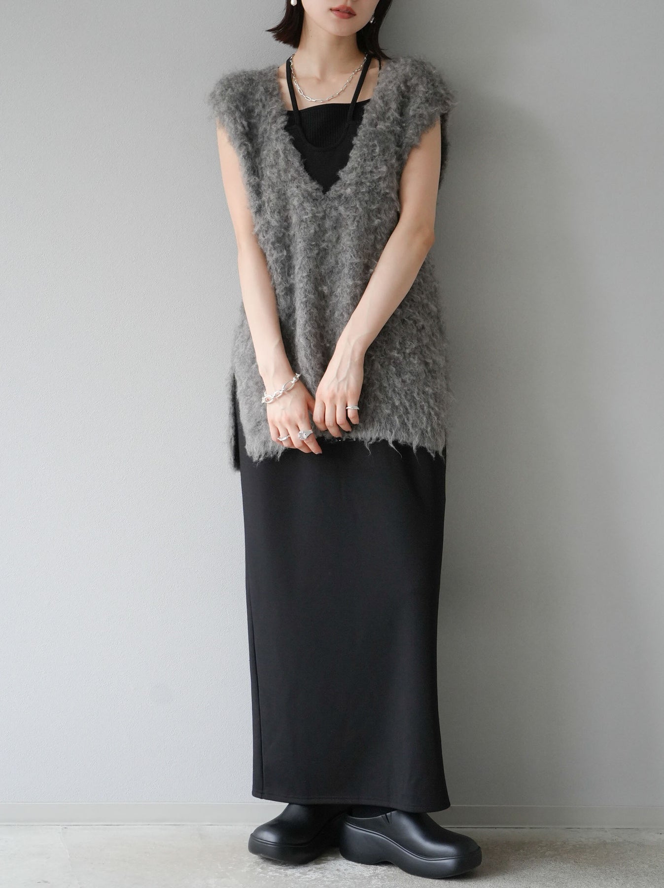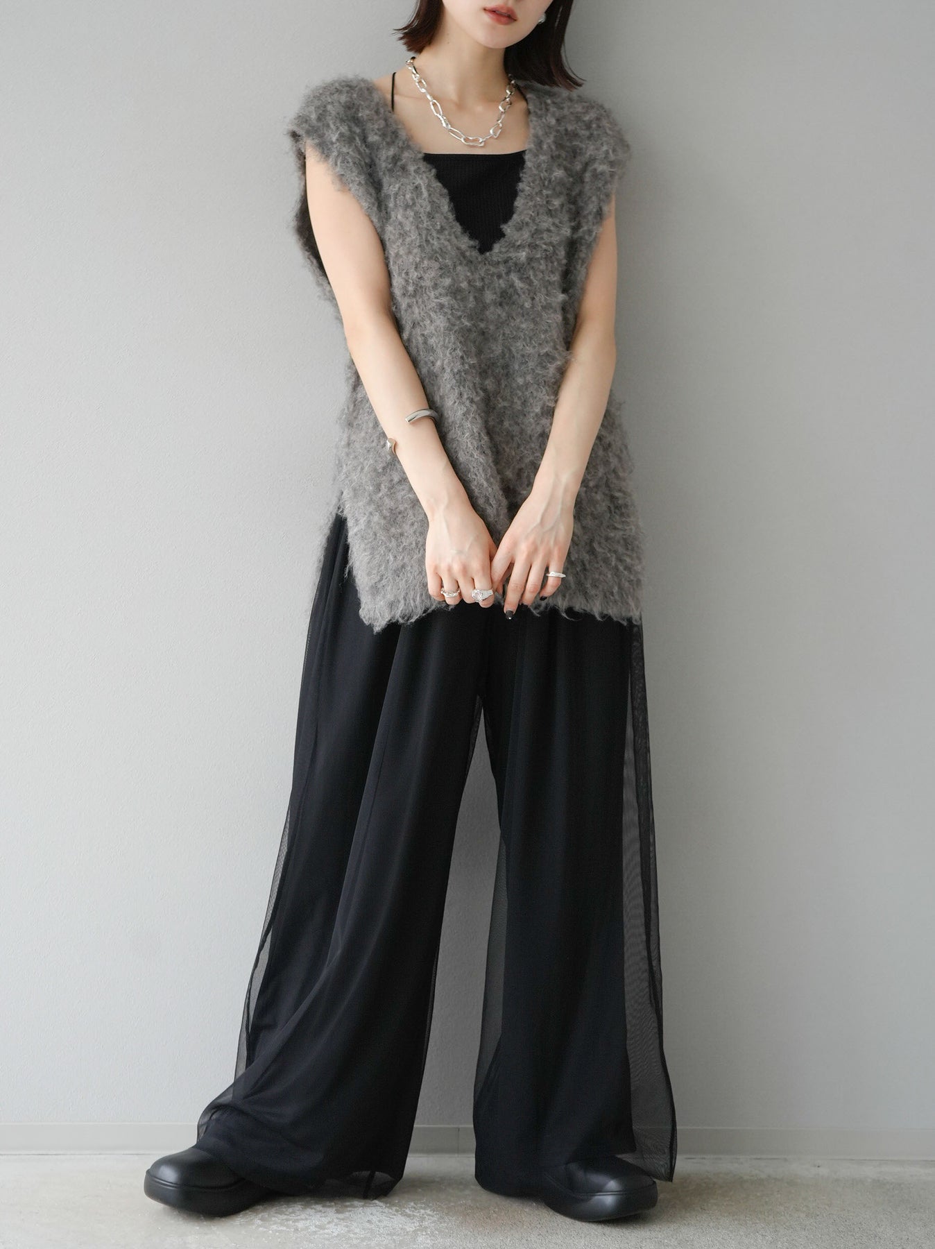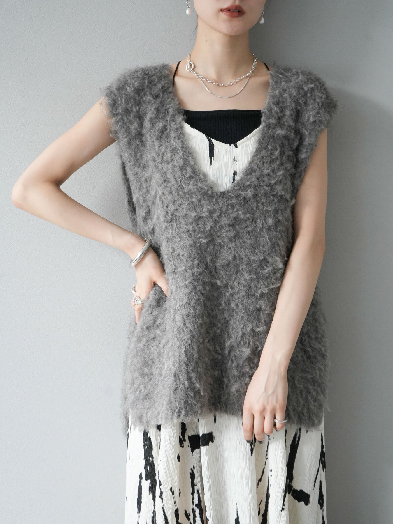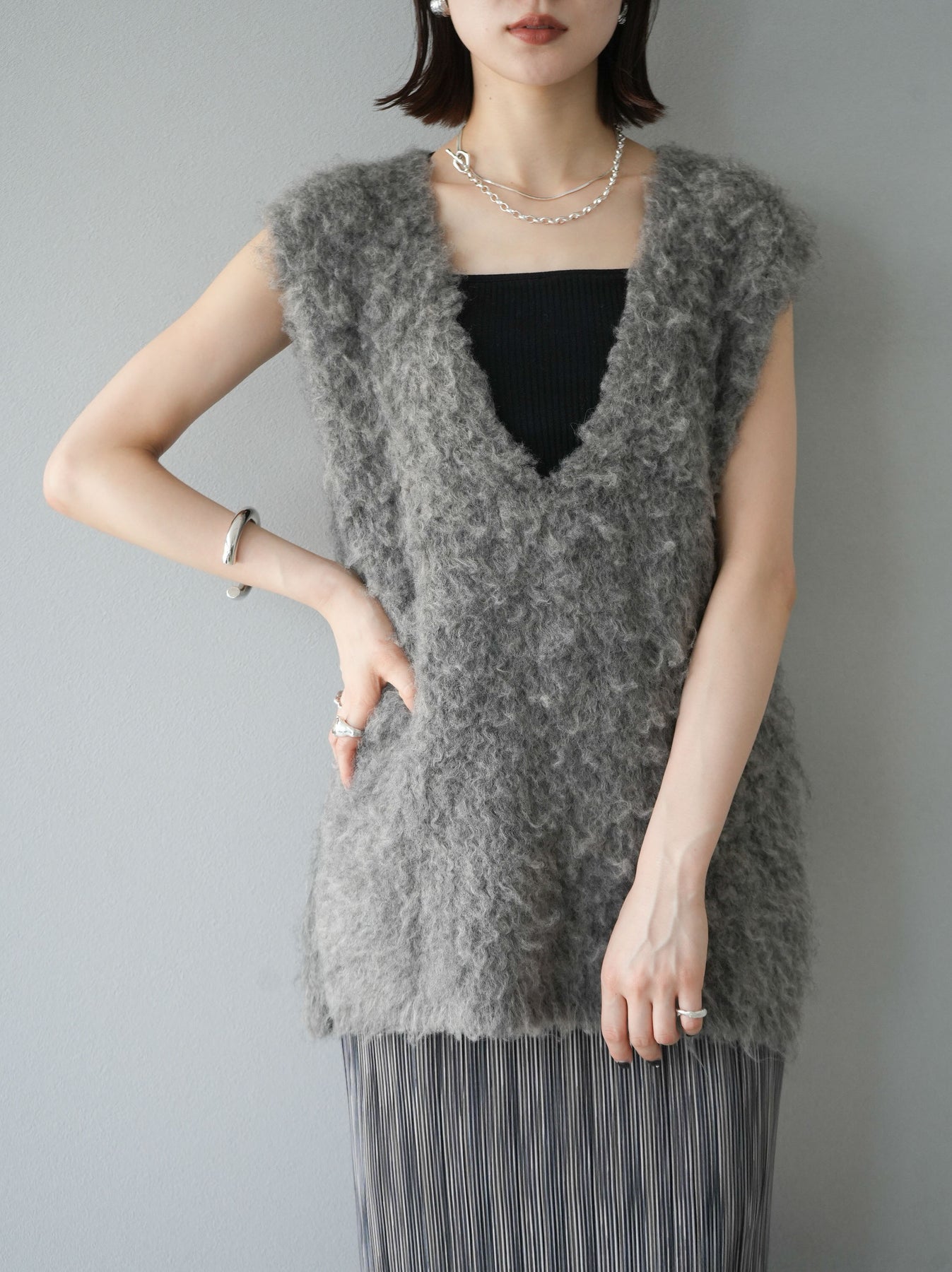 トレンド感あふれるウール混ミックスヤーンニットベストは、独自のテクスチャーとカラーリングが魅力。ルーズなシルエットでリラックス感があり、スタイリングに表情をプラスします。インナーに合わせやすく、季節の変わり目にも重宝する一枚です。 ※ボトムス、キャミソール(インナー)以外の商品は一律でインナーは付属していません。