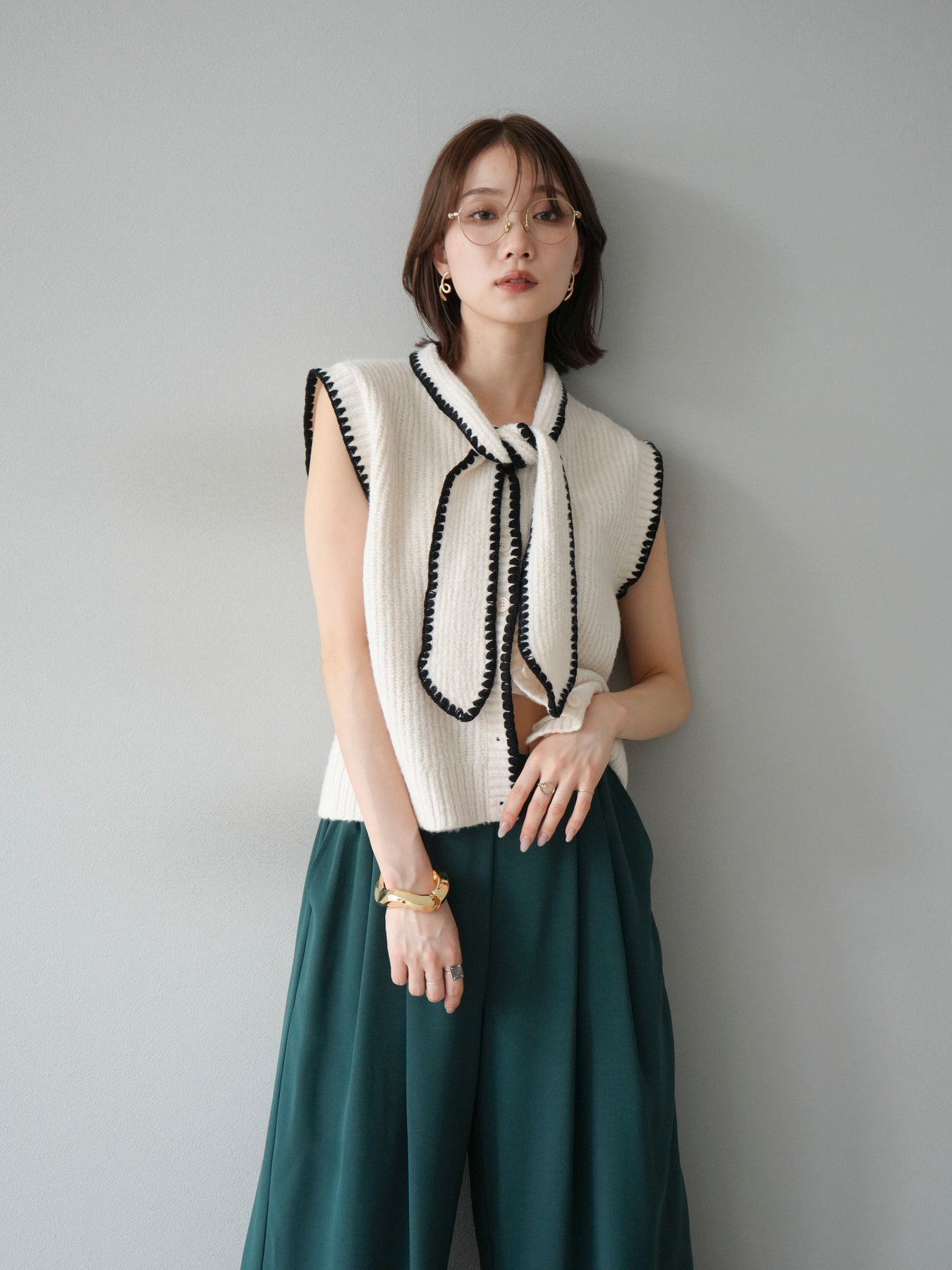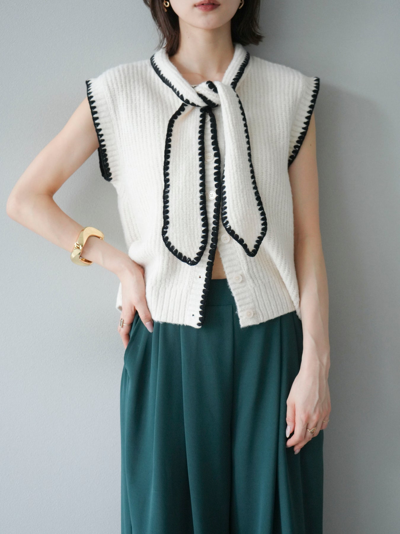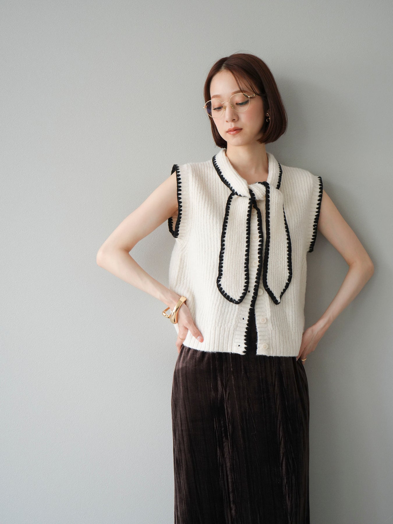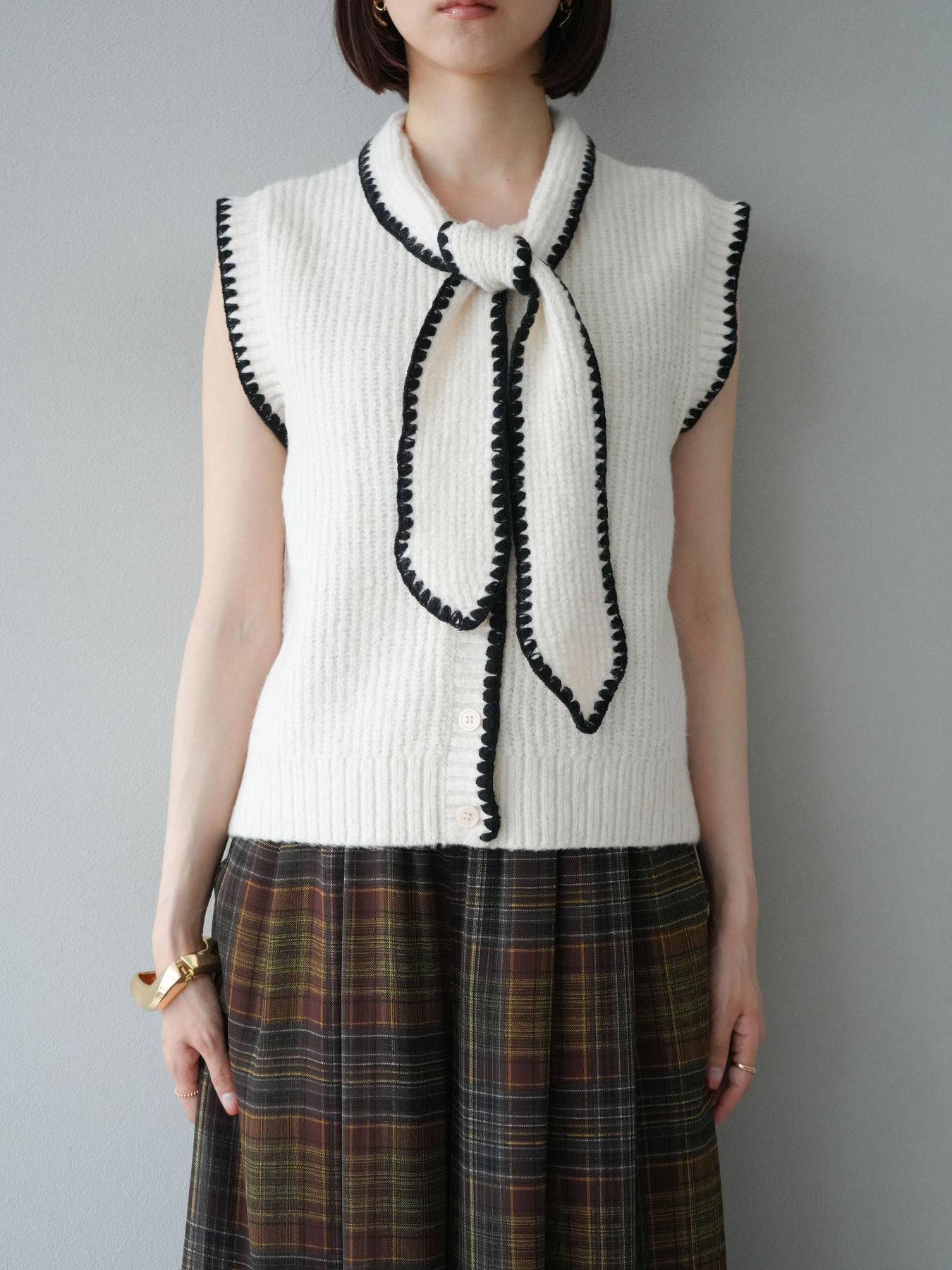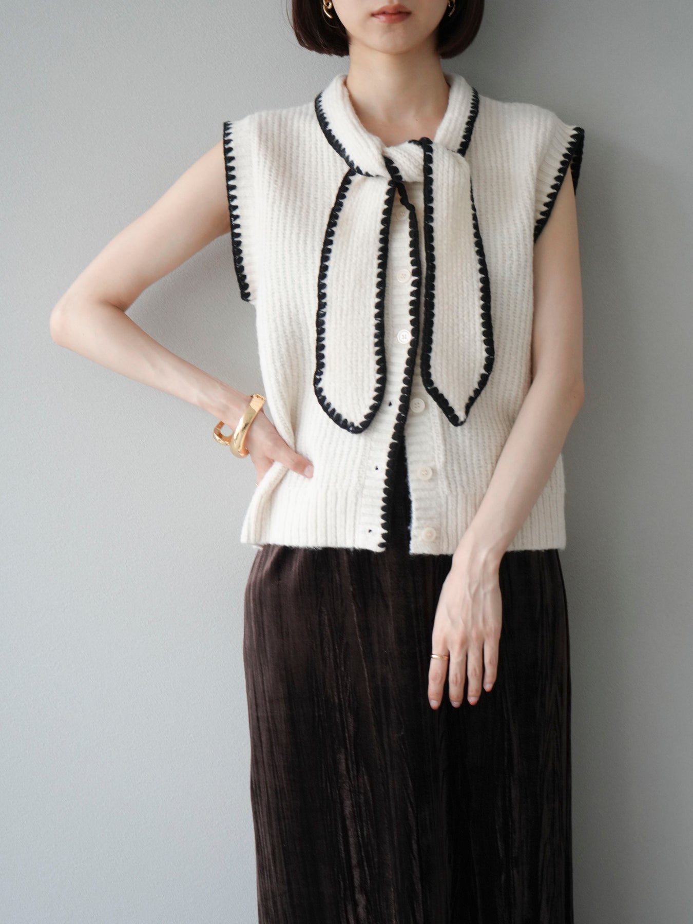 [予約]ステッチデザインボウタイニットベスト/アイボリー
