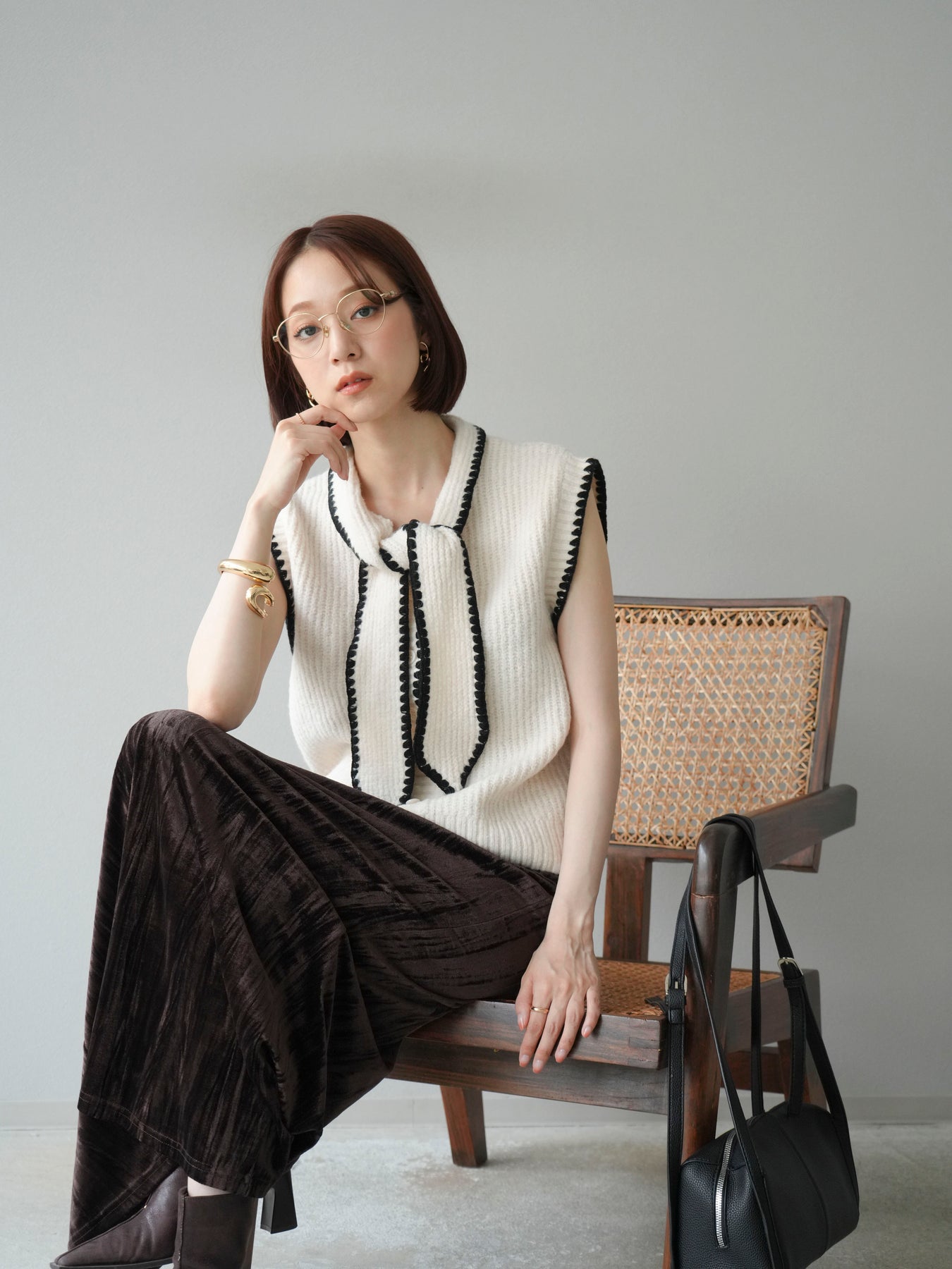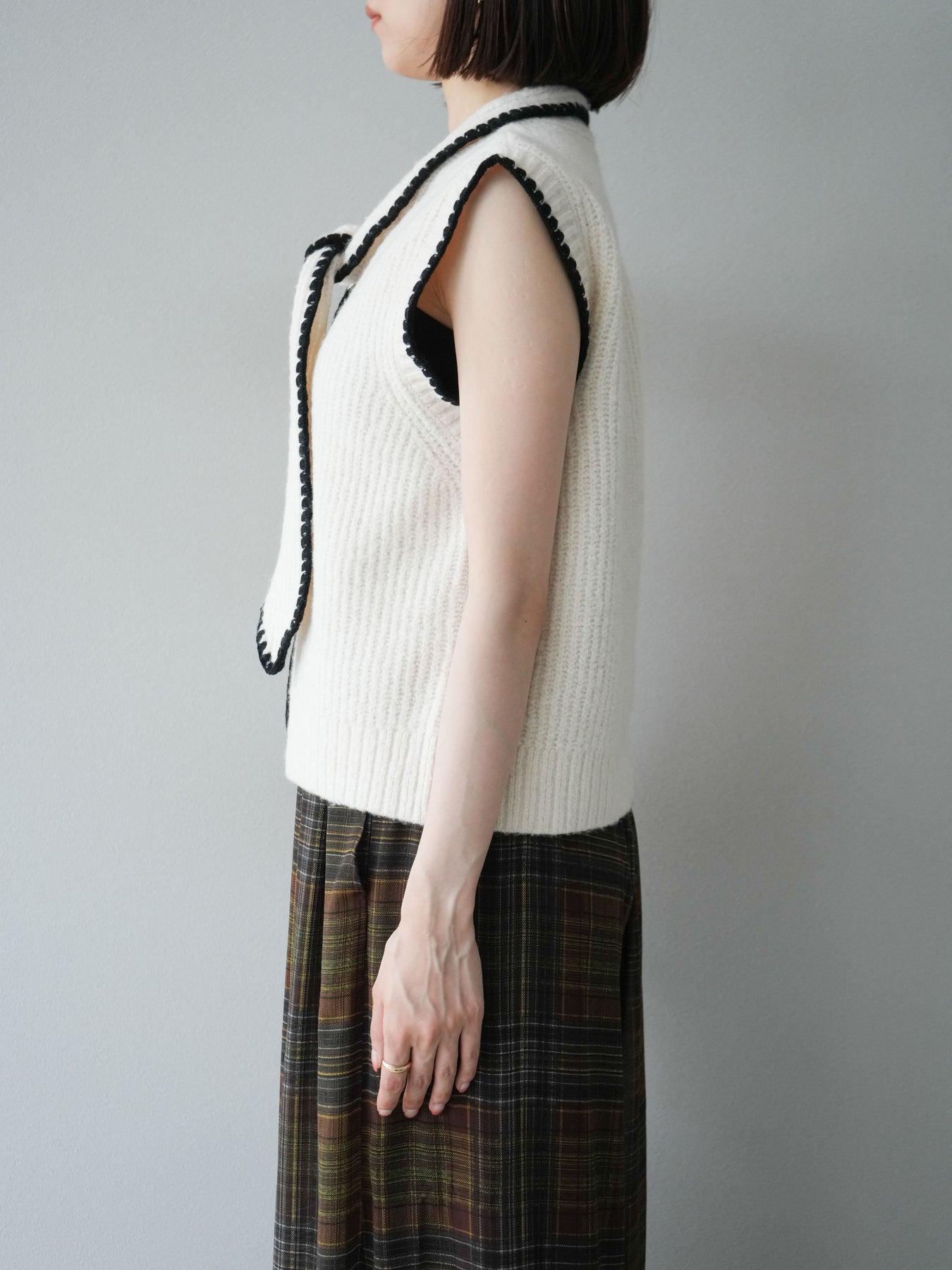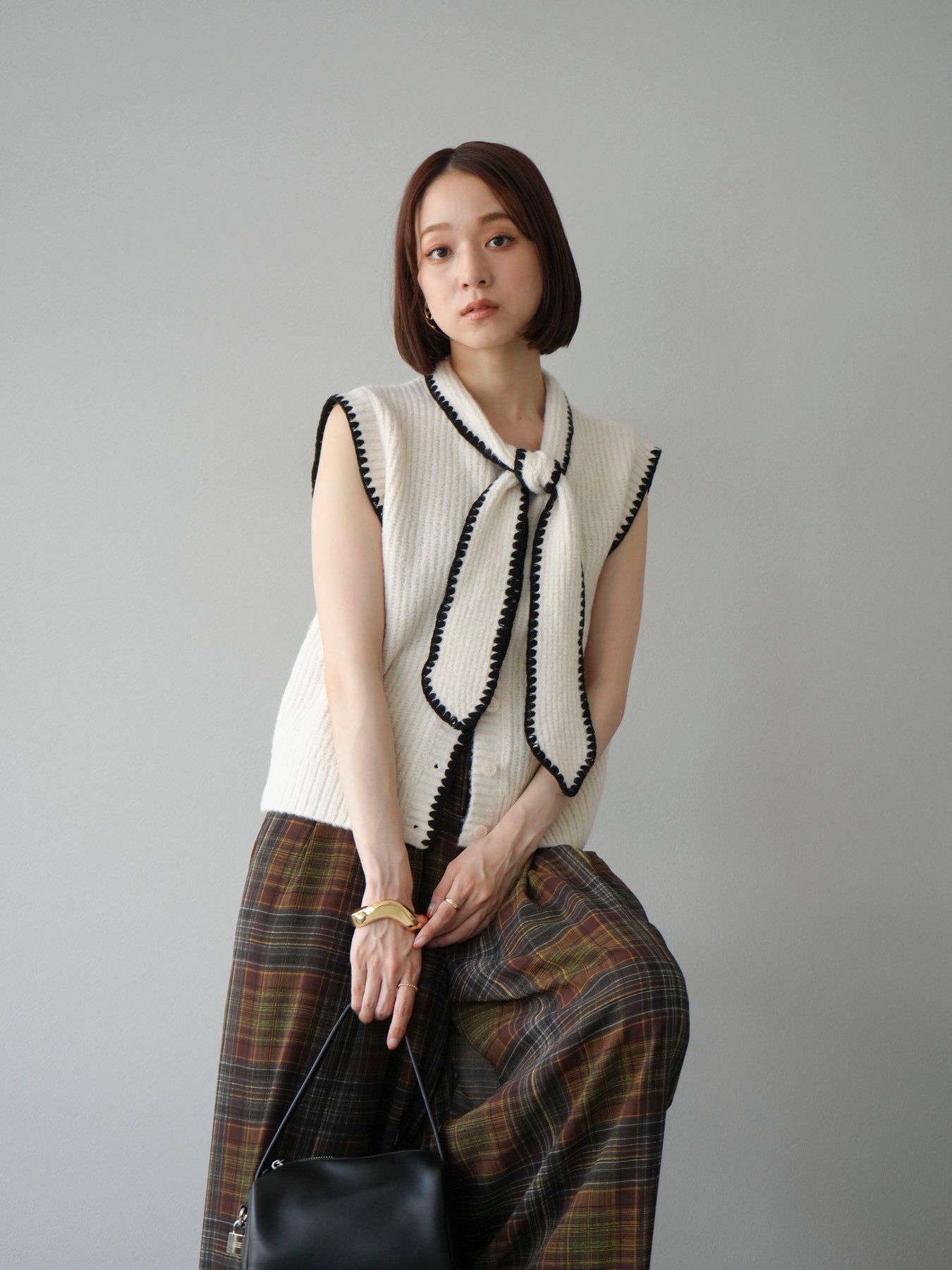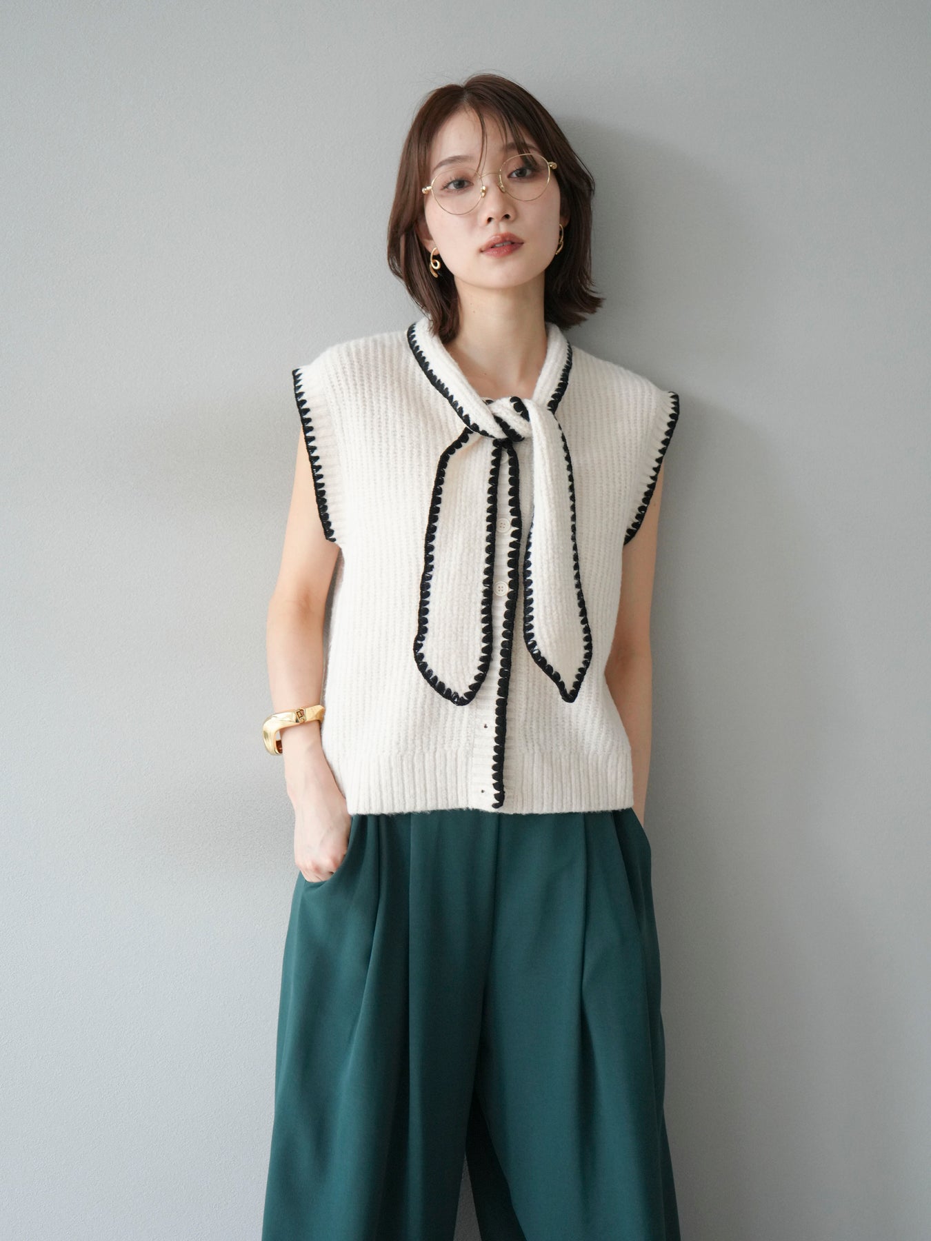 [予約]ステッチデザインボウタイニットベスト/アイボリー