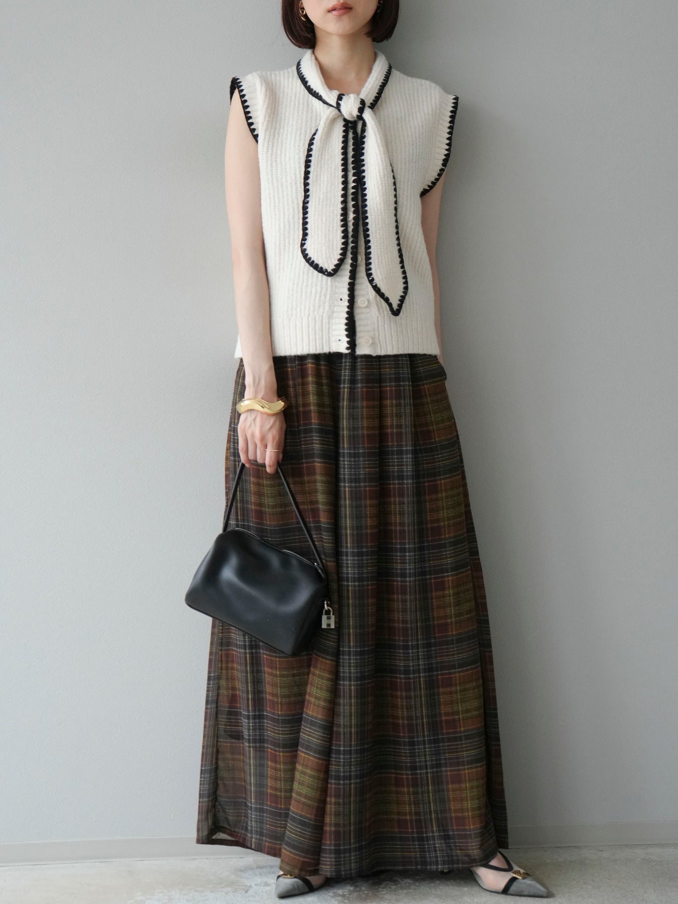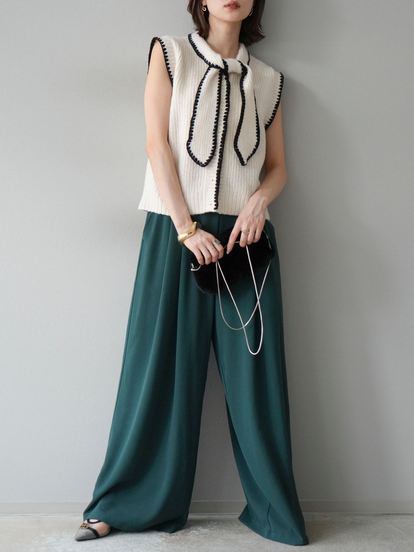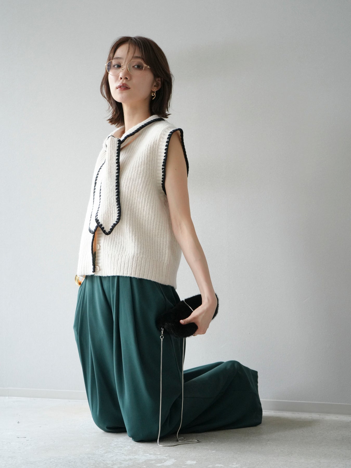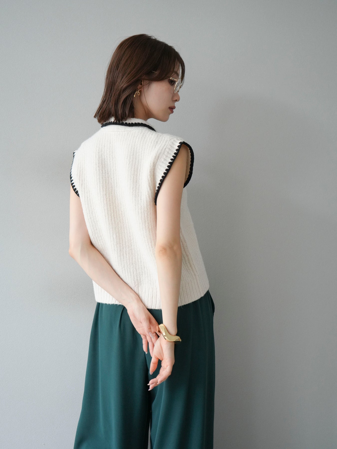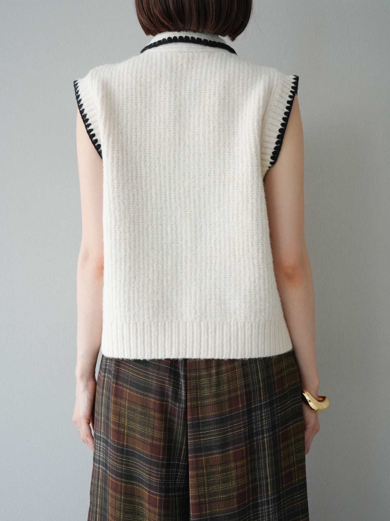 [予約]ステッチデザインボウタイニットベスト/アイボリー