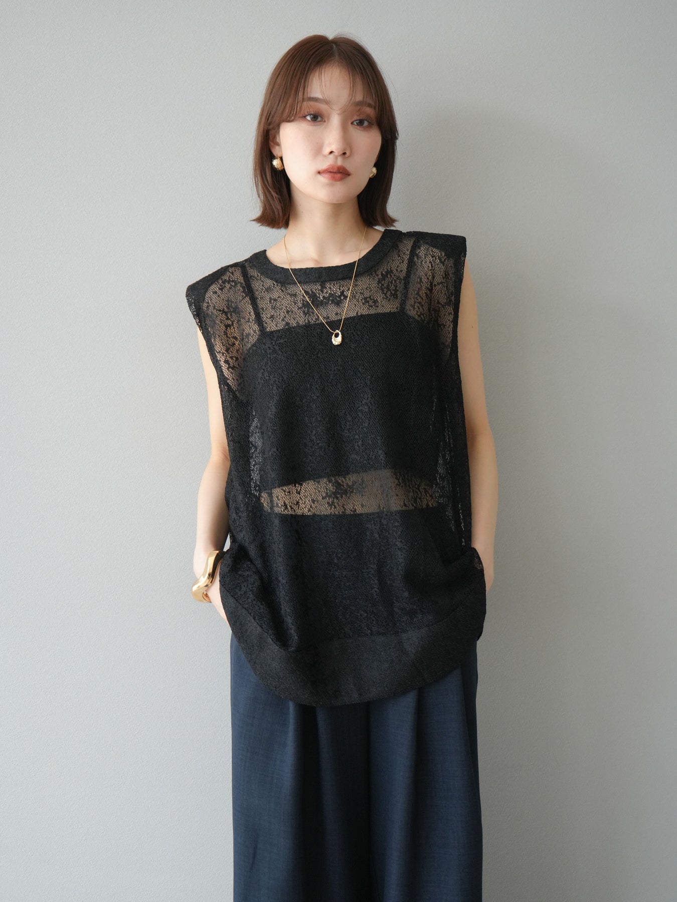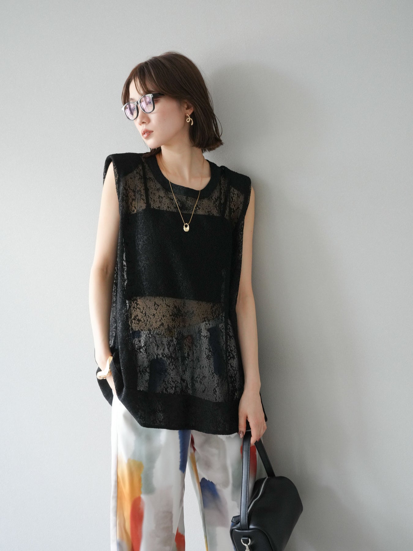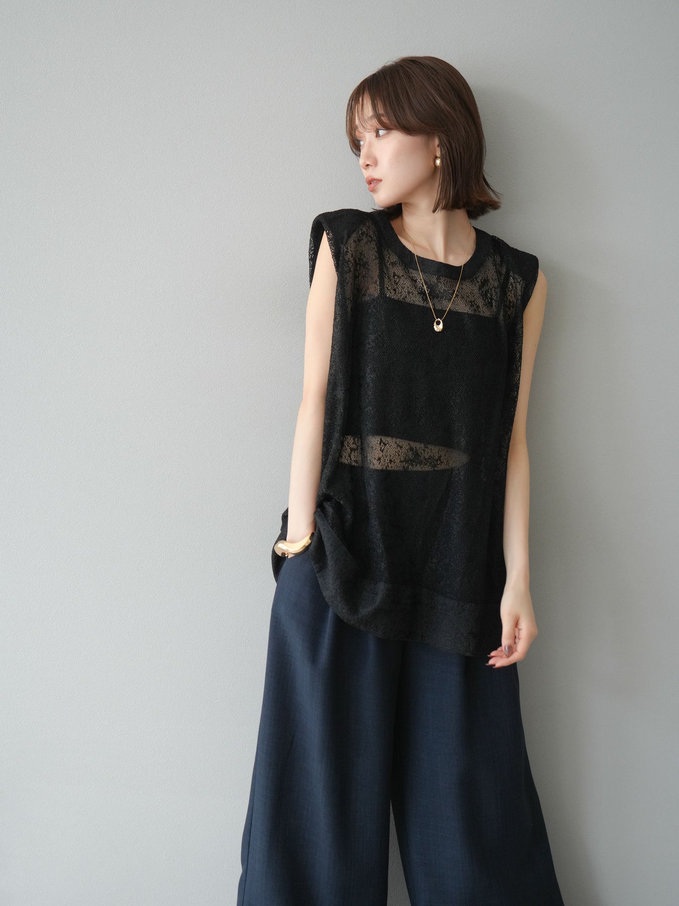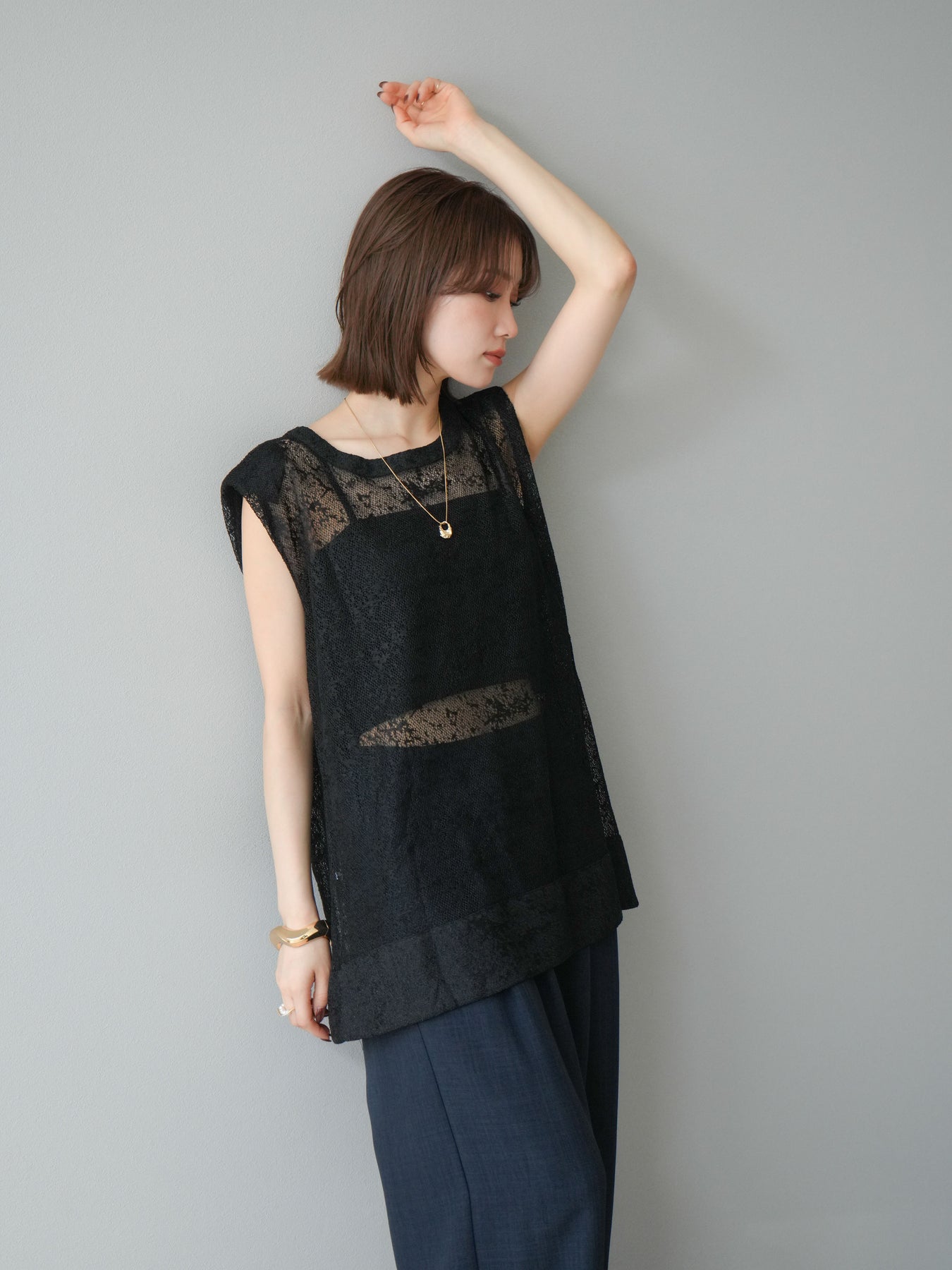 繊細なレースにラメ糸を織り交ぜた、華やかさと上品さを兼ね備えたシャイニープルオーバー。透け感のある軽やかな素材が、レイヤードスタイルに抜け感をプラス。長めの丈感で気になる腰まわりも自然にカバーしてくれます。カジュアルなパンツと合わせても女性らしい印象に仕上がる、着回し力の高い一枚です。 ※ボトムス、キャミソール(インナー)以外の商品は一律でインナーは付属していません。