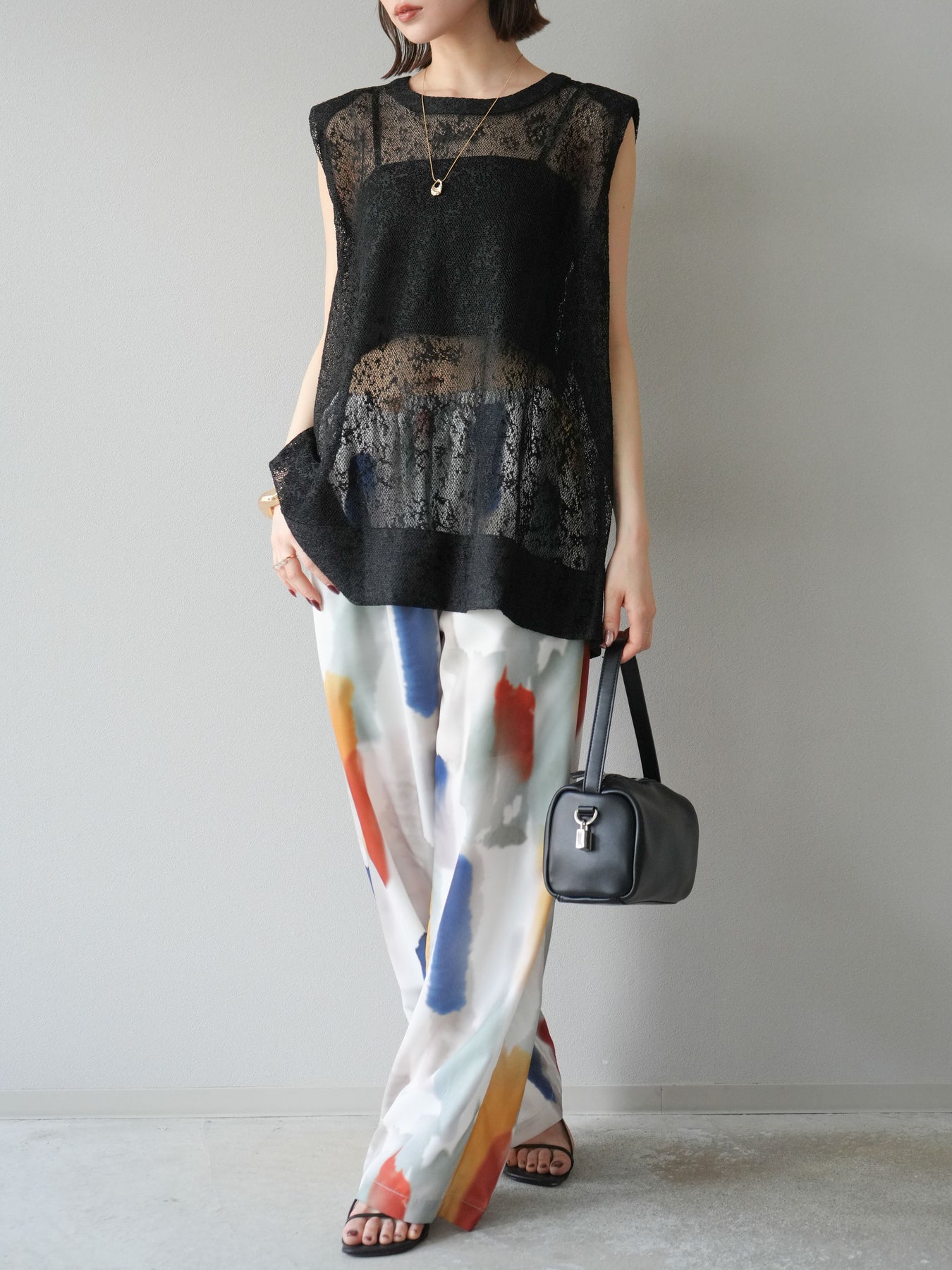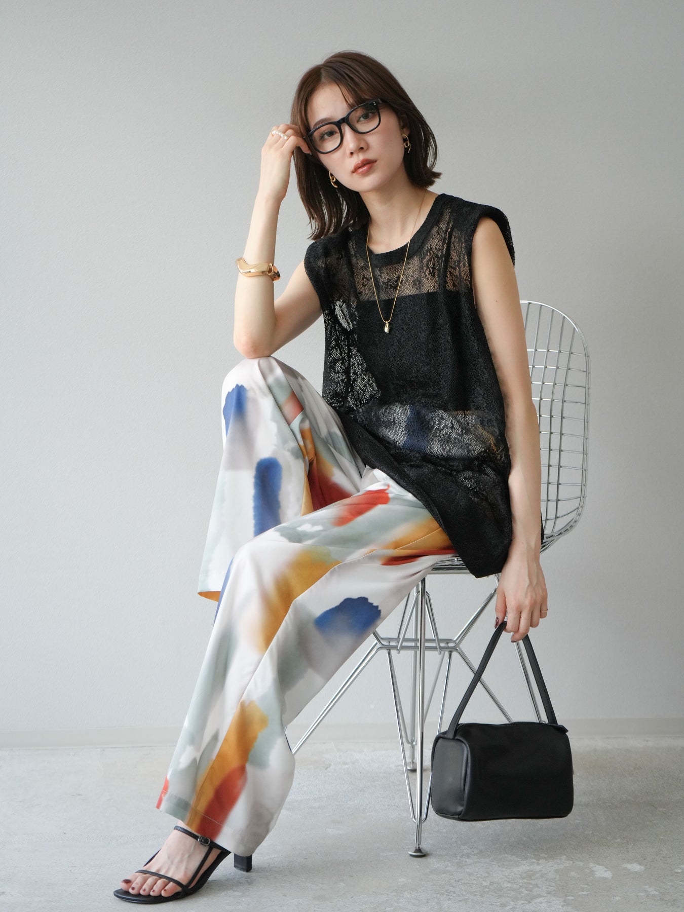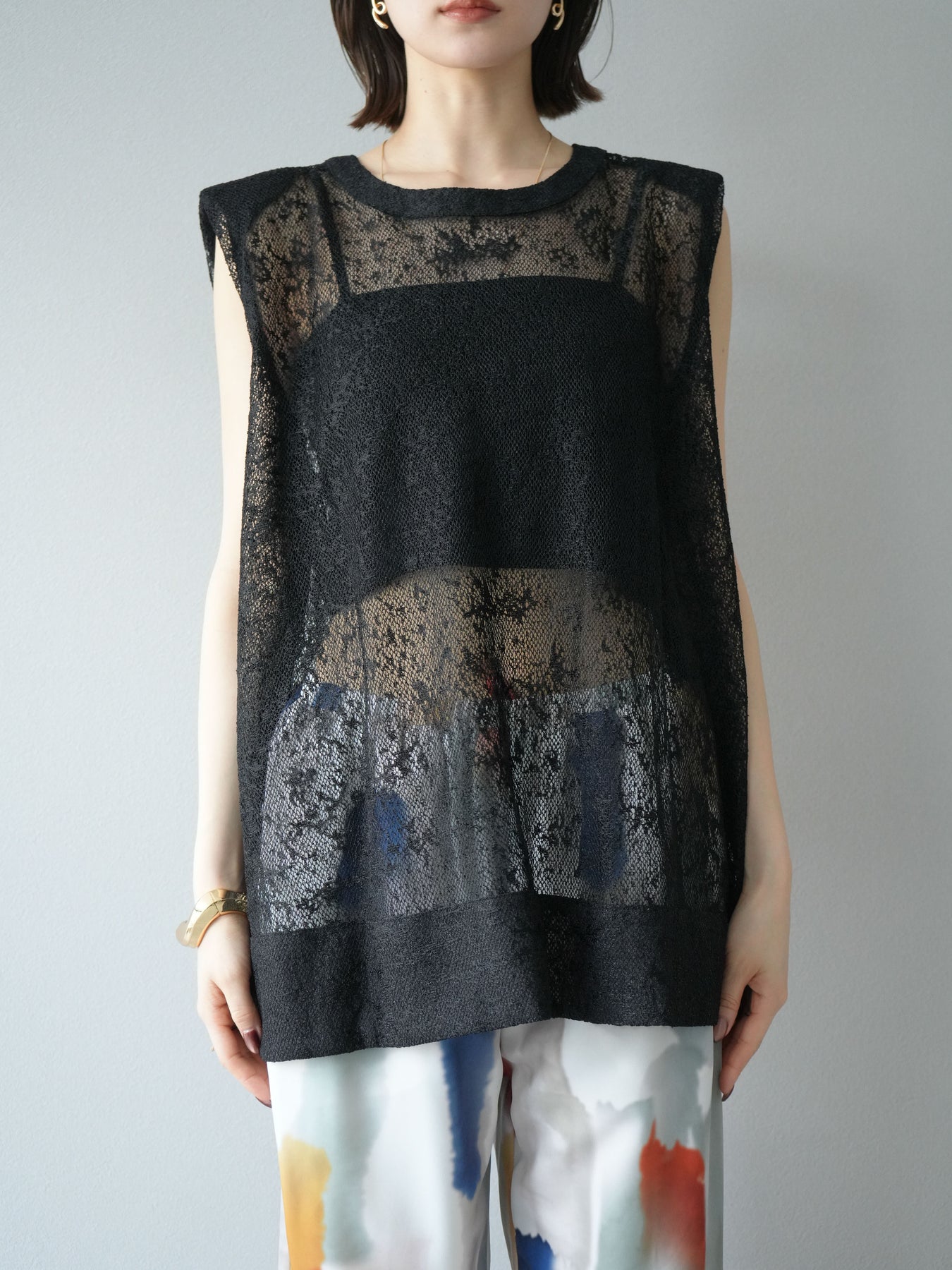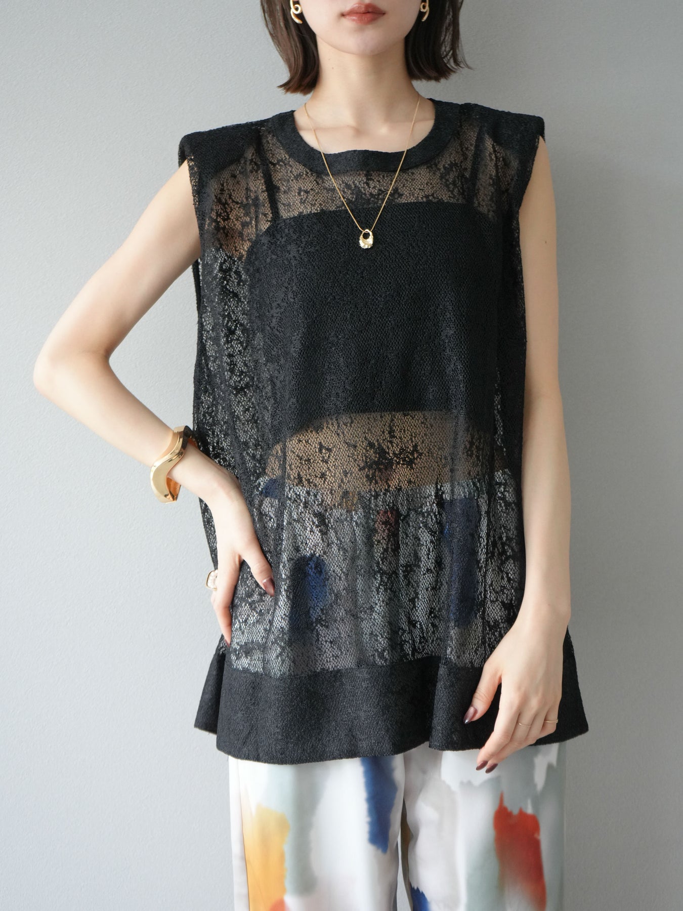 繊細なレースにラメ糸を織り交ぜた、華やかさと上品さを兼ね備えたシャイニープルオーバー。透け感のある軽やかな素材が、レイヤードスタイルに抜け感をプラス。長めの丈感で気になる腰まわりも自然にカバーしてくれます。カジュアルなパンツと合わせても女性らしい印象に仕上がる、着回し力の高い一枚です。 ※ボトムス、キャミソール(インナー)以外の商品は一律でインナーは付属していません。