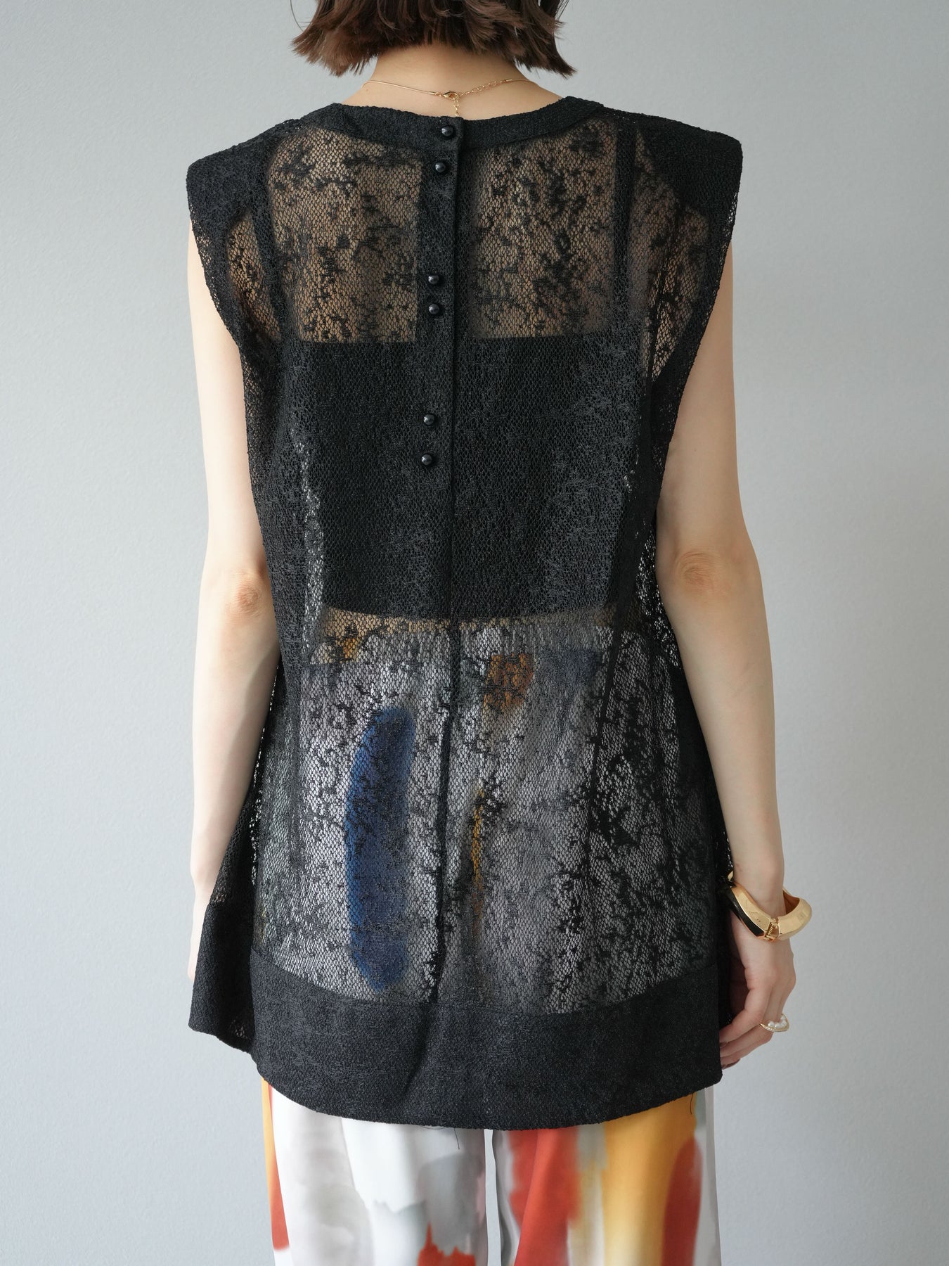 肩幅40cm バスト112cm 着丈72cm 透け感あり 伸縮性ややあり バックボタンあり 肩パッドあり