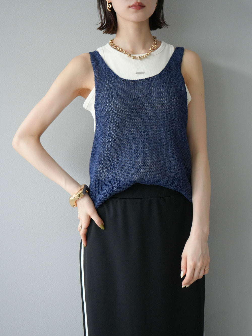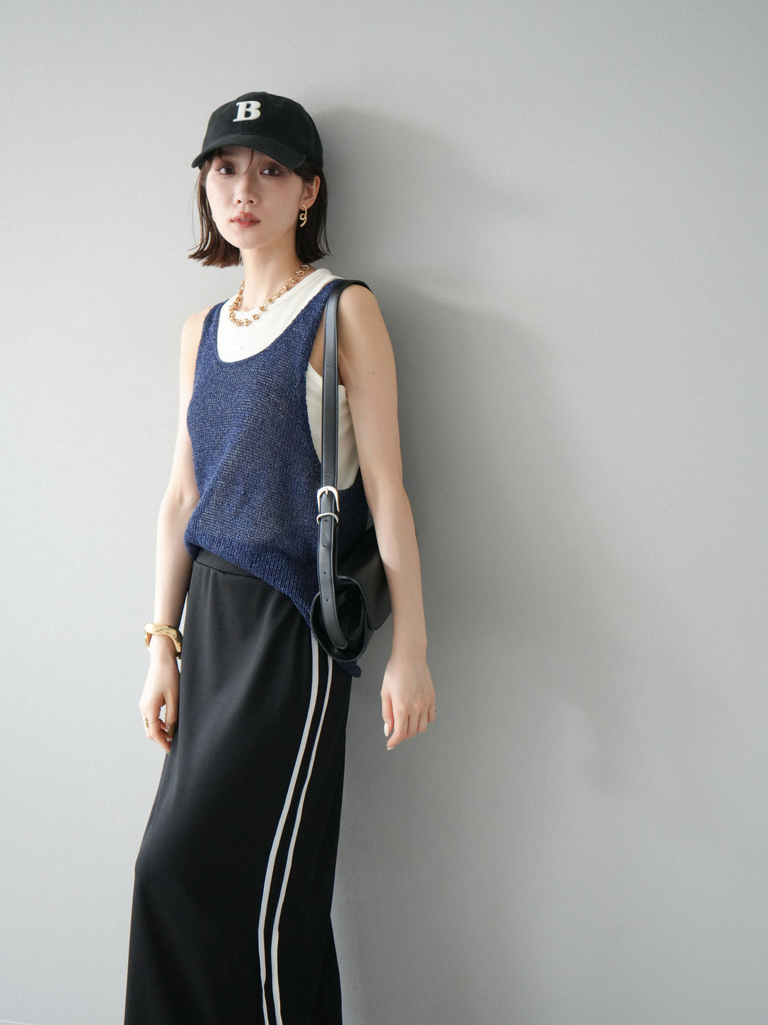 [予約]ラメ異素材ボーダーリブニットプルオーバー/charcoal×blue