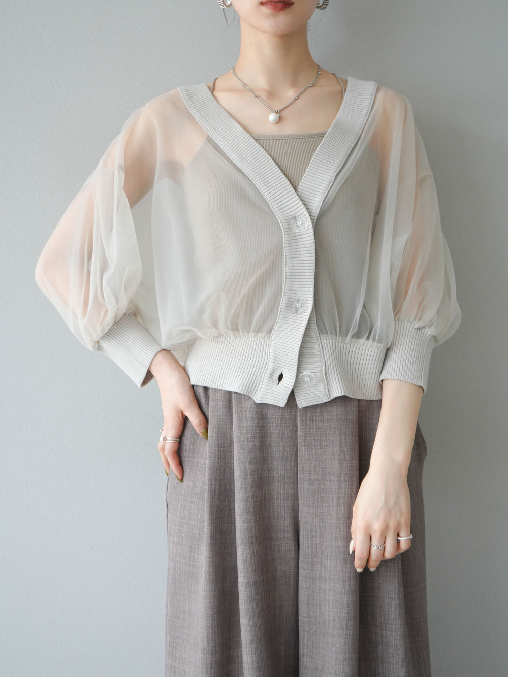 [予約]ハイネックデザインボタンニットカーディガン/gray