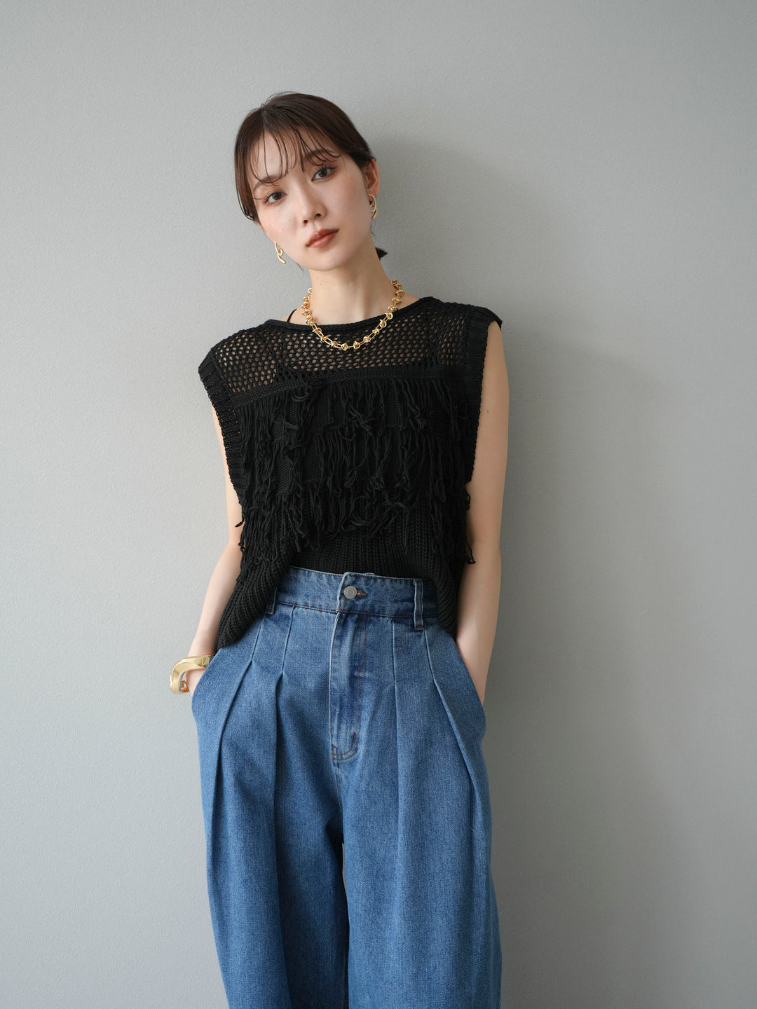 [SET]モール透かし編みニットトップス+選べるアクセセット(2set)