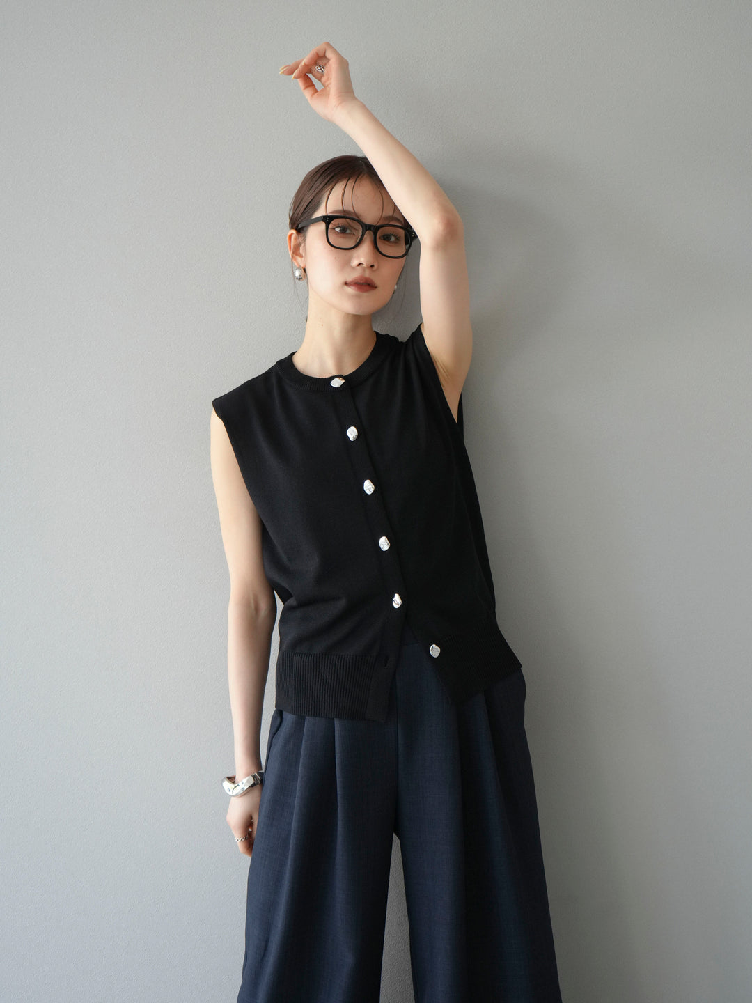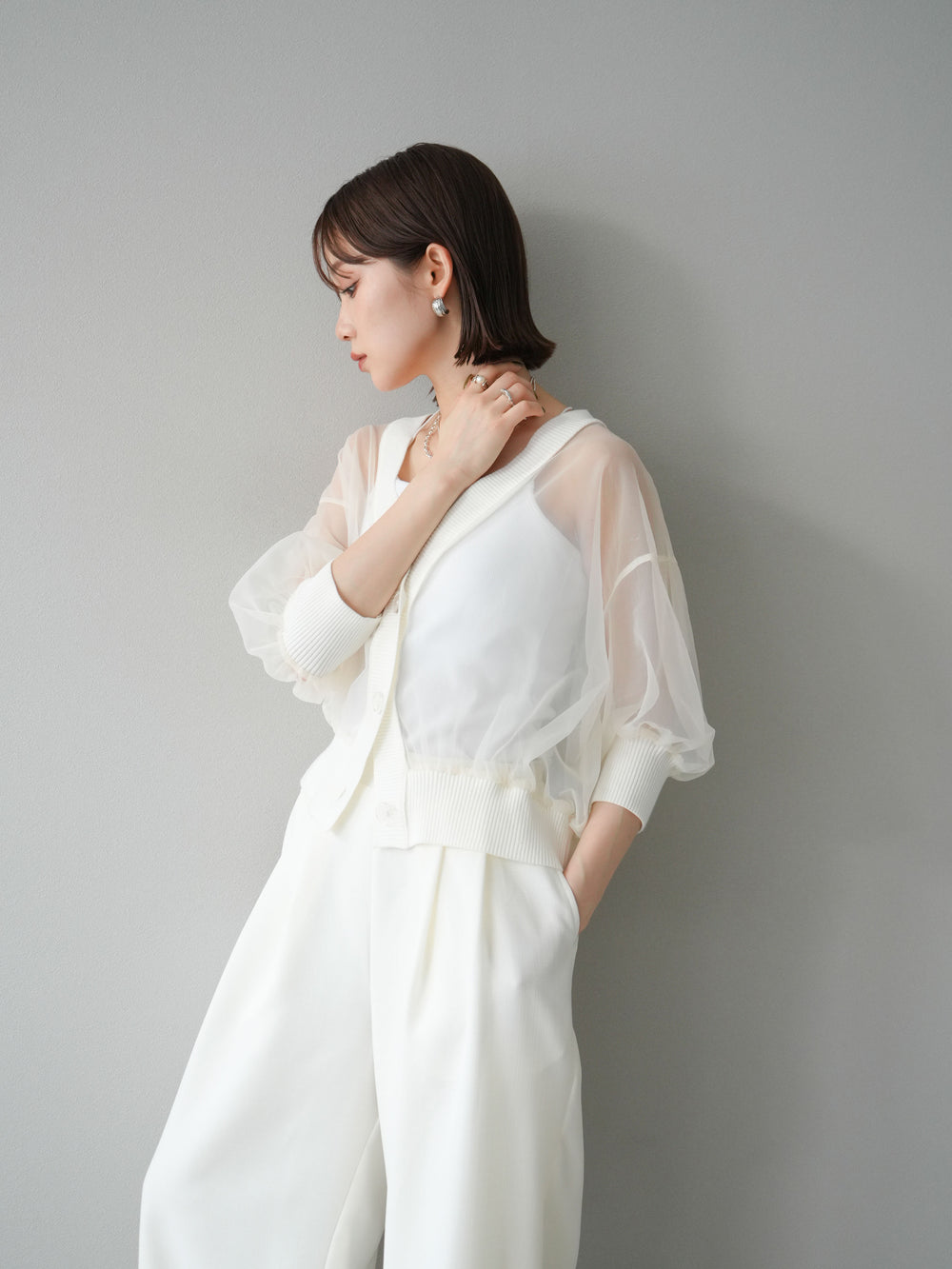 [予約]ハイネックデザインボタンニットカーディガン/ivory